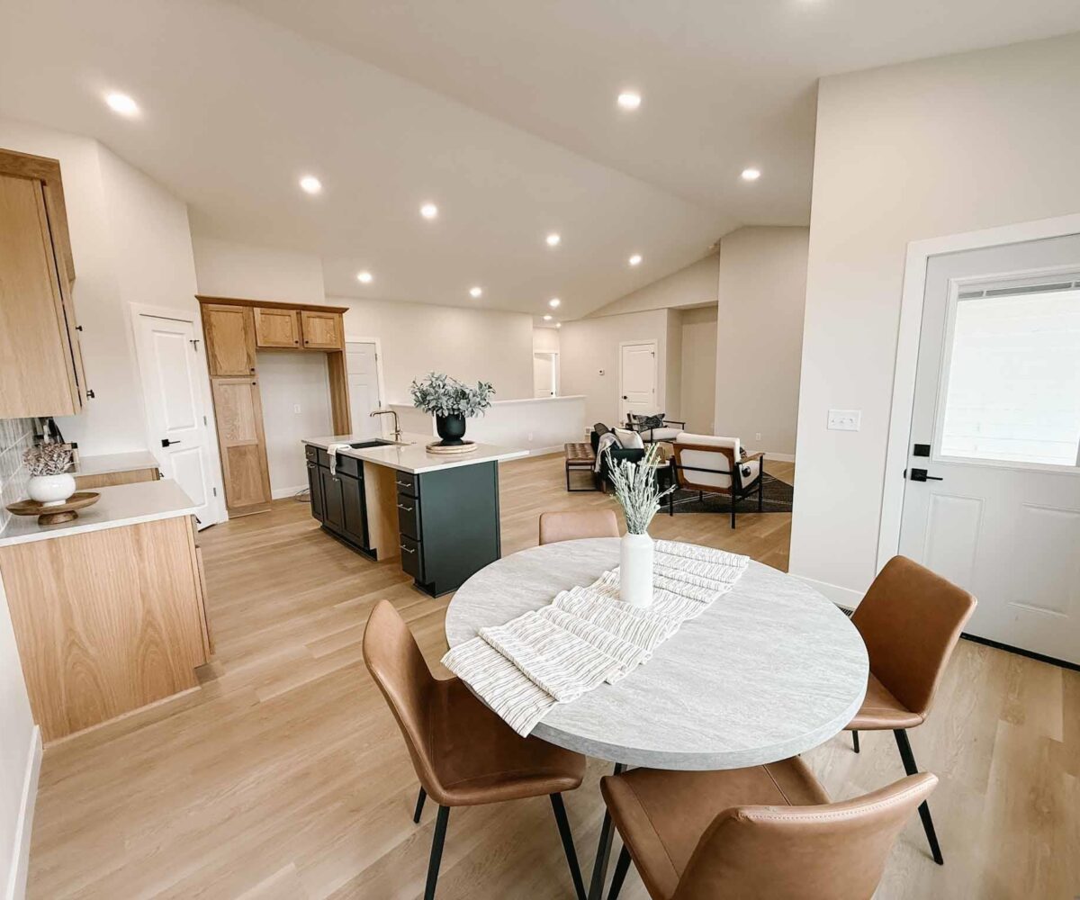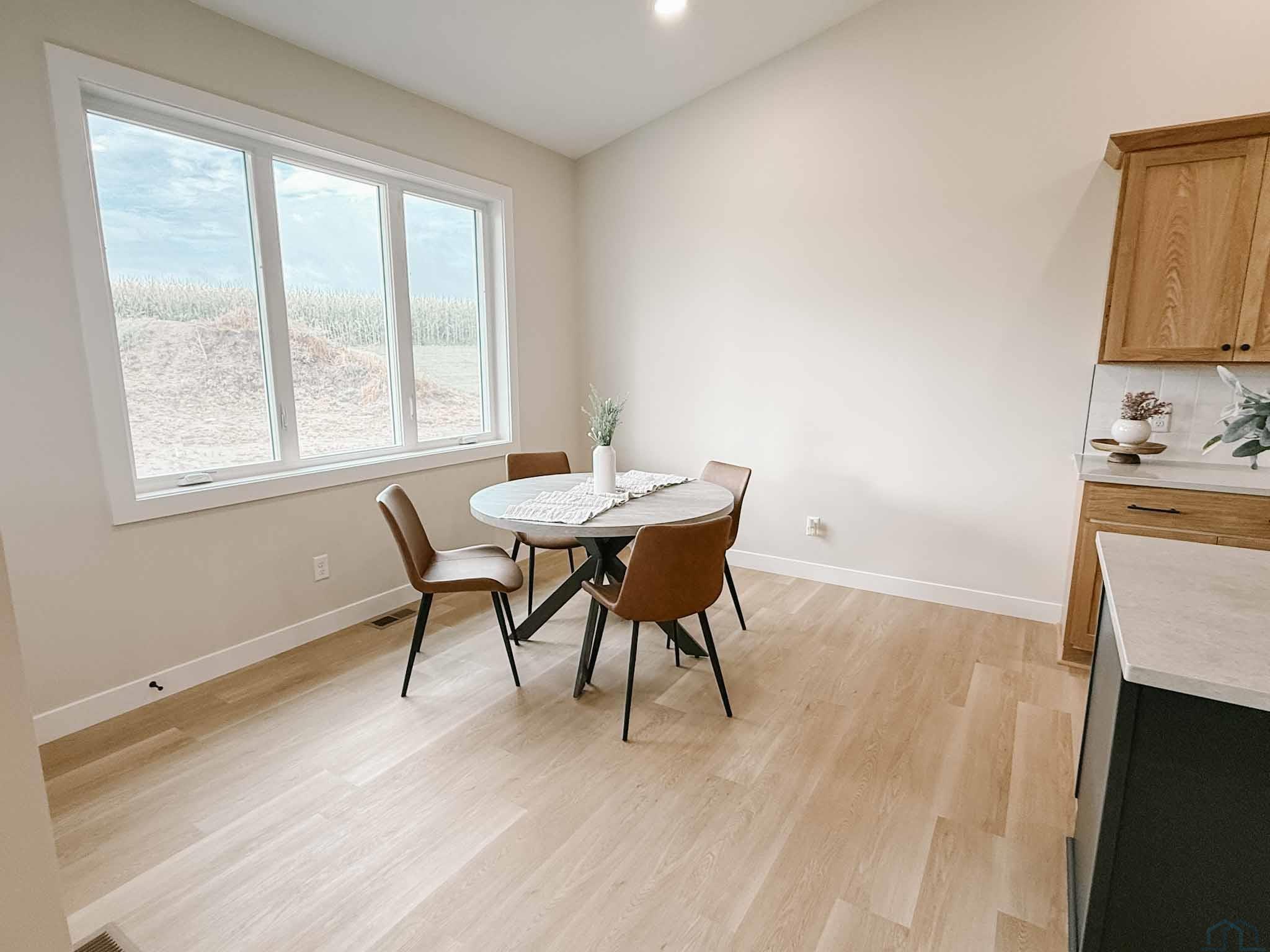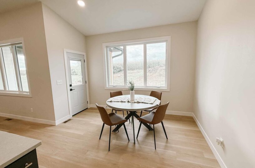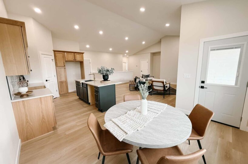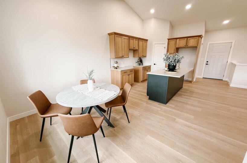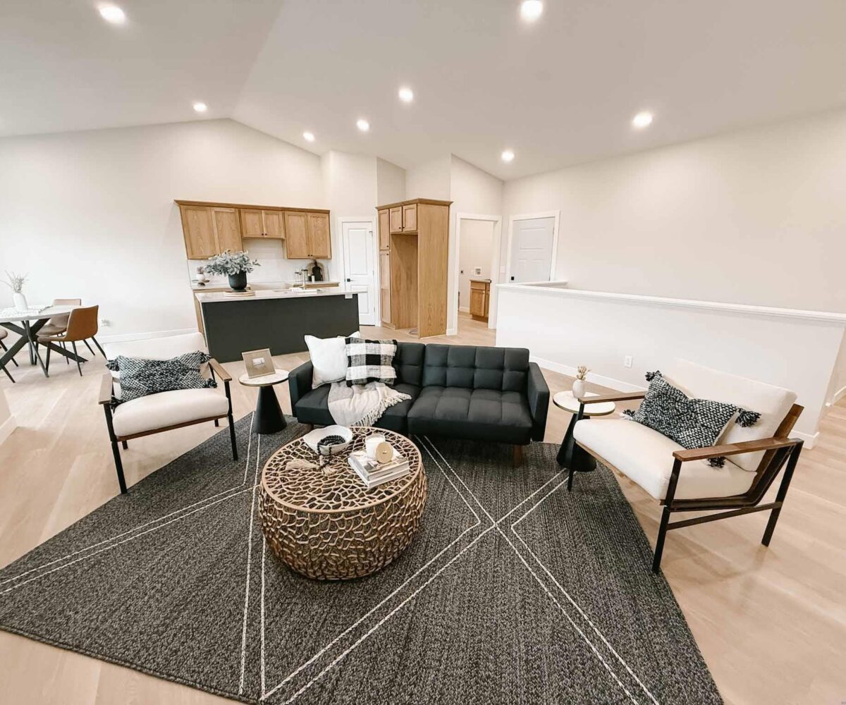 EASY LIVING. NO HOA. FULL BASEMENT. This 2025 duplex unit is designed with an effortless open layout on the main floor. It is built with 9′ ceilings and a vault. A spacious covered patio is located out back which provides the perfect spot for entertaining. The main floor has luxury vinyl plank flooring with carpet in the primary suite. The kitchen boasts custom cabinetry in a nice warm color way and a tiled backsplash giving a modern look. The countertops feature quartz with a spacious island. This unit has two bedrooms and two bathrooms on the main floor. The primary suite features a walk-in closet as well as a 3/4 en-suite bathroom equipped with an onyx vanity and LOTS of storage. Rounding out the main floor is a dining space, guest bedroom, and laundry. The attached double garage is fully finished and contains floor drains. A bonus to this duplex unit is the ability to add value by finishing off the nearly 1,400 square feet basement. There’s room for a spacious living, two more bedrooms, a bathroom, and utility room. Don’t miss out on this incredible opportunity!