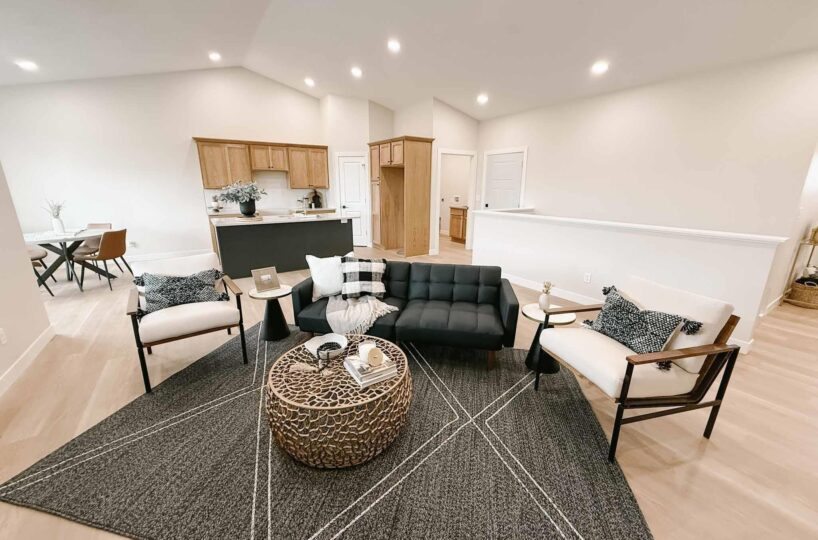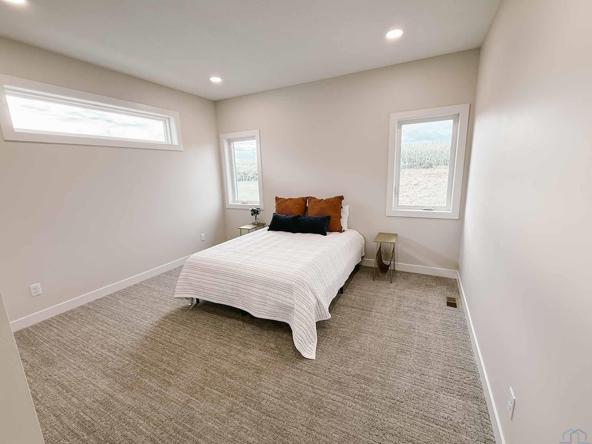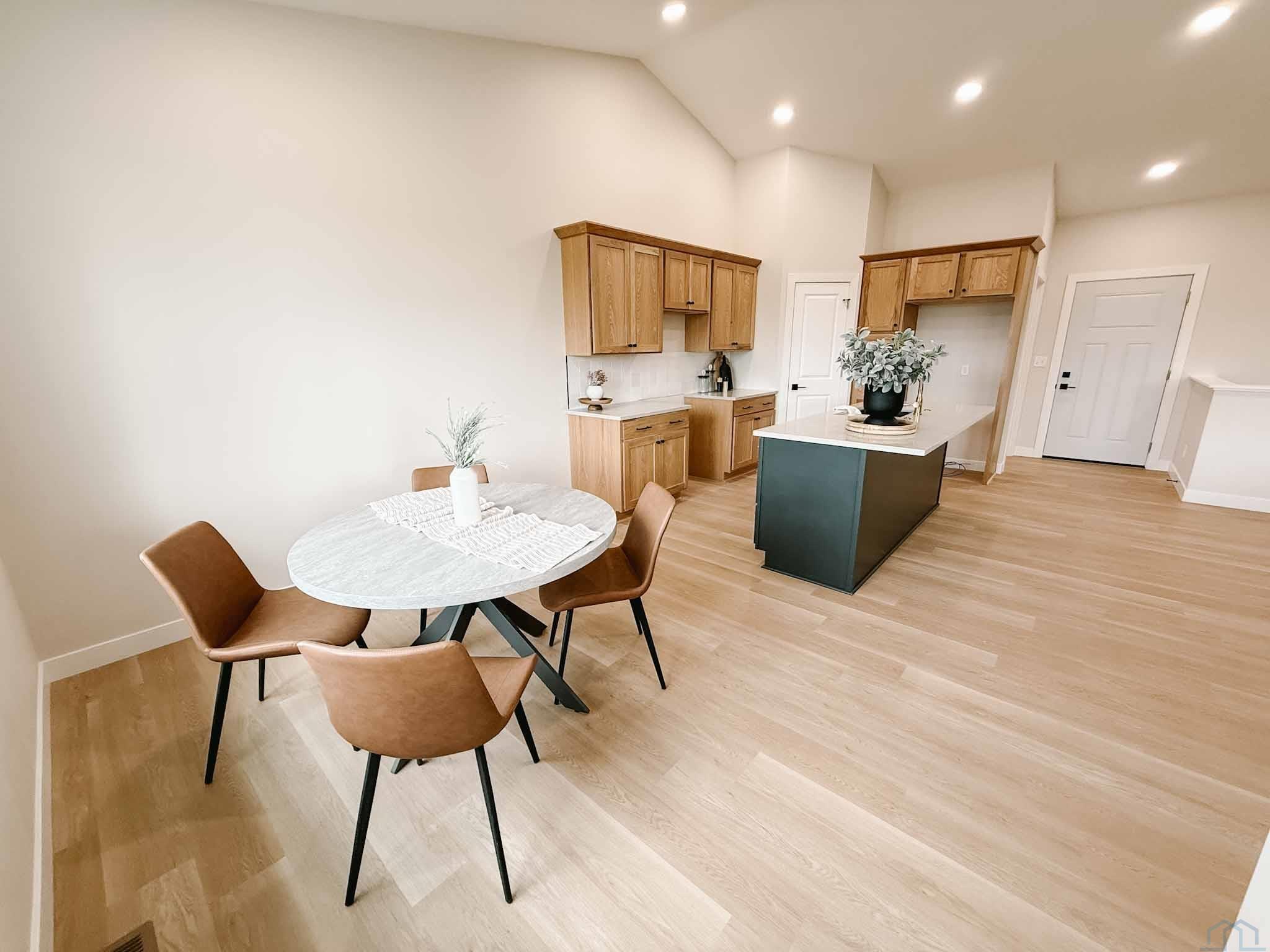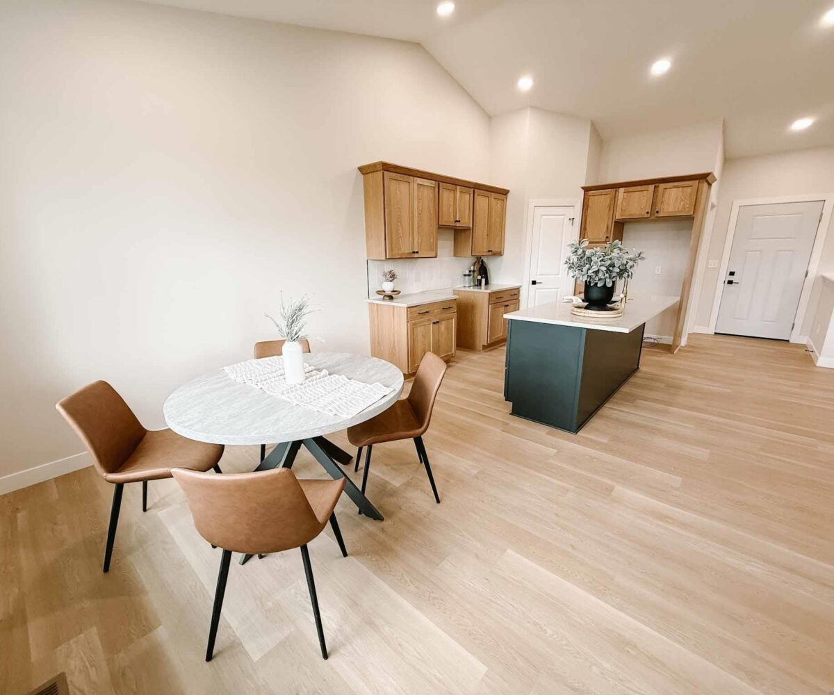 EASY LIVING. NO HOA. FULL BASEMENT. This 2025 duplex unit is designed with an effortless open layout on the main floor. It is built with 9′ ceilings and a vault. A spacious covered patio is located out back which provides the perfect spot for entertaining. The main floor has luxury vinyl plank flooring with carpet in the primary suite. The kitchen boasts custom cabinetry in a nice warm color way and a tiled backsplash giving a modern look. The countertops feature quartz with a spacious island. This unit has two bedrooms and two bathrooms on the main floor. The primary suite features a walk-in closet as well as a 3/4 en-suite bathroom equipped with an onyx vanity and LOTS of storage. Rounding out the main floor is a dining space, guest bedroom, and laundry. The attached double garage is fully finished and contains floor drains. A bonus to this duplex unit is the ability to add value by finishing off the nearly 1,400 square feet basement. There’s room for a spacious living, two more bedrooms, a bathroom, and utility room. Don’t miss out on this incredible opportunity!