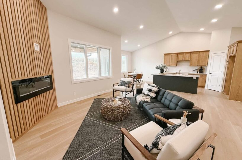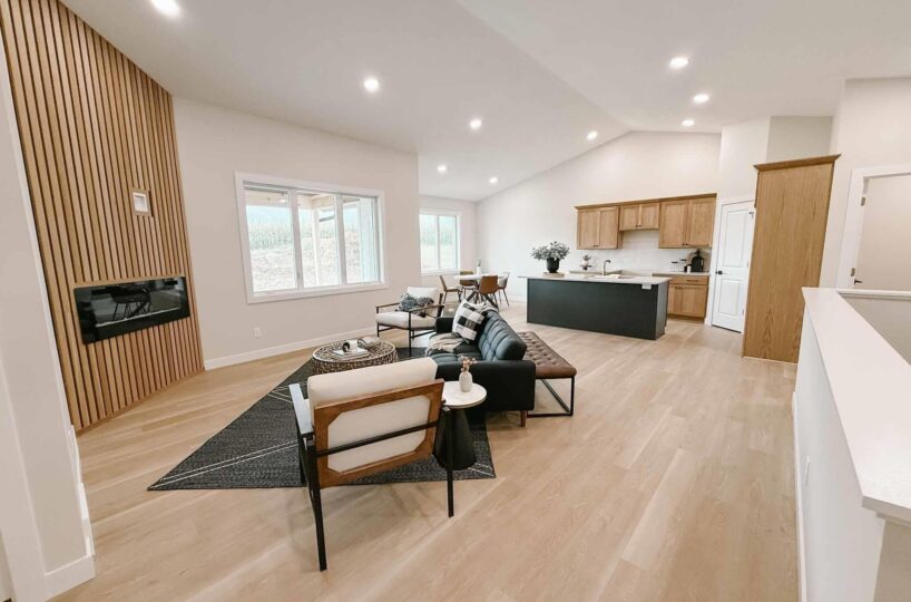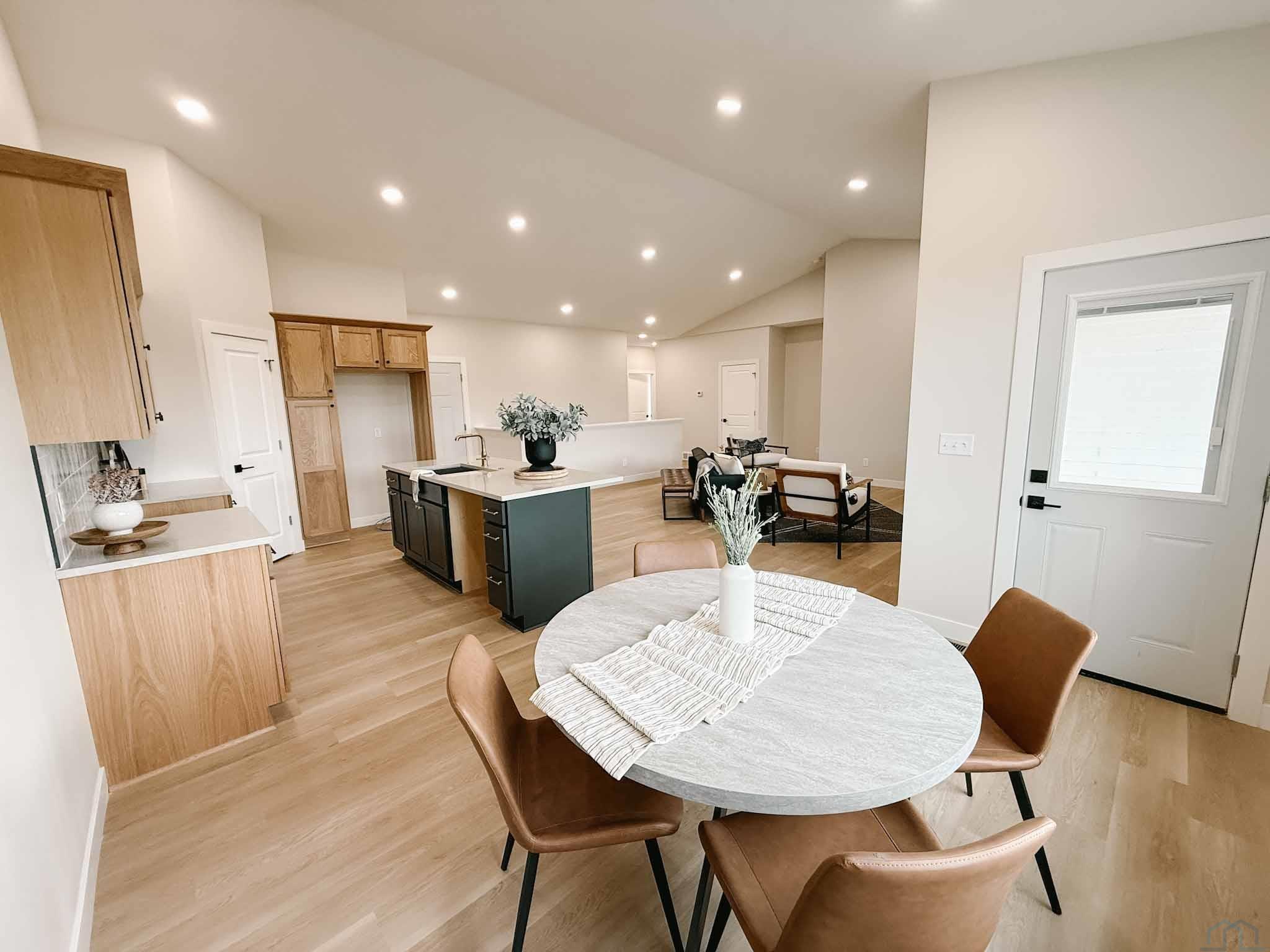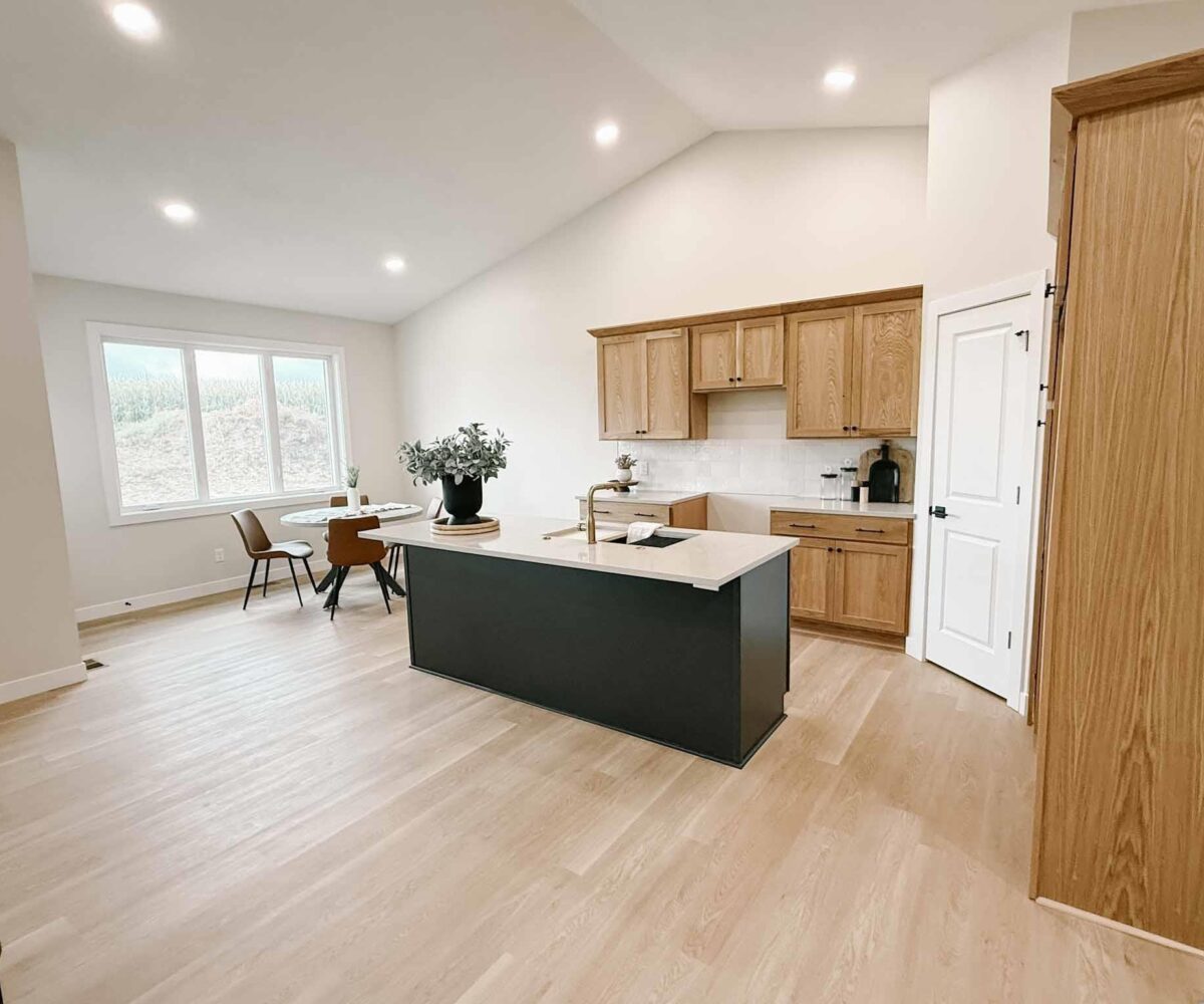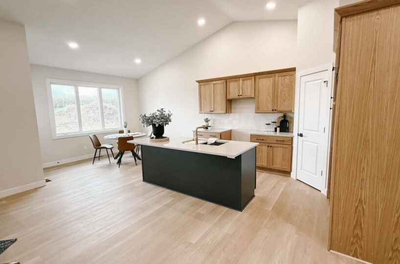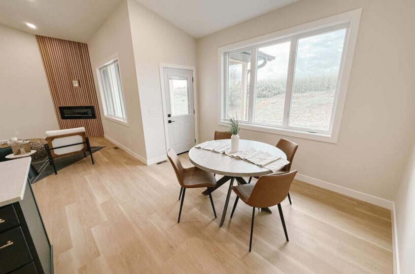 EASY LIVING. NO HOA. FULL BASEMENT. This 2025 duplex unit is designed with an effortless open layout on the main floor. It is built with 9′ ceilings and a vault. A spacious covered patio is located out back which provides the perfect spot for entertaining. The main floor has luxury vinyl plank flooring with carpet in the primary suite. The kitchen boasts custom cabinetry in a nice warm color way and a tiled backsplash giving a modern look. The countertops feature quartz with a spacious island. This unit has two bedrooms and two bathrooms on the main floor. The primary suite features a walk-in closet as well as a 3/4 en-suite bathroom equipped with an onyx vanity and LOTS of storage. Rounding out the main floor is a dining space, guest bedroom, and laundry. The attached double garage is fully finished and contains floor drains. A bonus to this duplex unit is the ability to add value by finishing off the nearly 1,400 square feet basement. There’s room for a spacious living, two more bedrooms, a bathroom, and utility room. Don’t miss out on this incredible opportunity!