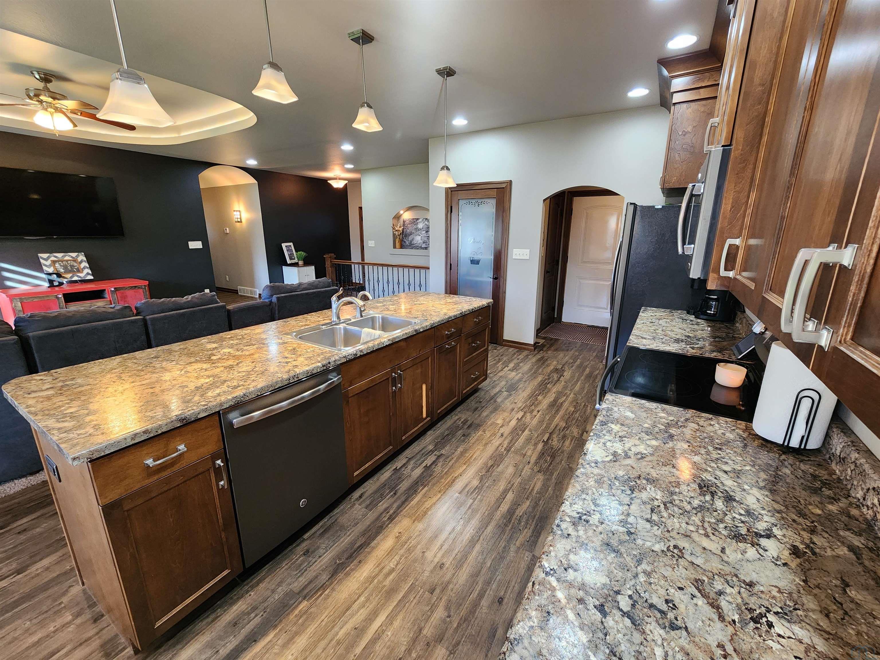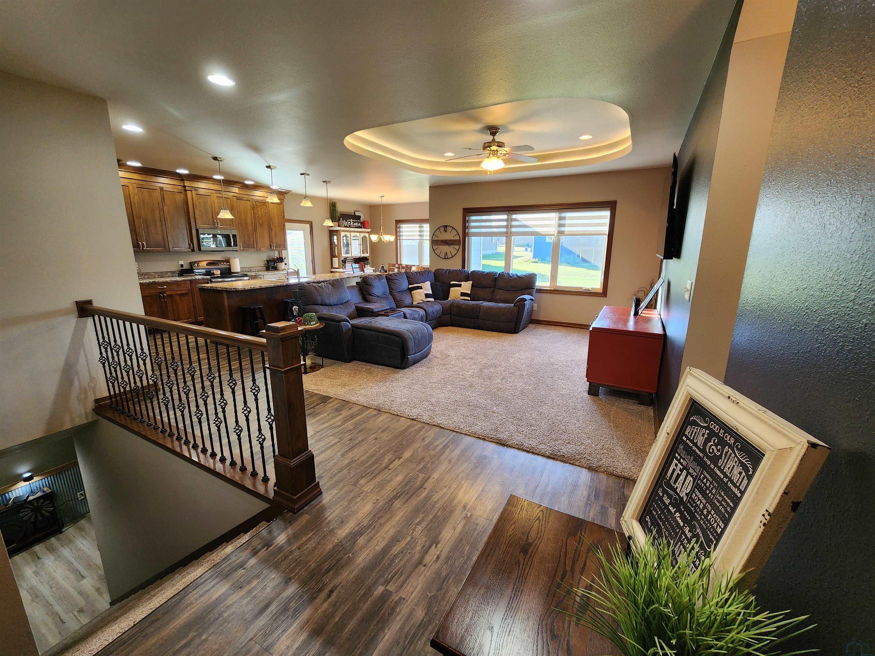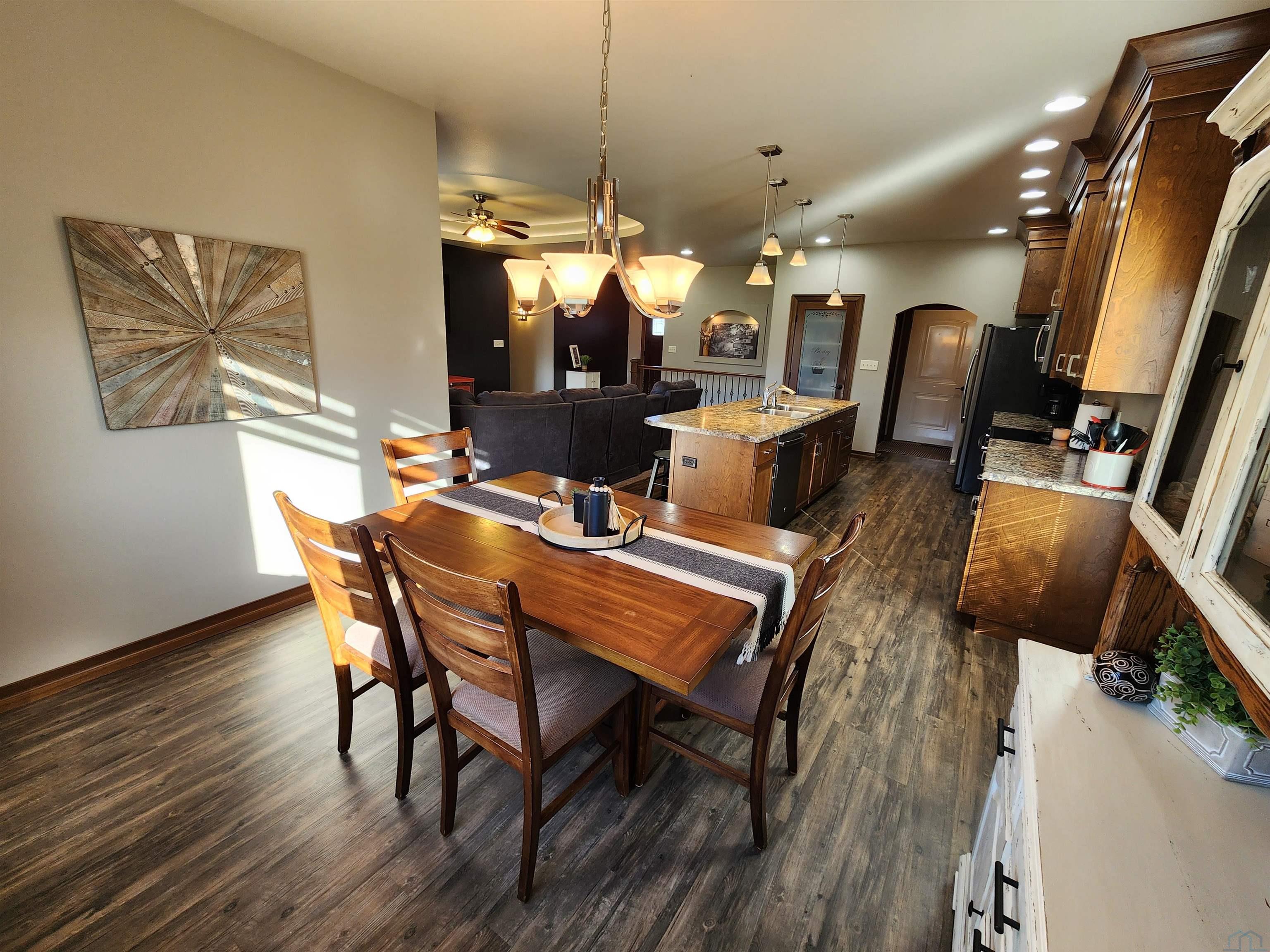 Move-In Ready Beauty in a Prime Location! Welcome home to this stunning five-bedroom, three-bath residence that perfectly blends timeless design with modern comfort. Situated in a highly desirable neighborhood, this home offers the kind of warmth and curb appeal that draws you in from the moment you arrive. Step inside and be greeted by graceful arched doorways and a tray-ceilinged living area that add elegance and dimension to the open-concept main floor. Natural light pours in, highlighting the inviting flow between the spacious living room, dining area, and kitchen — ideal for both everyday living and entertaining guests. The kitchen and dining spaces are designed for connection and comfort, with easy access to the patio retreat, where you can enjoy morning coffee, evening dinners, or weekend gatherings surrounded by peace and privacy. With five generously sized bedrooms, there’s room for everyone — whether you’re accommodating a growing family, hosting guests, or creating a home office or hobby room. The recently updated basement offers fresh finishes, modern flooring, and an open family area that’s perfect for movie nights or game days. A spacious three-stall garage provides plenty of room for vehicles, storage, or projects — a true bonus for any homeowner. Built just ten years ago and maintained with care, this home is truly move-in ready, combining contemporary updates with thoughtful design details. Every corner reflects quality, comfort, and pride of ownership. If you’ve been waiting for a home that offers space, style, and a prime location — this is the one.