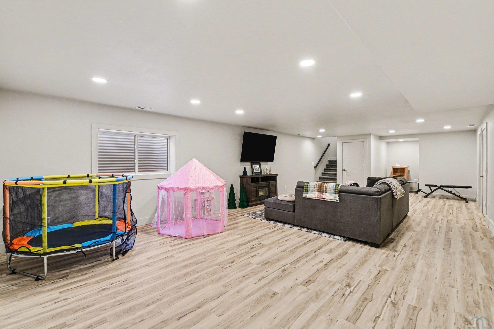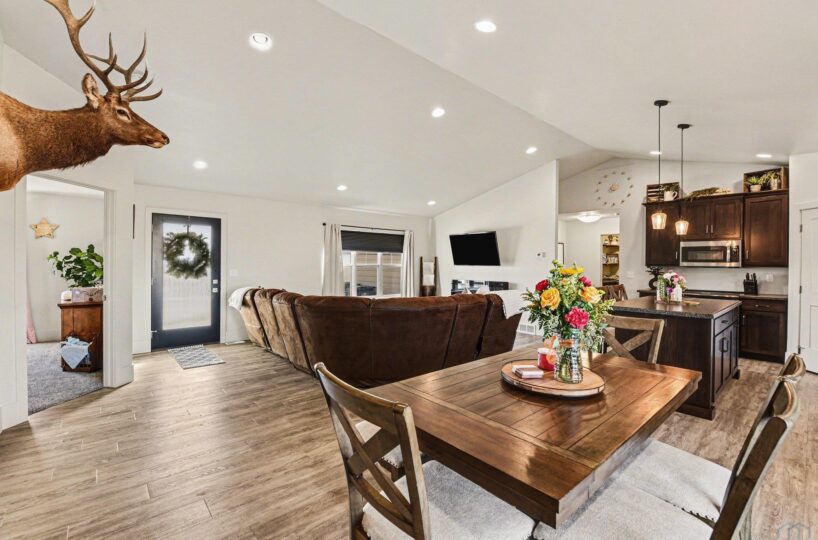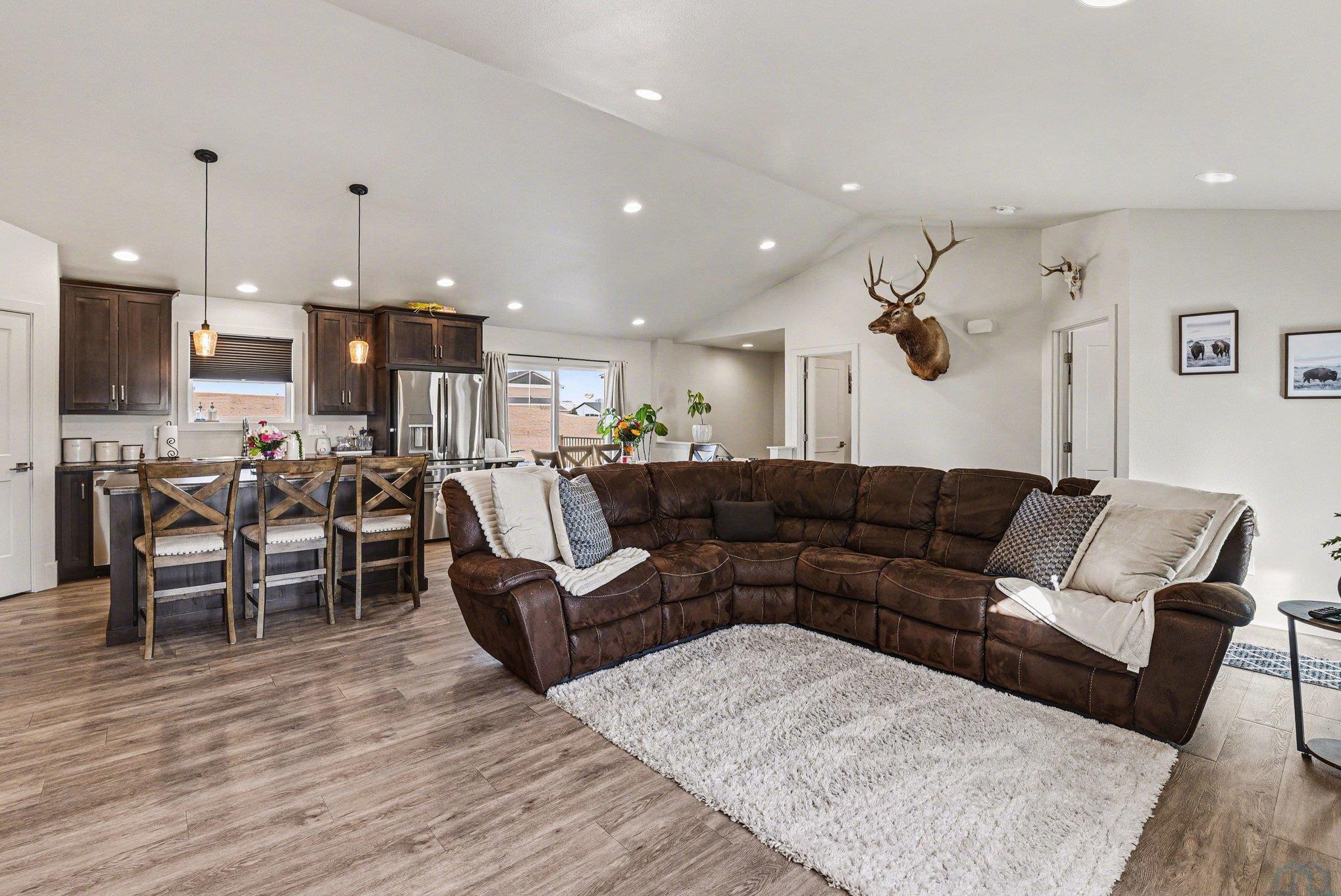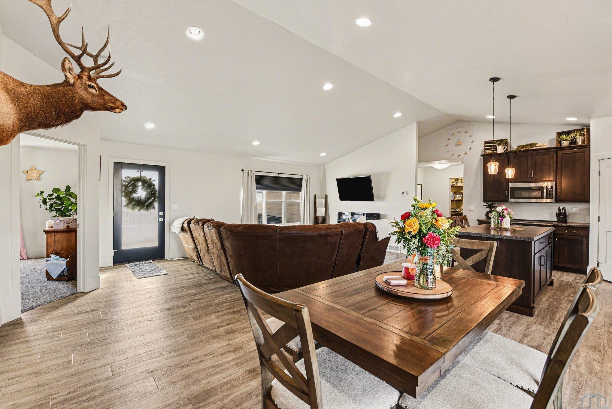 Welcome to this beautifully designed 4-bedroom, 3-bathroom home built in 2021, offering modern comfort and thoughtful upgrades throughout. The inviting open floor plan creates a seamless flow between the living, dining, and kitchen areas perfect for everyday living and entertaining. The spacious kitchen features a walk-in pantry, ample cabinetry, and generous counter space to meet all your storage and cooking needs. Enjoy cozy evenings by one of the two fireplaces, adding warmth and charm to both the main living area and additional gathering space. Step outside to a large composite deck, perfect for relaxing, grilling, or hosting guests while enjoying low-maintenance outdoor living. Convenience is key with main floor laundry, plus additional washer and dryer hookups in the finished, heated garage ideal for hobby space, extra appliances, or added flexibility. The finished and heated garage provides year-round comfort and functionality, whether for parking, projects, or storage. With stylish finishes, flexible living spaces, and modern efficiency, this nearly new home offers the perfect blend of comfort and sophistication. Don’t miss your opportunity to make it yours!