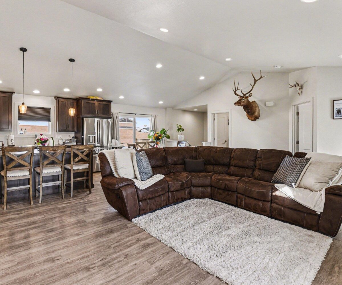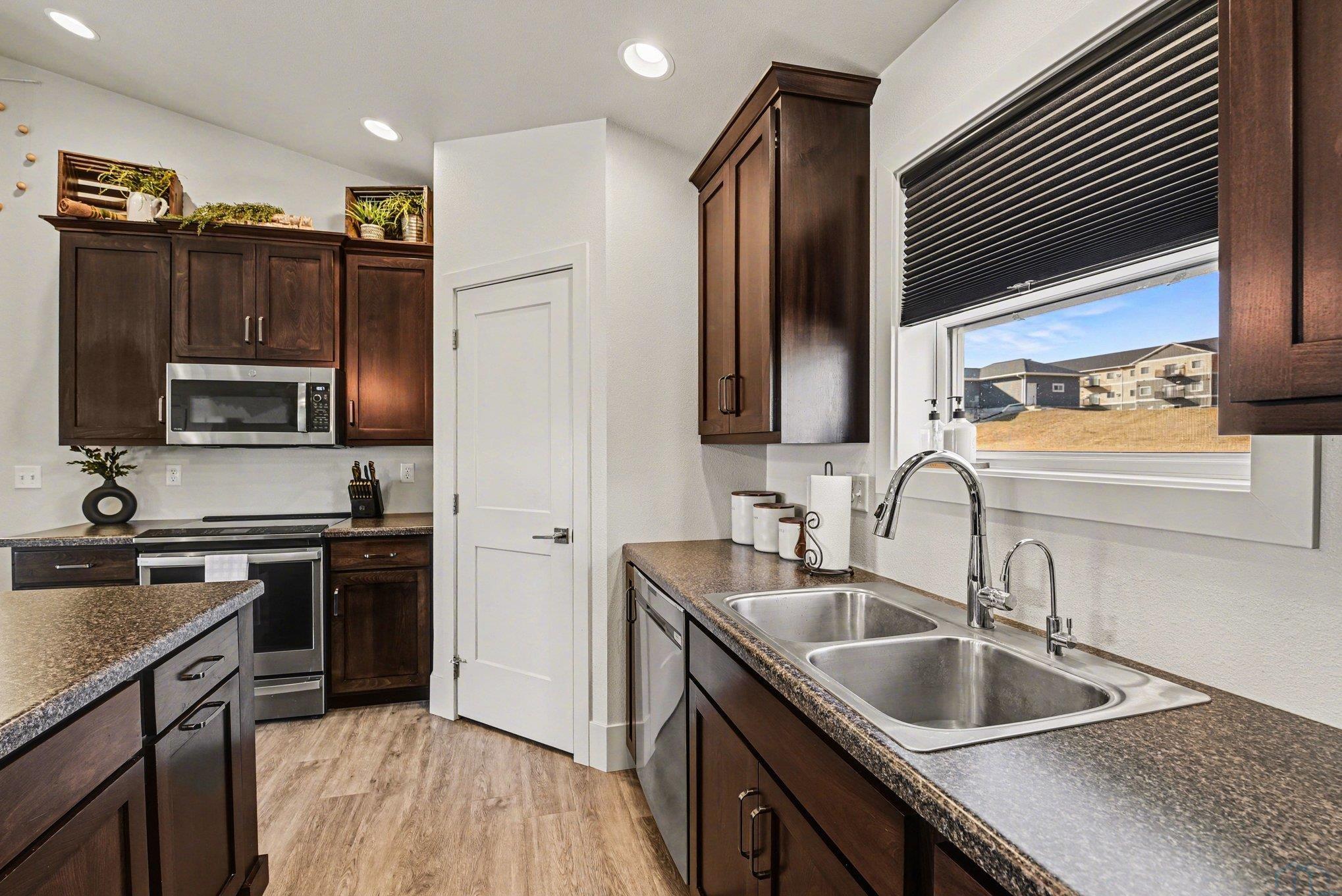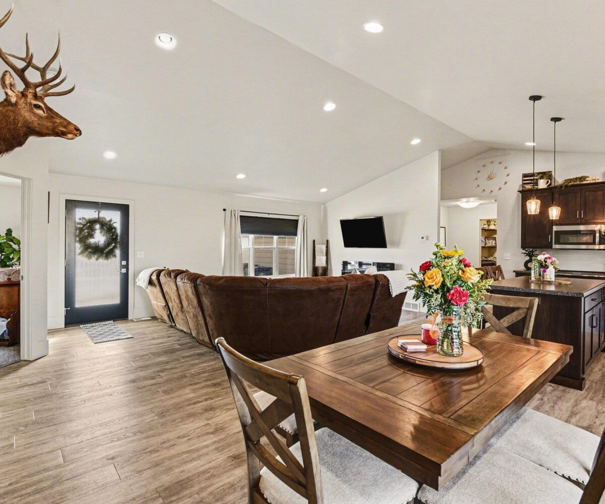 Welcome to this beautifully designed 4-bedroom, 3-bathroom home built in 2021, offering modern comfort and thoughtful upgrades throughout. The inviting open floor plan creates a seamless flow between the living, dining, and kitchen areas perfect for everyday living and entertaining. The spacious kitchen features a walk-in pantry, ample cabinetry, and generous counter space to meet all your storage and cooking needs. Enjoy cozy evenings by one of the two fireplaces, adding warmth and charm to both the main living area and additional gathering space. Step outside to a large composite deck, perfect for relaxing, grilling, or hosting guests while enjoying low-maintenance outdoor living. Convenience is key with main floor laundry, plus additional washer and dryer hookups in the finished, heated garage ideal for hobby space, extra appliances, or added flexibility. The finished and heated garage provides year-round comfort and functionality, whether for parking, projects, or storage. With stylish finishes, flexible living spaces, and modern efficiency, this nearly new home offers the perfect blend of comfort and sophistication. Don’t miss your opportunity to make it yours!