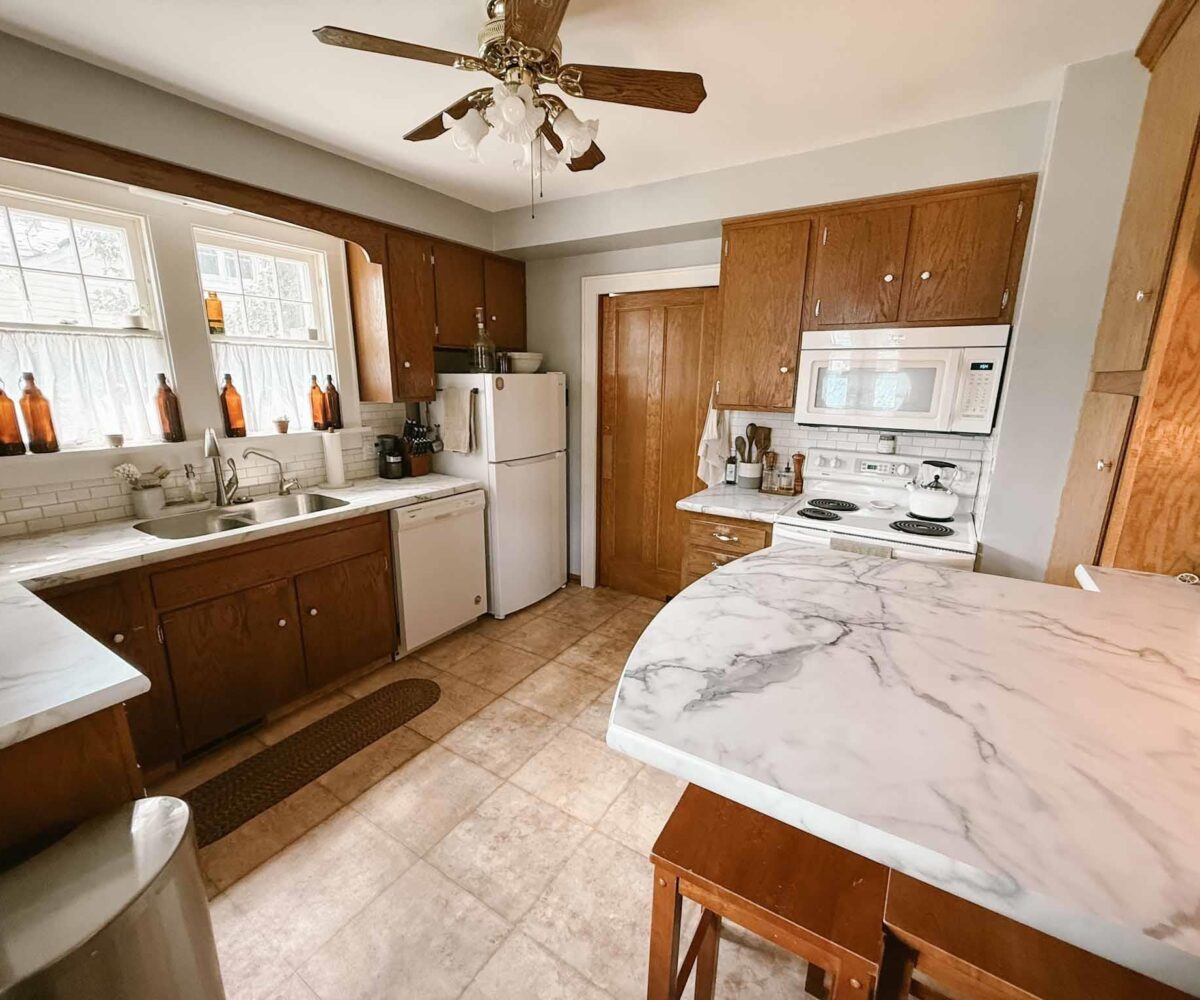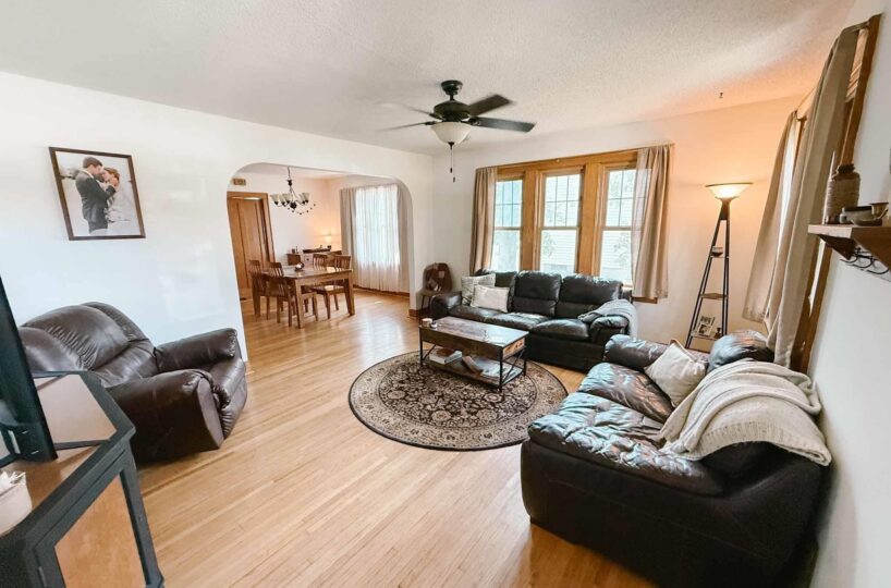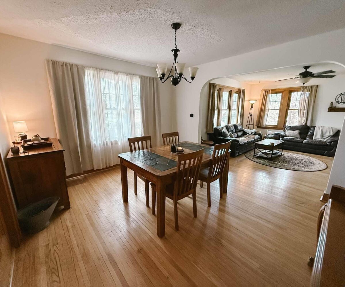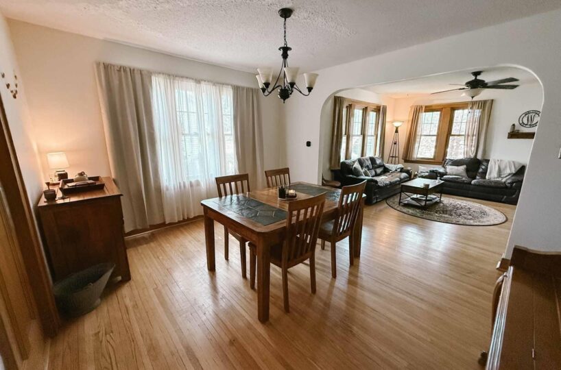 This 1929 home boasts five bedrooms & three bathrooms. Versatility at its finest. Use it as a single-family home with plenty of space to spread out or use the basement as an investment opportunity as it is already set up for income-potential. This 1929 home features 2,565 square feet and contains the perfect blend of charm and function. From the beautiful oak hardwood floors to the well-kept woodwork to the oak swing door, this home has character! The main floor has a great layout. Entering into the living room which connects with a spacious dining, enjoy the ease of entertaining. The kitchen sits at the rear of the home. It screams cute and cozy, featuring a pivot door to have more privacy or leave it open for community. Two bedrooms, a full bathroom, and laundry space round out the main floor. The second floor keeps with the charm as oak hardwood runs throughout both bedrooms and flex space. For functionality, a 1/2 bath was added to this floor. The basement can be accessed through the main floor laundry foyer or it has it’s own entrance at the rear of the home. A family room and kitchenette space is the center of this space while a bedroom and 3/4 bathroom are located in this area as well. There is a separate laundry for the basement as well as a good-sized storage closet. The property itself boasts a quarter acre and an oversized garage with a workshop. Some key updates to note: Basement Renovation (2024/2025), Added Main Floor Laundry (2025), Rock Landscaping (2025), Appliances (Main & Basement) (2024), Interior Paint (2023), Electrical Updates (Main & Basement) (2023). Avg Utilities are $268/mo