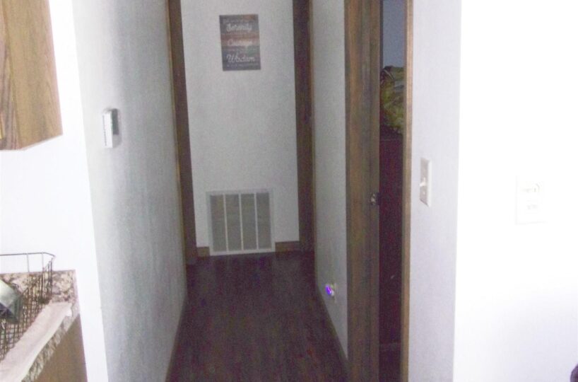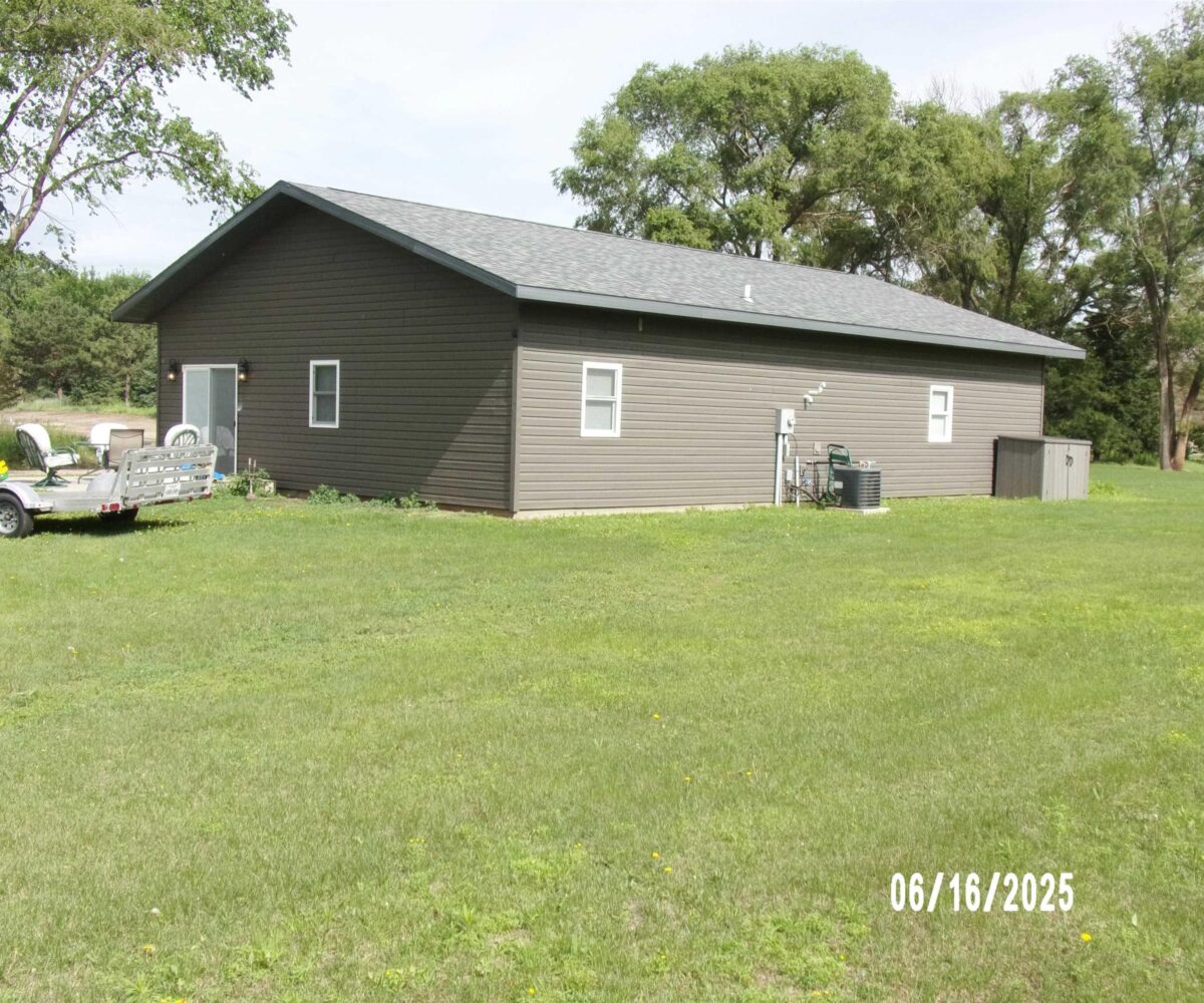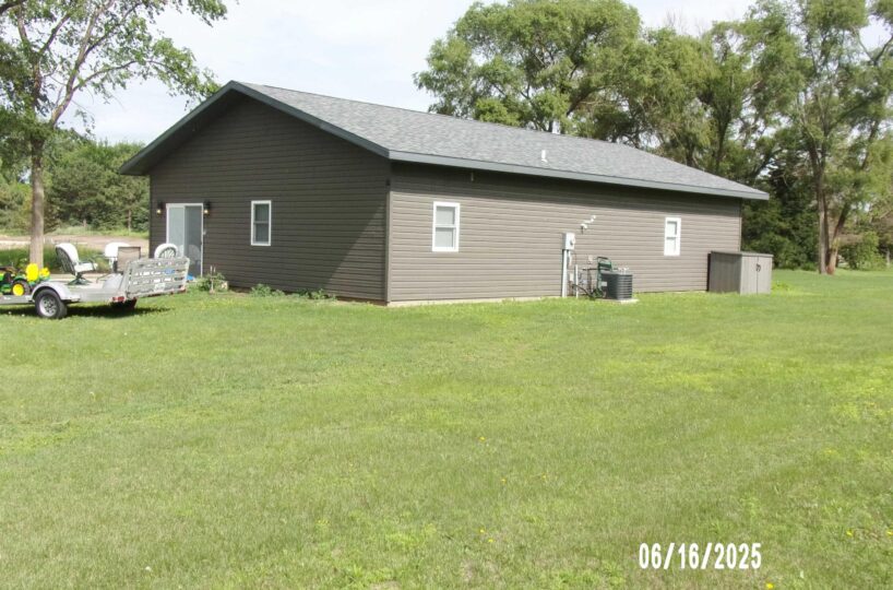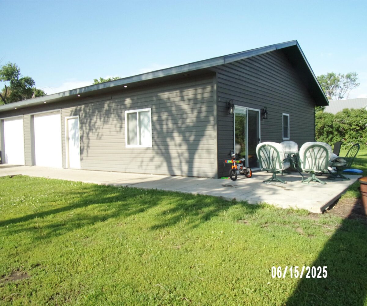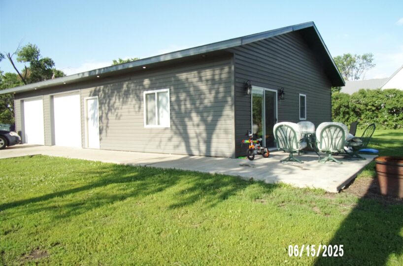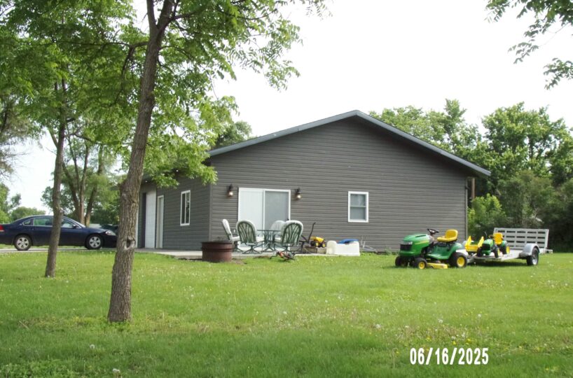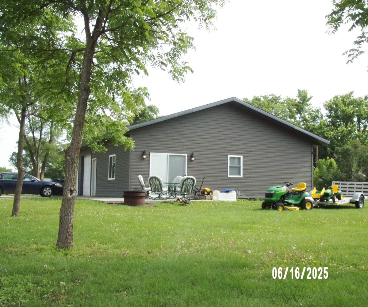 $159,900 Ranch style home located on a quiet street with a large lot (180 x 84) with shade trees.  This open design home offers a kitchen, eating area, living area (patio doors open to 10 x 16 cement patio), two bedrooms, combination 3/4 bath with washer and dryer, and a utility/storage room.  Home also has a large two stall insulated attached garage (26 x 32). Garage has a heat vent and can be heated.  Home is a ZERO entry with NO steps!