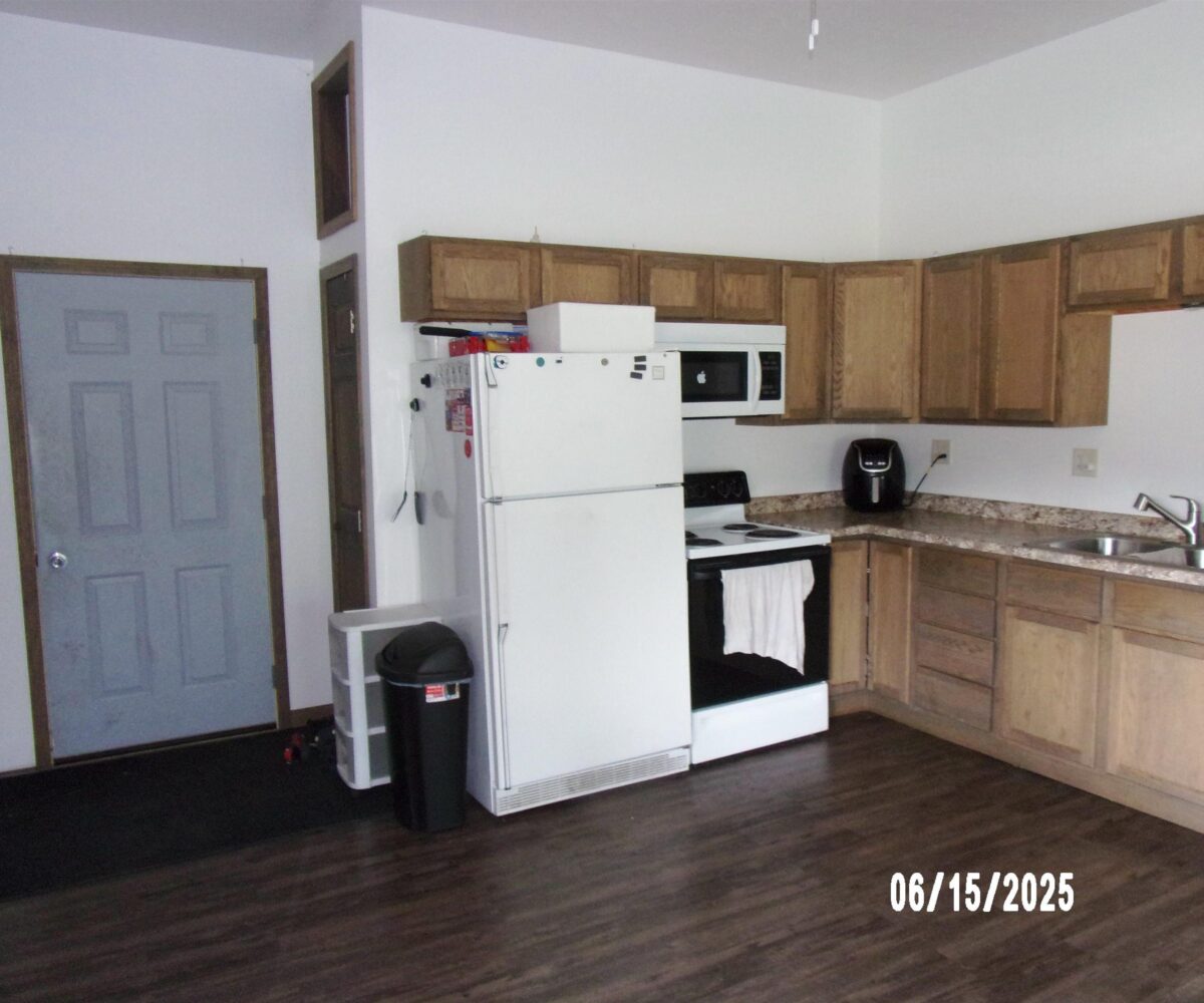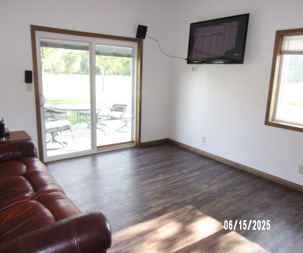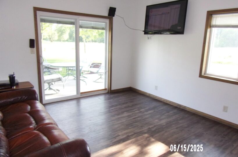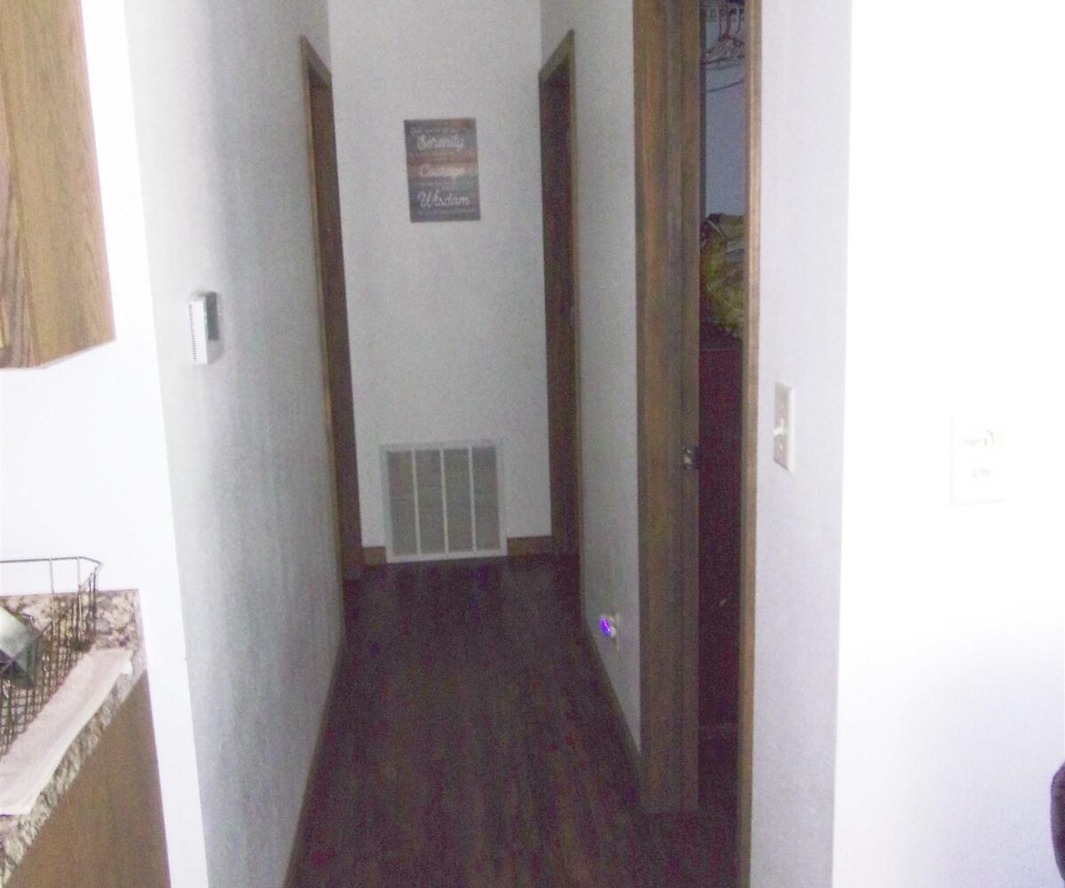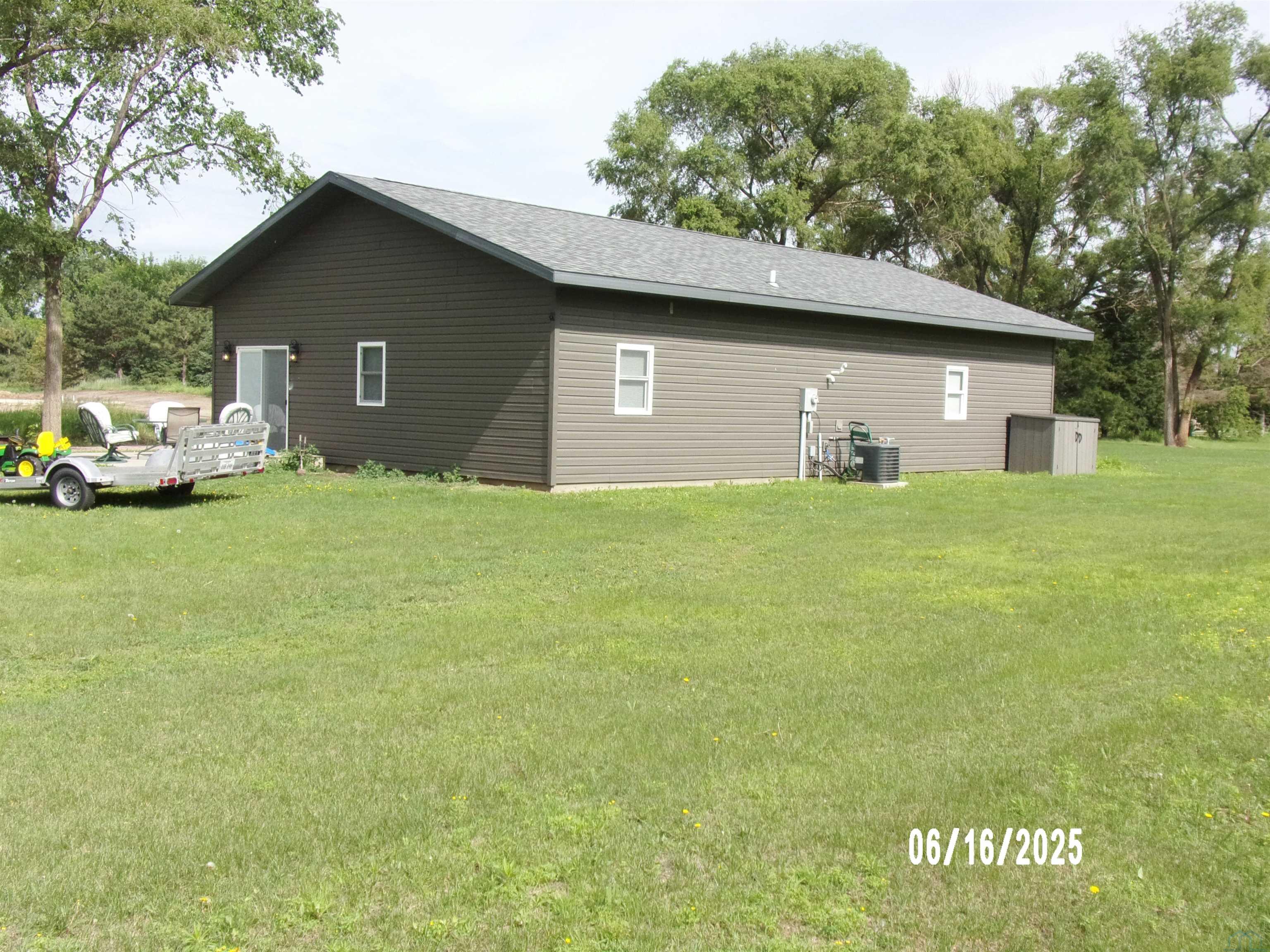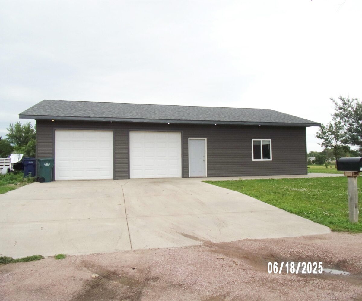 $159,900 Ranch style home located on a quiet street with a large lot (180 x 84) with shade trees.  This open design home offers a kitchen, eating area, living area (patio doors open to 10 x 16 cement patio), two bedrooms, combination 3/4 bath with washer and dryer, and a utility/storage room.  Home also has a large two stall insulated attached garage (26 x 32). Garage has a heat vent and can be heated.  Home is a ZERO entry with NO steps!