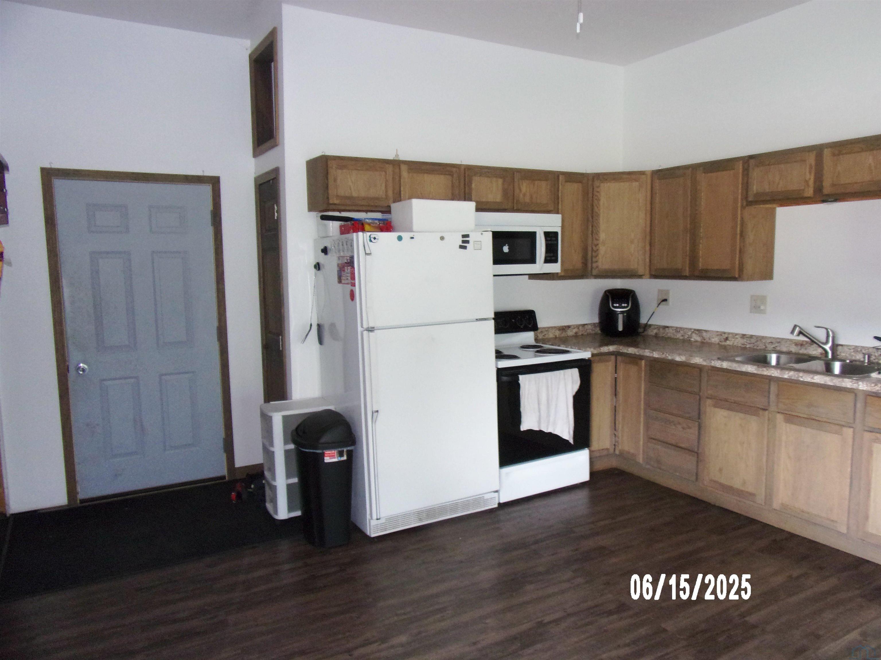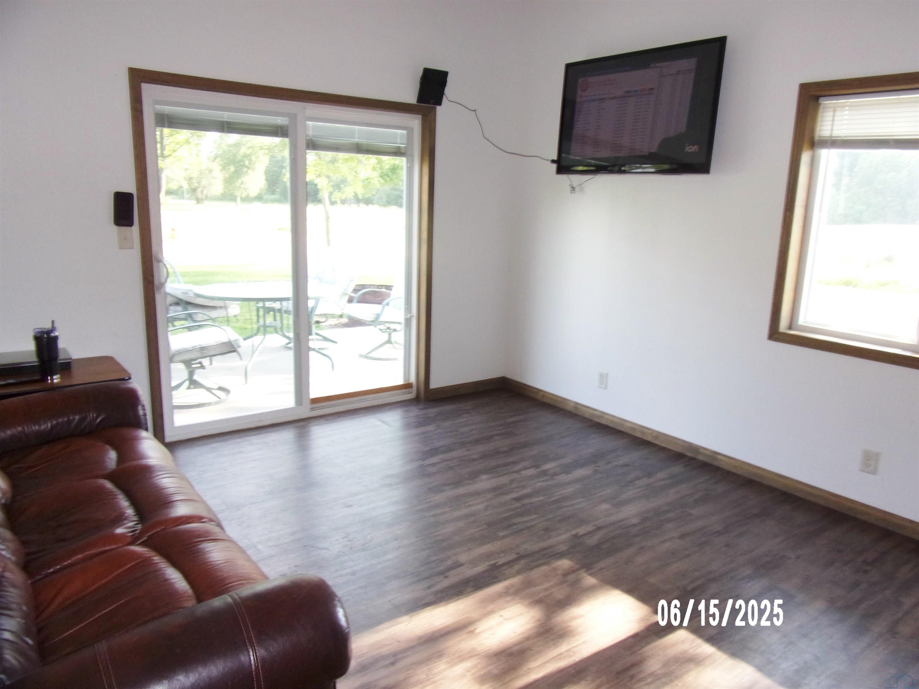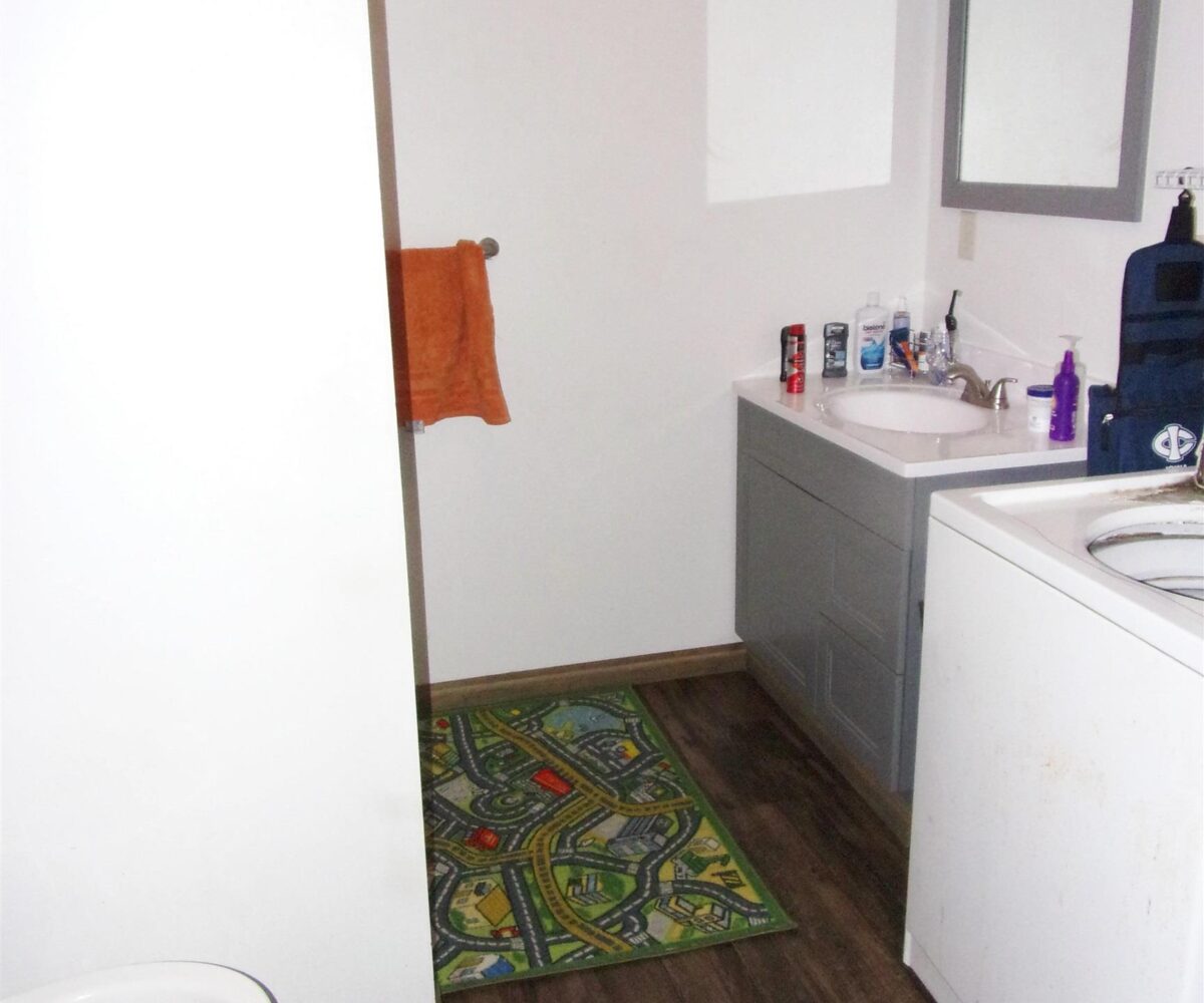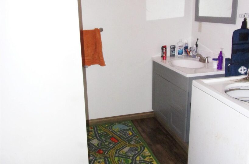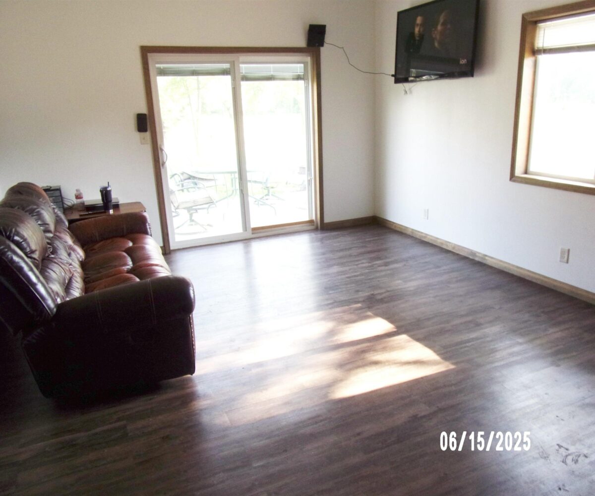 $159,900 Ranch style home located on a quiet street with a large lot (180 x 84) with shade trees.  This open design home offers a kitchen, eating area, living area (patio doors open to 10 x 16 cement patio), two bedrooms, combination 3/4 bath with washer and dryer, and a utility/storage room.  Home also has a large two stall insulated attached garage (26 x 32). Garage has a heat vent and can be heated.  Home is a ZERO entry with NO steps!