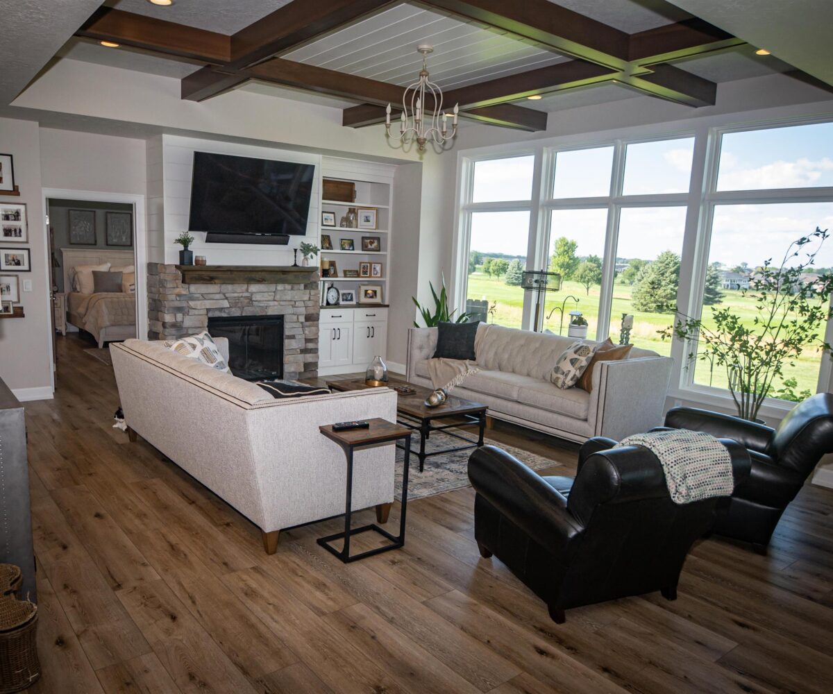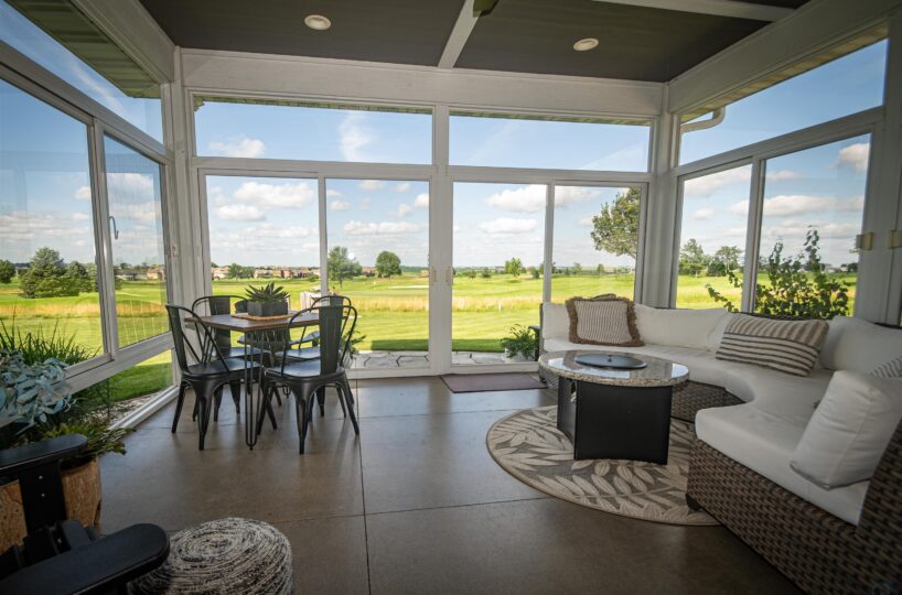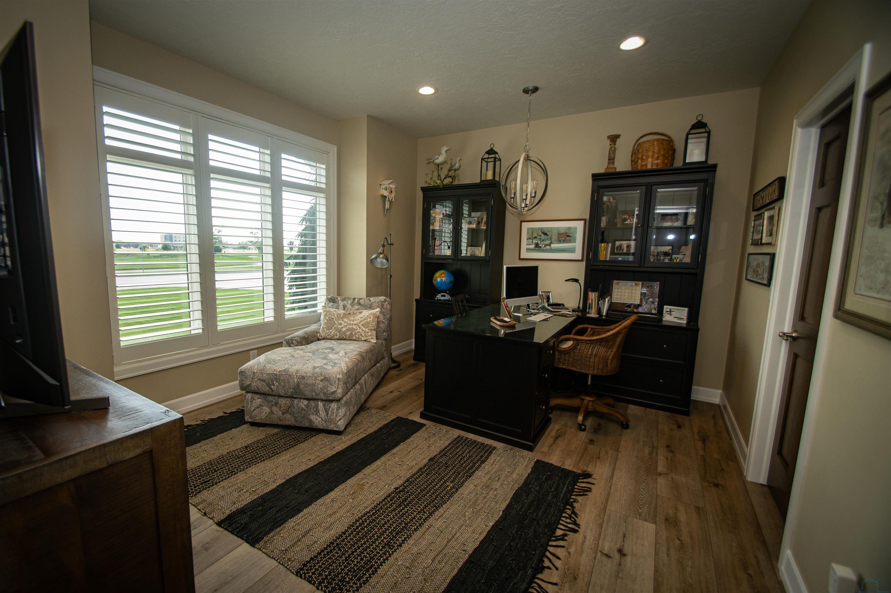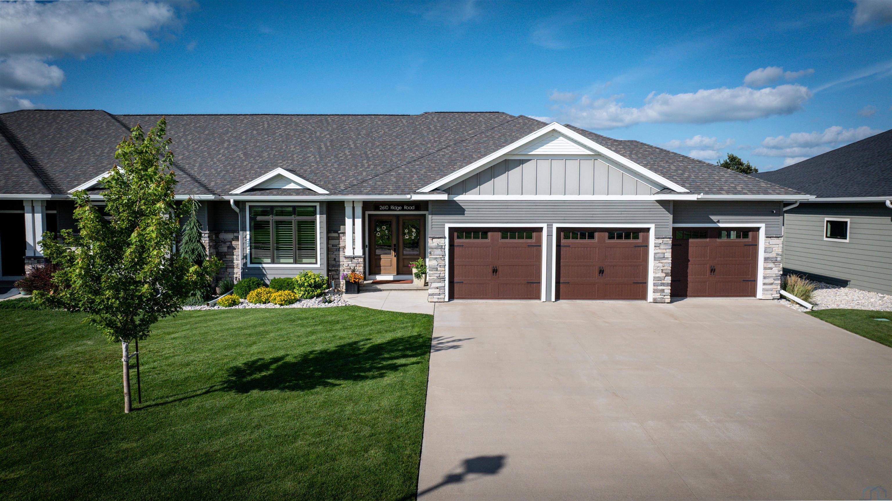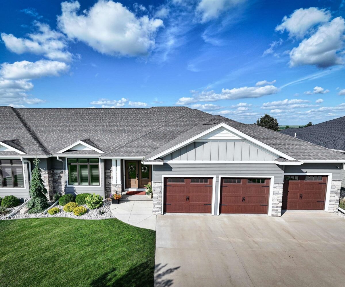 Welcome to your dream home on the Ridge Golf Course in Sioux Center, IA! This stunning, fully customized duplex offers an unparalleled living experience with incredible views of both the front and back nine at the Ridge. Spanning 3,571 square feet of finished living space, this home is a masterpiece of high-end finishes. The main level and basement boast beautiful LVP flooring, while the kitchen features exquisite Hilltop cabinets and Cambria countertops. The main level is designed for both comfort and luxury. The spacious master bedroom is a private retreat, offering a magnificent view of the sunrise over the golf course. The master bathroom is equally impressive with a large walk-in Ceramic tiled shower. The great room is the heart of the home, featuring a large window that provides an expansive view of the back nine, and a cozy fireplace perfect for relaxing evenings. Step into the enclosed patio to enjoy a year-round surrounding glass view of the picturesque sky and the beautiful golf course. The basement is an entertainer’s paradise, offering a large living room and two guest bedrooms for hosting overnight visitors. The rec room is spacious and versatile, ideal for a home gym with plenty of room for various exercise machines. The basement bathroom is a true highlight, featuring a luxurious tub and a walk-in sauna with Red Light Therapy included. With 4 bedrooms and 3 bathrooms (1 full, 1 three-quarter, 1 half) complete with Onyx countertops, this home provides ample space for family and guests. Additionally, you’ll find tons of storage space throughout the home and in the utility room. The clubhouse is conveniently located right across the street, making for easy access to all the amenities the Ridge has to offer. This unique property is more than a home; it’s a lifestyle.