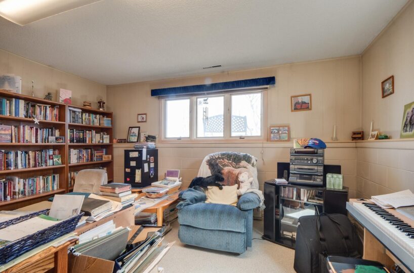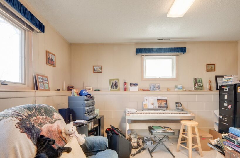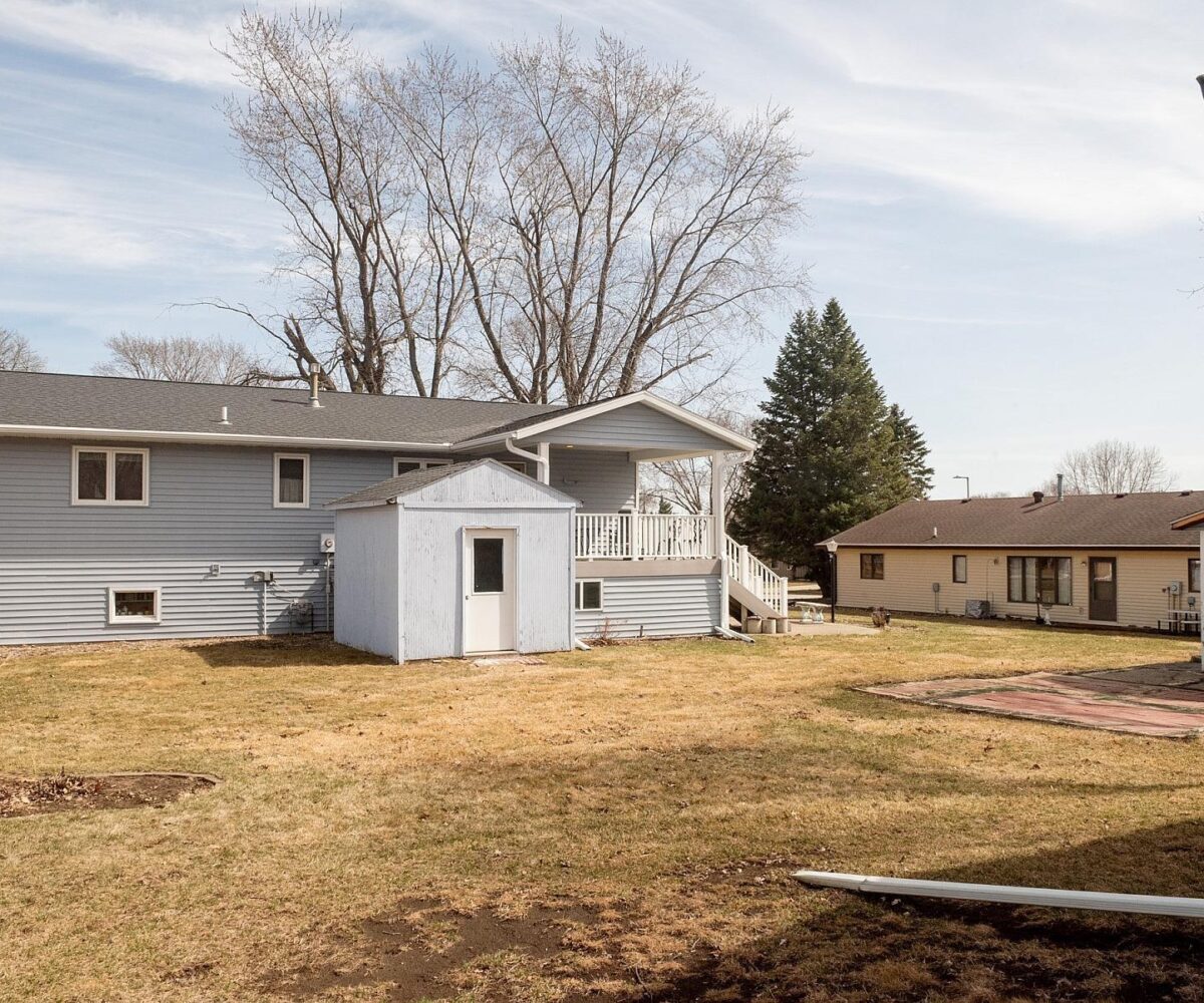 Spacious and functional, this 4-bedroom, 2-bath split-level offers comfortable living inside and out. A covered deck creates the perfect outdoor retreat, complemented by two utility sheds for added convenience. The attached garage stands out with a built-in office area and an extra-deep north stall which is ideal for storage, projects, or additional workspace.