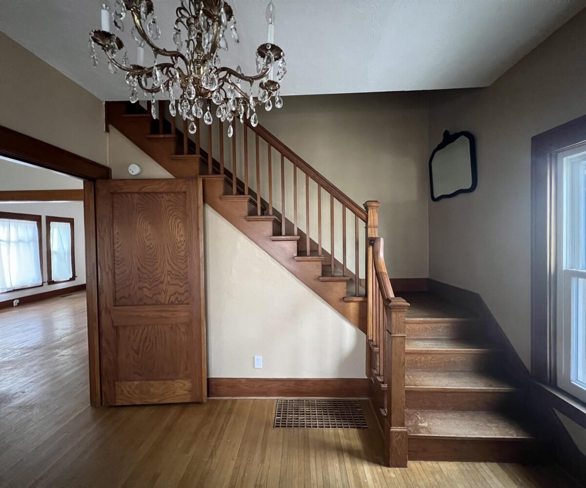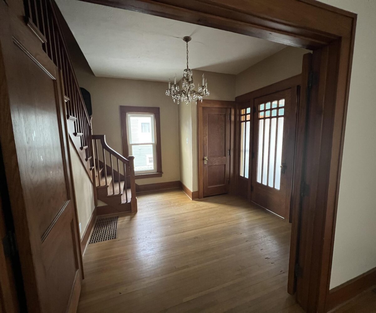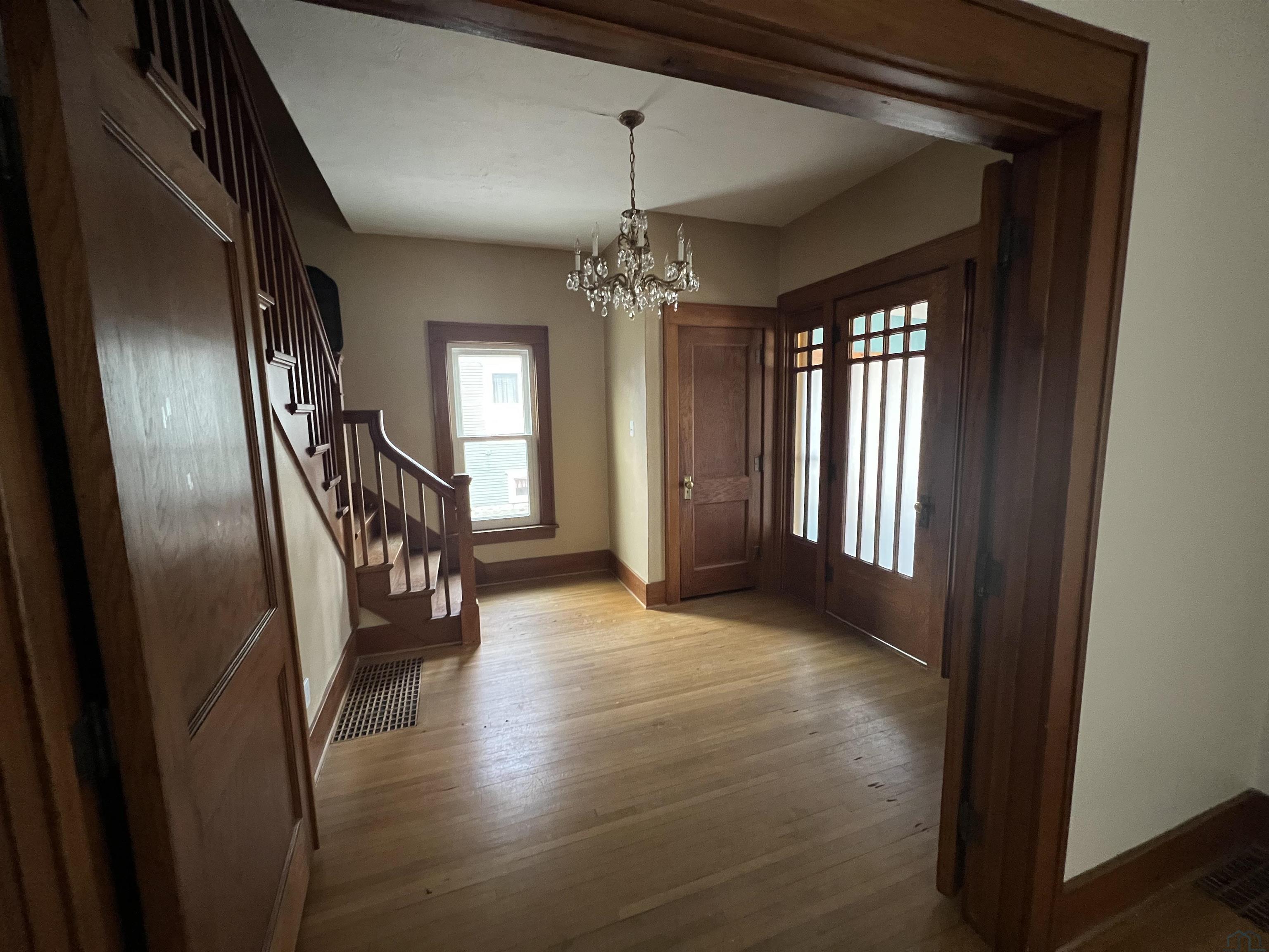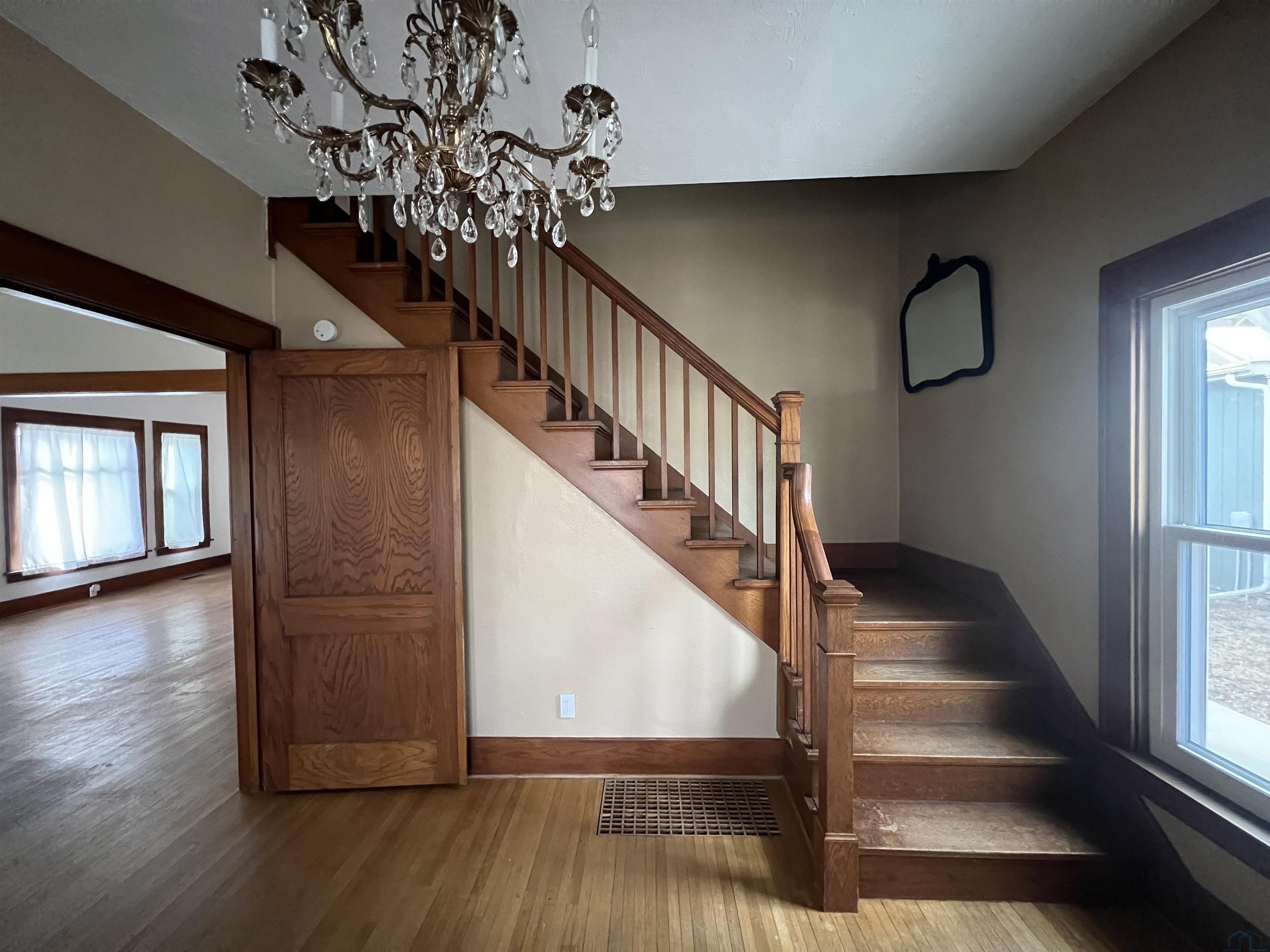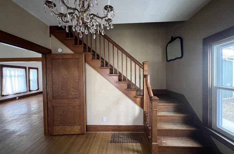 Spacious 4-5 Bedroom home with lots of character and updates! This home not only has great curb appeal, but has gorgeous hardwood floors, high ceilings, tall baseboards and original trim around the windows, open staircase, claw foot tub and many walk-in closets. Most of the main floor has just been repainted. The large 28×34 double detached garage has a large work area / storage which is a nice feature as well as being within walking distance of downtown, park, library and schools. The windows, gutters and driveway have been redone in the last 3 years. This home also has a great backyard!