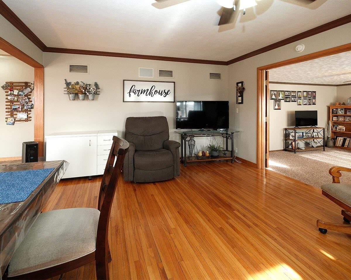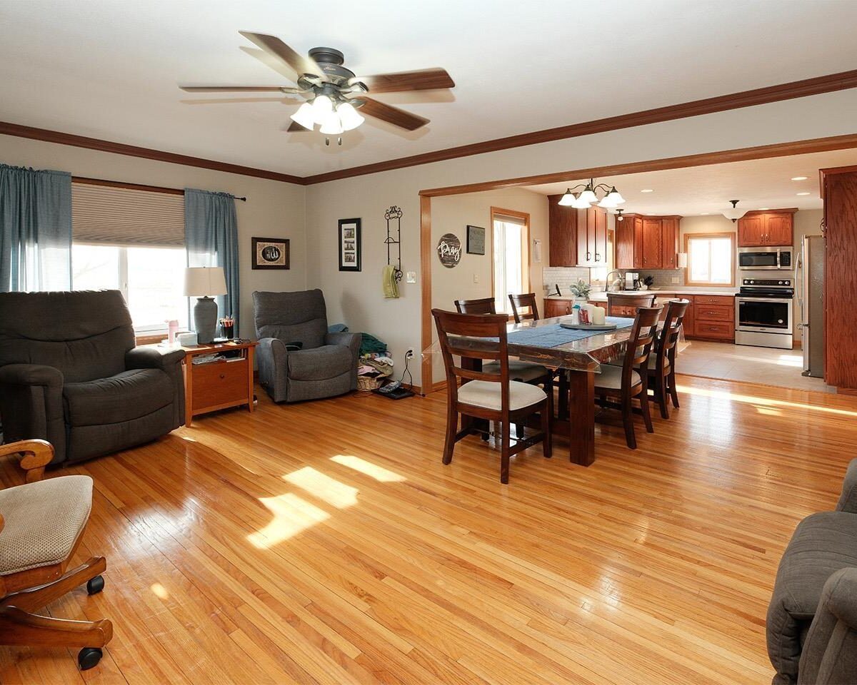 Don’t miss this well-maintained acreage just north of Middleburg! Situated on 7.67 peaceful acres, this property offers the best of country living—wide open skies, stunning sunrises and sunsets, and quiet, star-filled nights. The 1950s ranch home was relocated to this site in 1993 and has been lovingly cared for ever since. The fully finished basement provides excellent additional living space, featuring two bedrooms, a spacious bathroom, and a comfortable living area. On the main level, you’ll find a generous primary suite complete with a whirlpool tub, double vanity, and shower, conveniently located next to the large laundry/utility room. The kitchen was recently remodeled with custom cabinetry, laminate countertops, and new appliances. Updates include newer windows (2–3 years old), vinyl siding, and an asphalt roof installed in 2004. The 2+ attached garage is spacious, insulated and heated with drain. Multiple outbuildings offer endless possibilities for storage, hobbies, livestock, or other country pursuits—there’s room to make it your own. Enjoy space, privacy, and the freedom of country living!