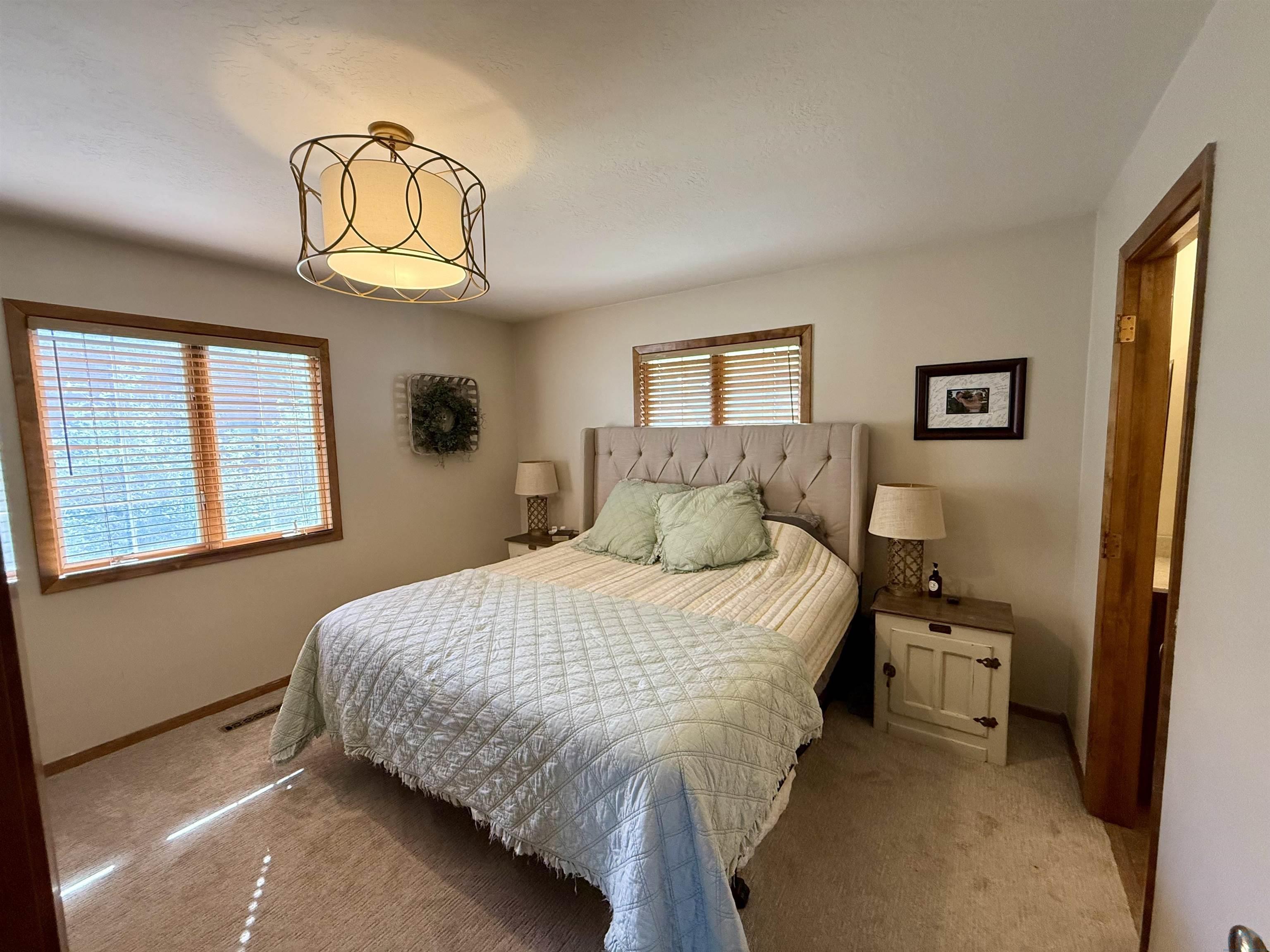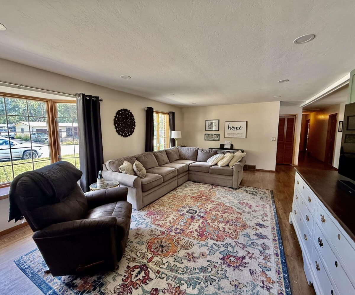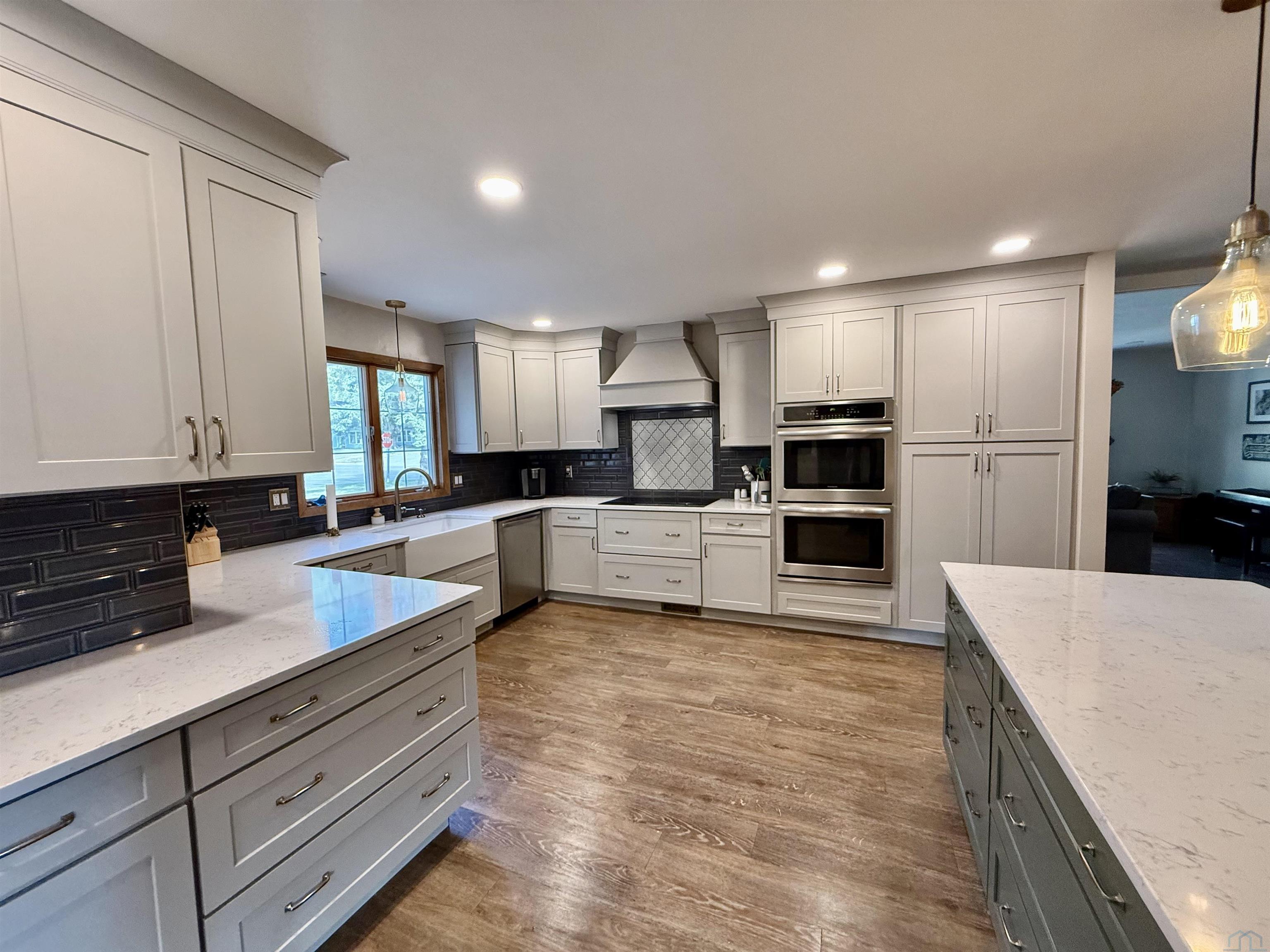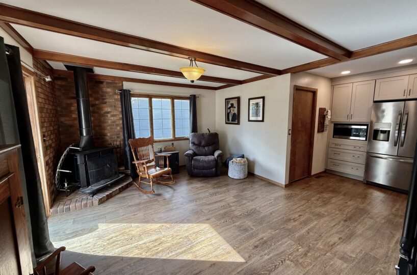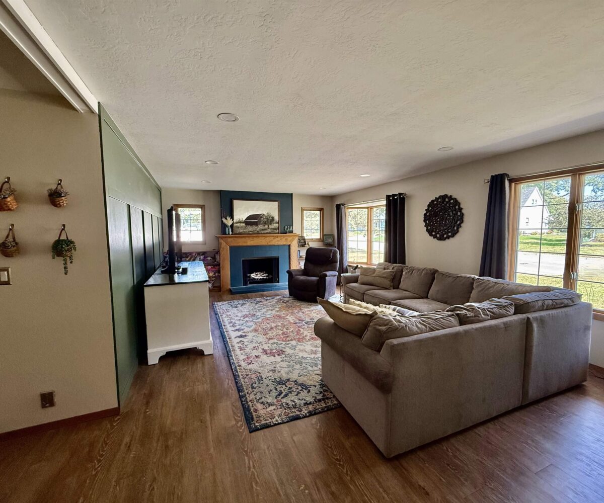 Step inside this beautifully maintained home featuring thoughtful updates, generous living spaces, and modern conveniences throughout.The heart of the home boasts quartz counters, custom cabinetry, stylish tile backsplash, recessed lighting, and newer stainless steel appliances (2019). Double ovens, a beverage fridge, and durable LVP flooring make this kitchen both functional and stunning. The main living room is filled with natural light from bay windows and features a cozy wood-burning fireplace with built-in shelving. A second living room offers another wood-burning fireplace and a walk-out sliding door, creating the perfect balance between comfort and indoor-outdoor living. Primary suite includes a walk-in closet and a private 3/4 bath (updated in 2019). Two additional main-floor bedrooms with new carpet (2019), one featuring a ceiling fan and the other with recessed lighting. A basement bedroom provides flexibility for guests, home office, or hobbies. Main-floor laundry with cabinets for storage. The full finished basement includes a kitchenette and full bathroom, making it an excellent space for entertaining, hosting guests, or creating an in-law suite. This home blends classic charm with modern finishes, offering multiple living spaces, updated features, and room to grow!