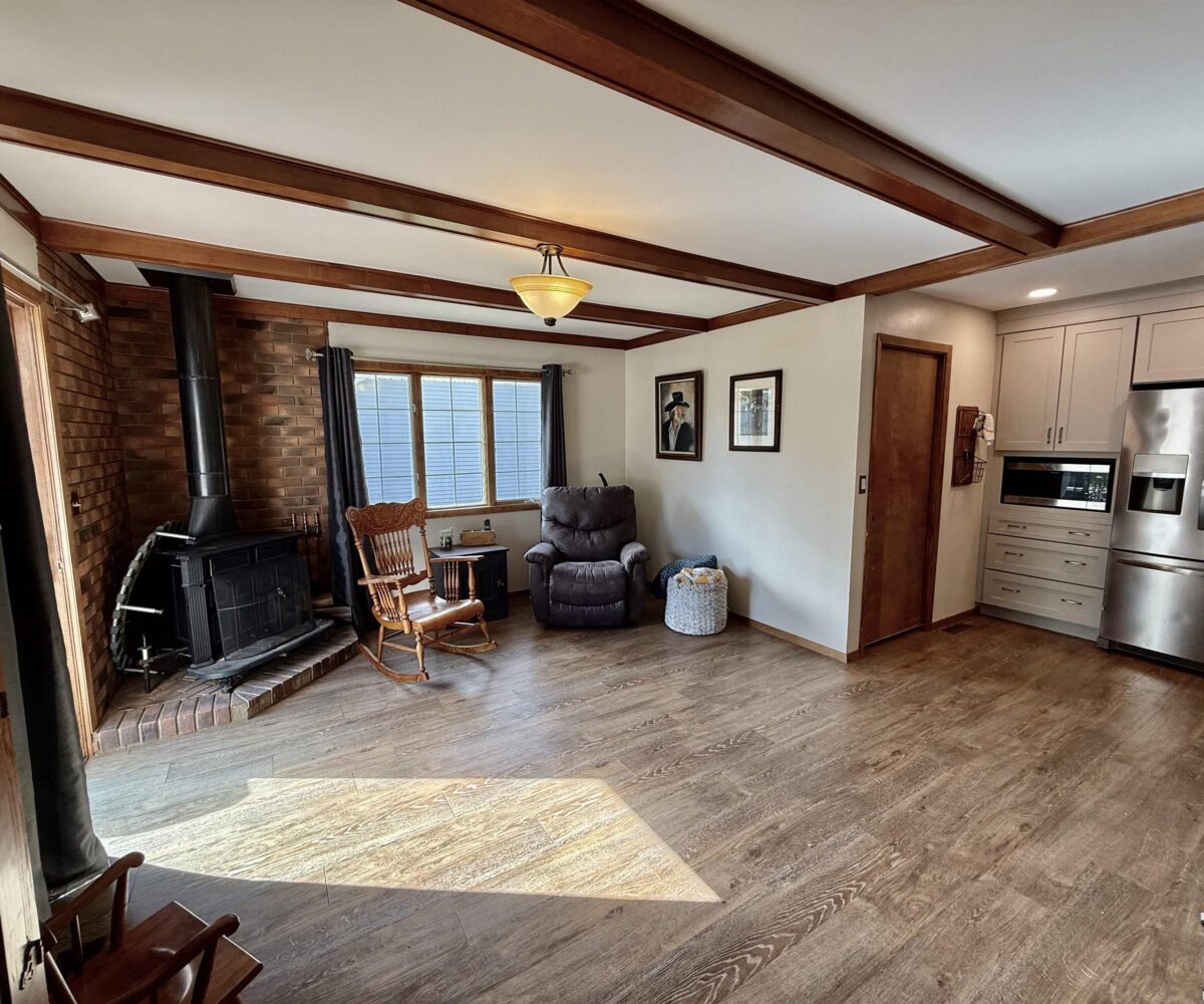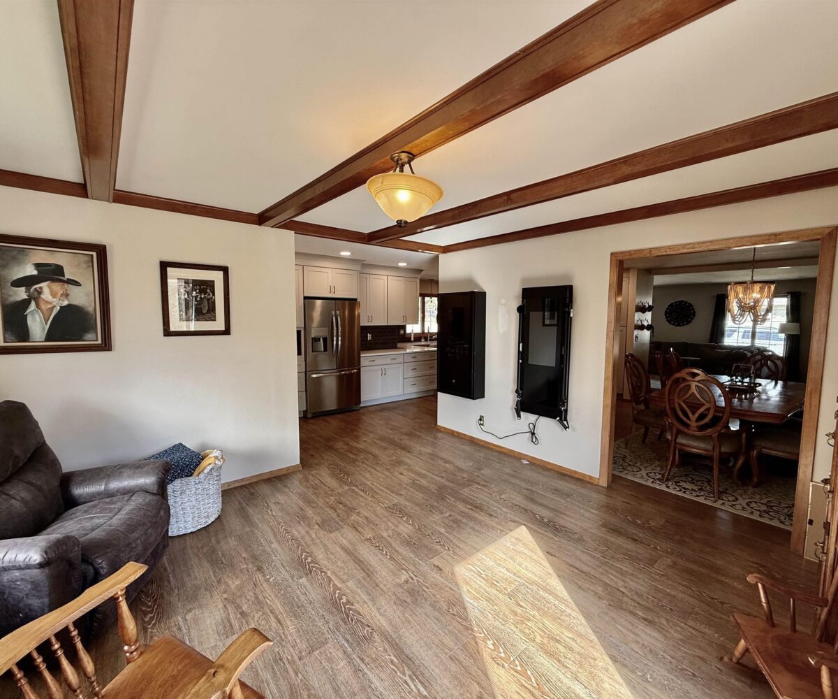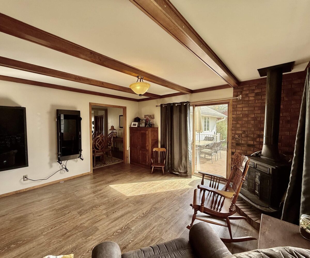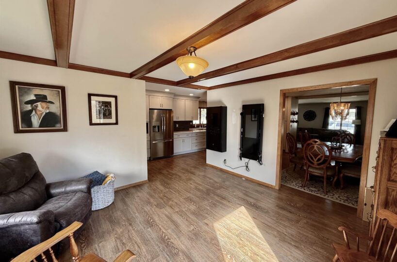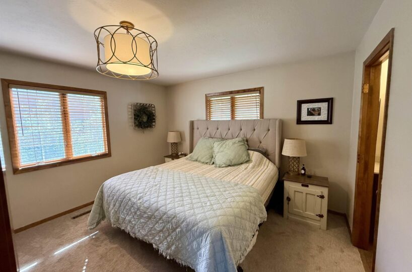 Step inside this beautifully maintained home featuring thoughtful updates, generous living spaces, and modern conveniences throughout.The heart of the home boasts quartz counters, custom cabinetry, stylish tile backsplash, recessed lighting, and newer stainless steel appliances (2019). Double ovens, a beverage fridge, and durable LVP flooring make this kitchen both functional and stunning. The main living room is filled with natural light from bay windows and features a cozy wood-burning fireplace with built-in shelving. A second living room offers another wood-burning fireplace and a walk-out sliding door, creating the perfect balance between comfort and indoor-outdoor living. Primary suite includes a walk-in closet and a private 3/4 bath (updated in 2019). Two additional main-floor bedrooms with new carpet (2019), one featuring a ceiling fan and the other with recessed lighting. A basement bedroom provides flexibility for guests, home office, or hobbies. Main-floor laundry with cabinets for storage. The full finished basement includes a kitchenette and full bathroom, making it an excellent space for entertaining, hosting guests, or creating an in-law suite. This home blends classic charm with modern finishes, offering multiple living spaces, updated features, and room to grow!