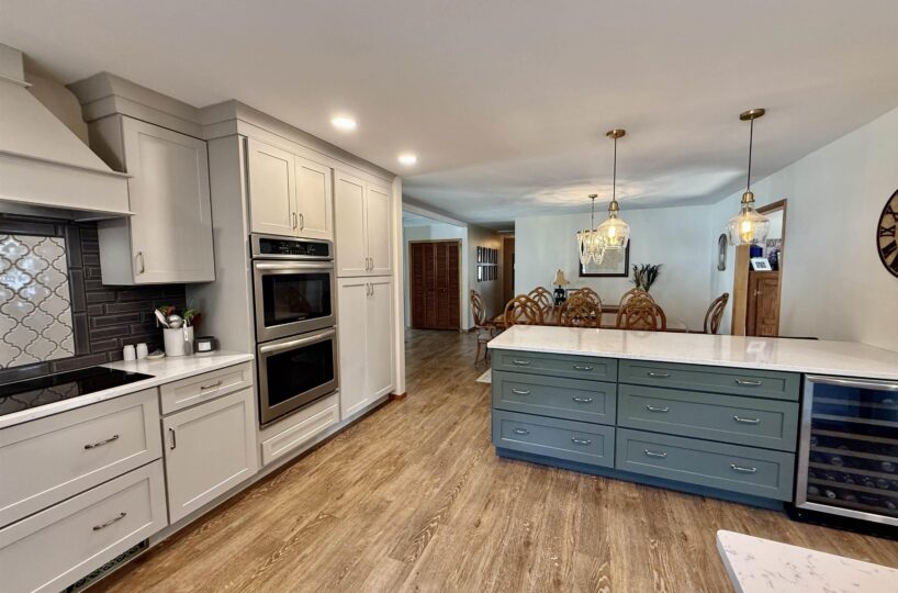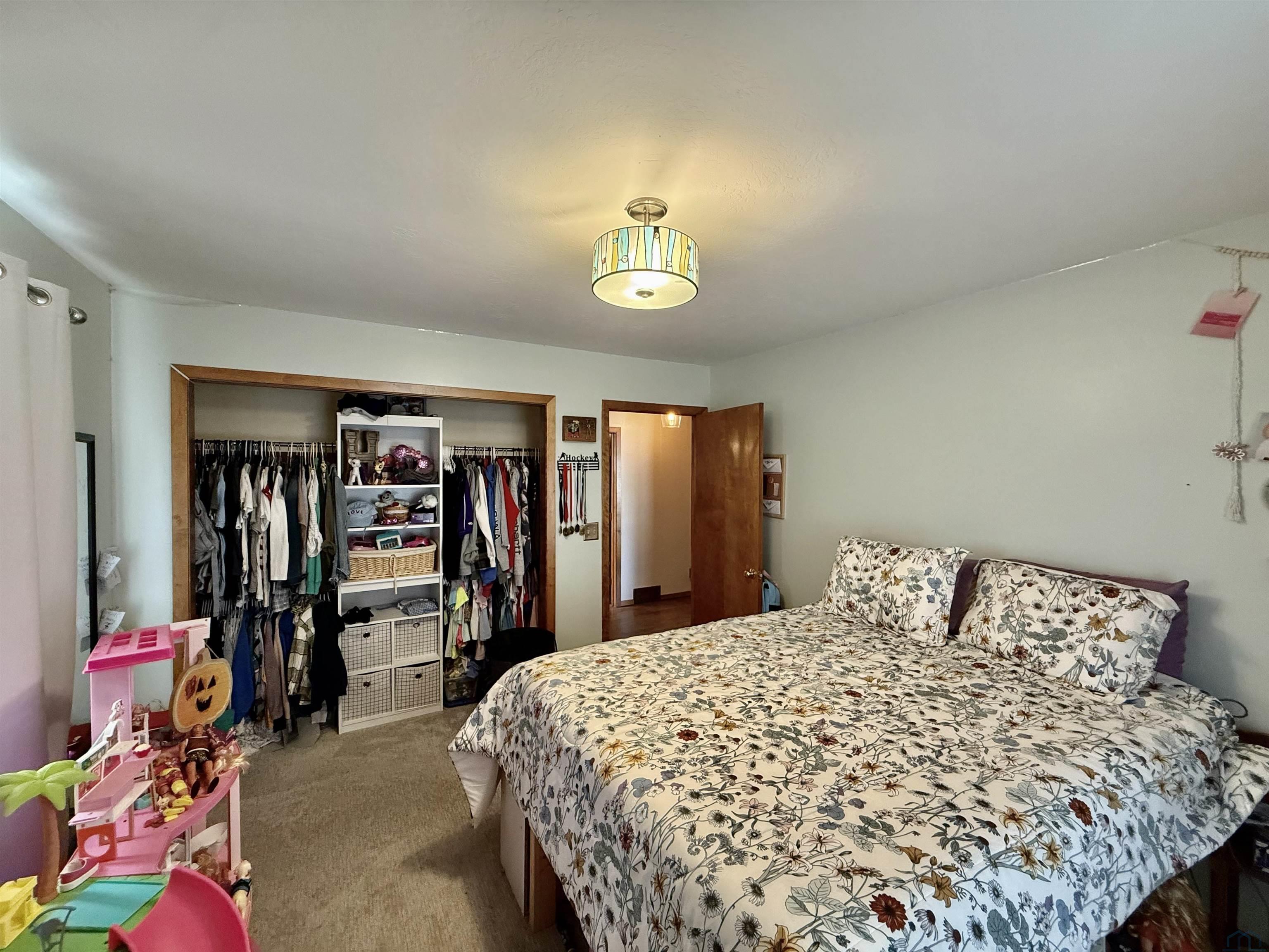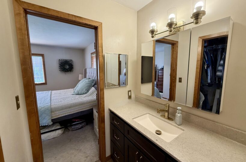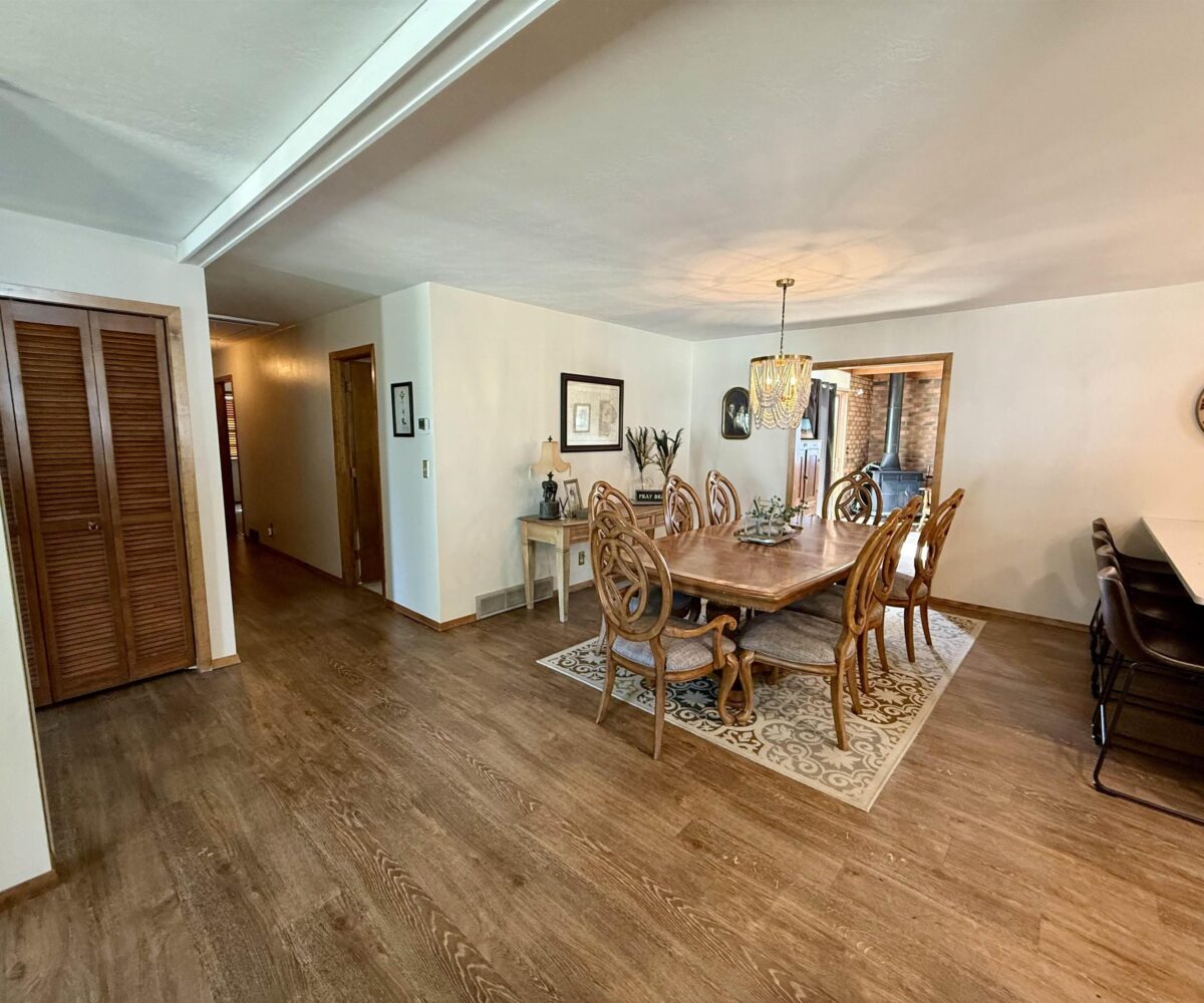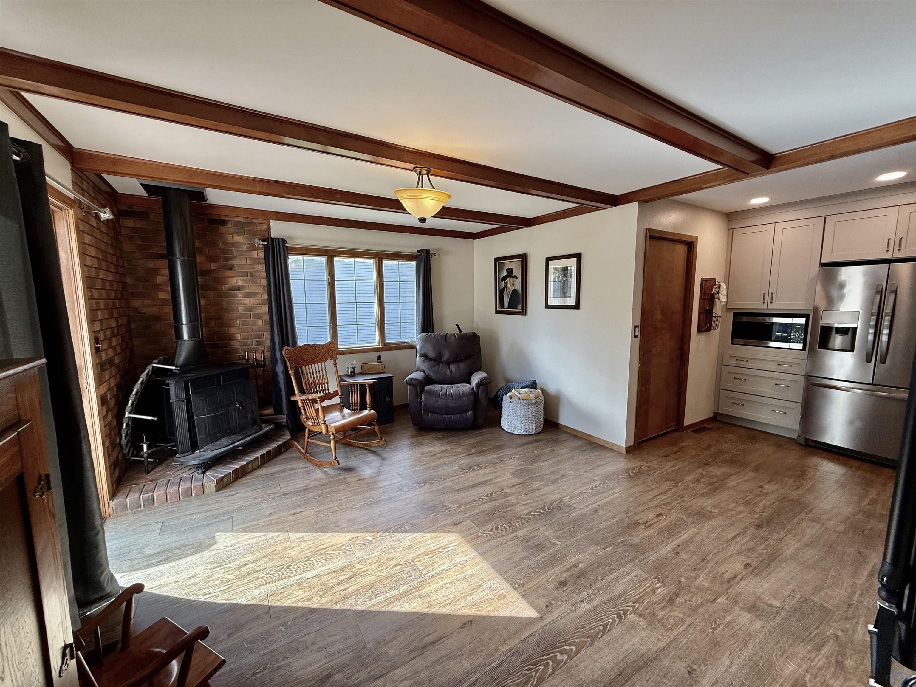 Step inside this beautifully maintained home featuring thoughtful updates, generous living spaces, and modern conveniences throughout.The heart of the home boasts quartz counters, custom cabinetry, stylish tile backsplash, recessed lighting, and newer stainless steel appliances (2019). Double ovens, a beverage fridge, and durable LVP flooring make this kitchen both functional and stunning. The main living room is filled with natural light from bay windows and features a cozy wood-burning fireplace with built-in shelving. A second living room offers another wood-burning fireplace and a walk-out sliding door, creating the perfect balance between comfort and indoor-outdoor living. Primary suite includes a walk-in closet and a private 3/4 bath (updated in 2019). Two additional main-floor bedrooms with new carpet (2019), one featuring a ceiling fan and the other with recessed lighting. A basement bedroom provides flexibility for guests, home office, or hobbies. Main-floor laundry with cabinets for storage. The full finished basement includes a kitchenette and full bathroom, making it an excellent space for entertaining, hosting guests, or creating an in-law suite. This home blends classic charm with modern finishes, offering multiple living spaces, updated features, and room to grow!