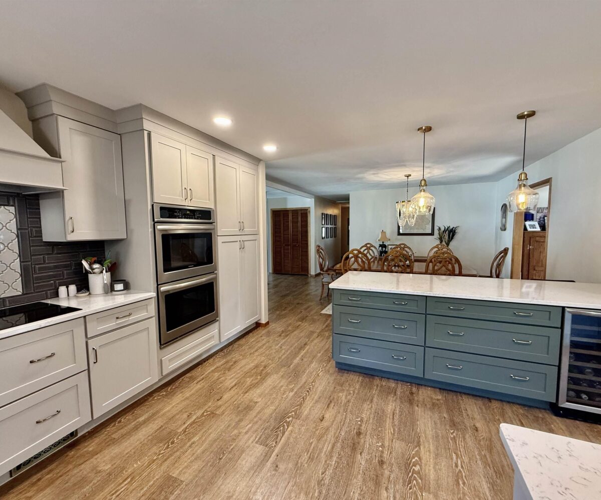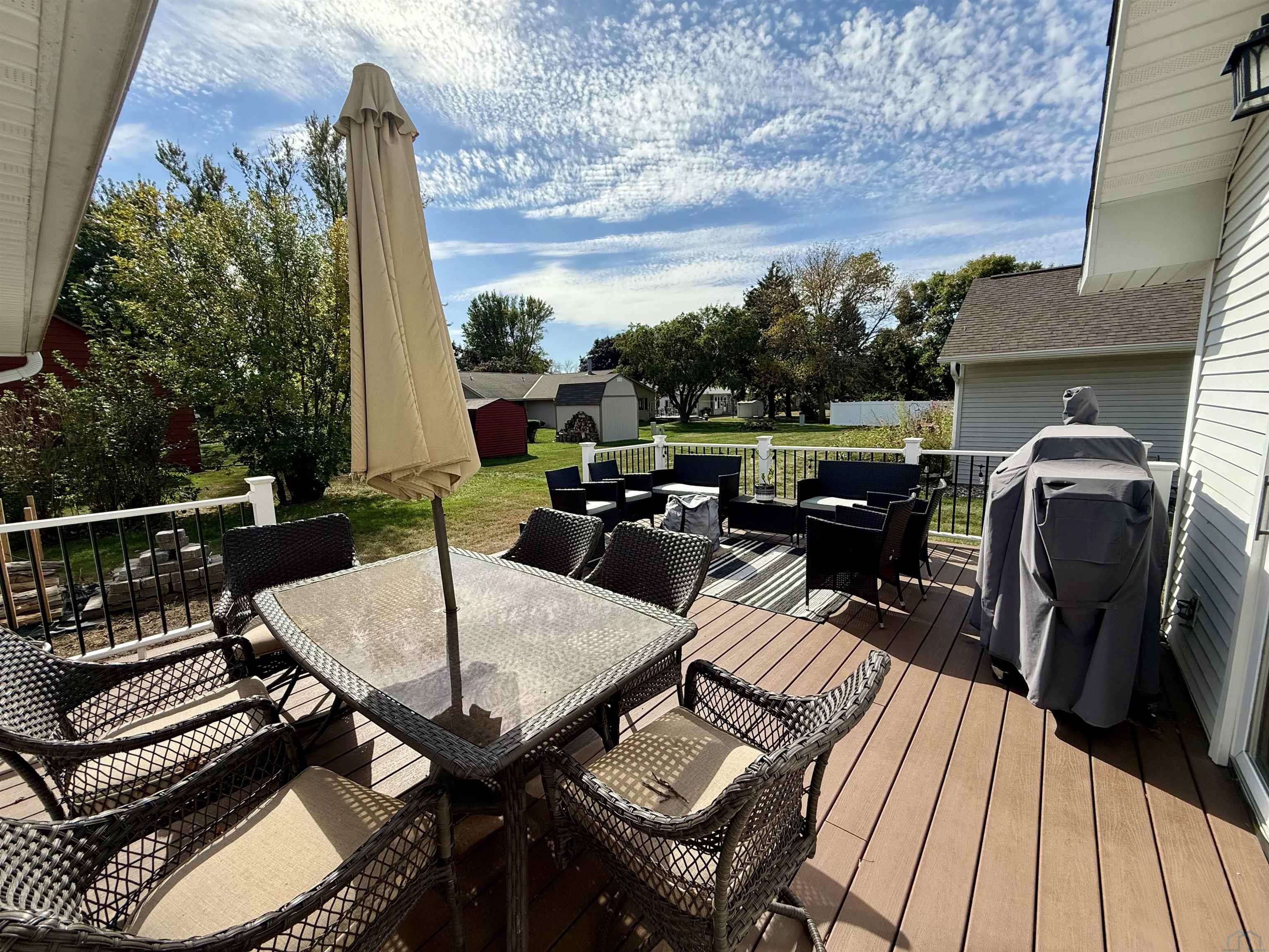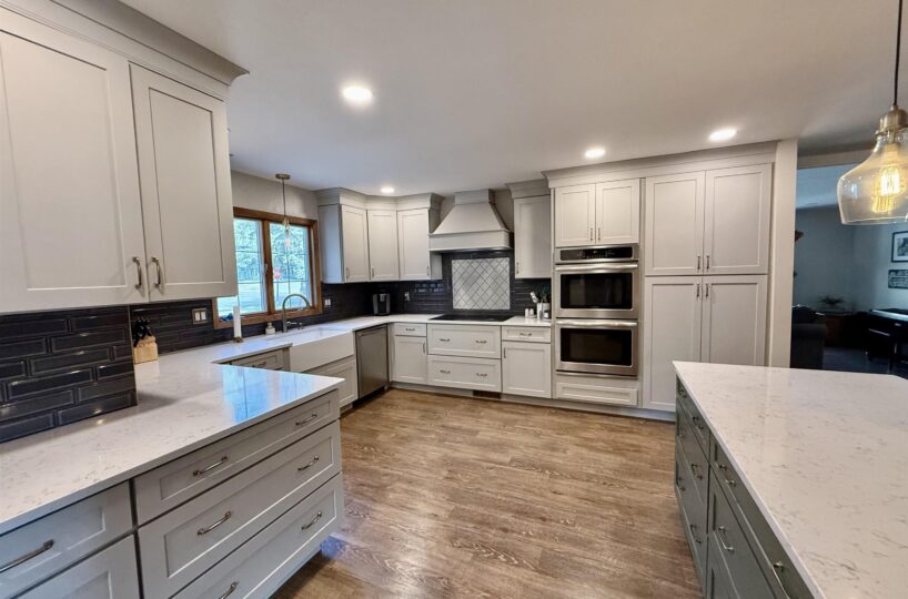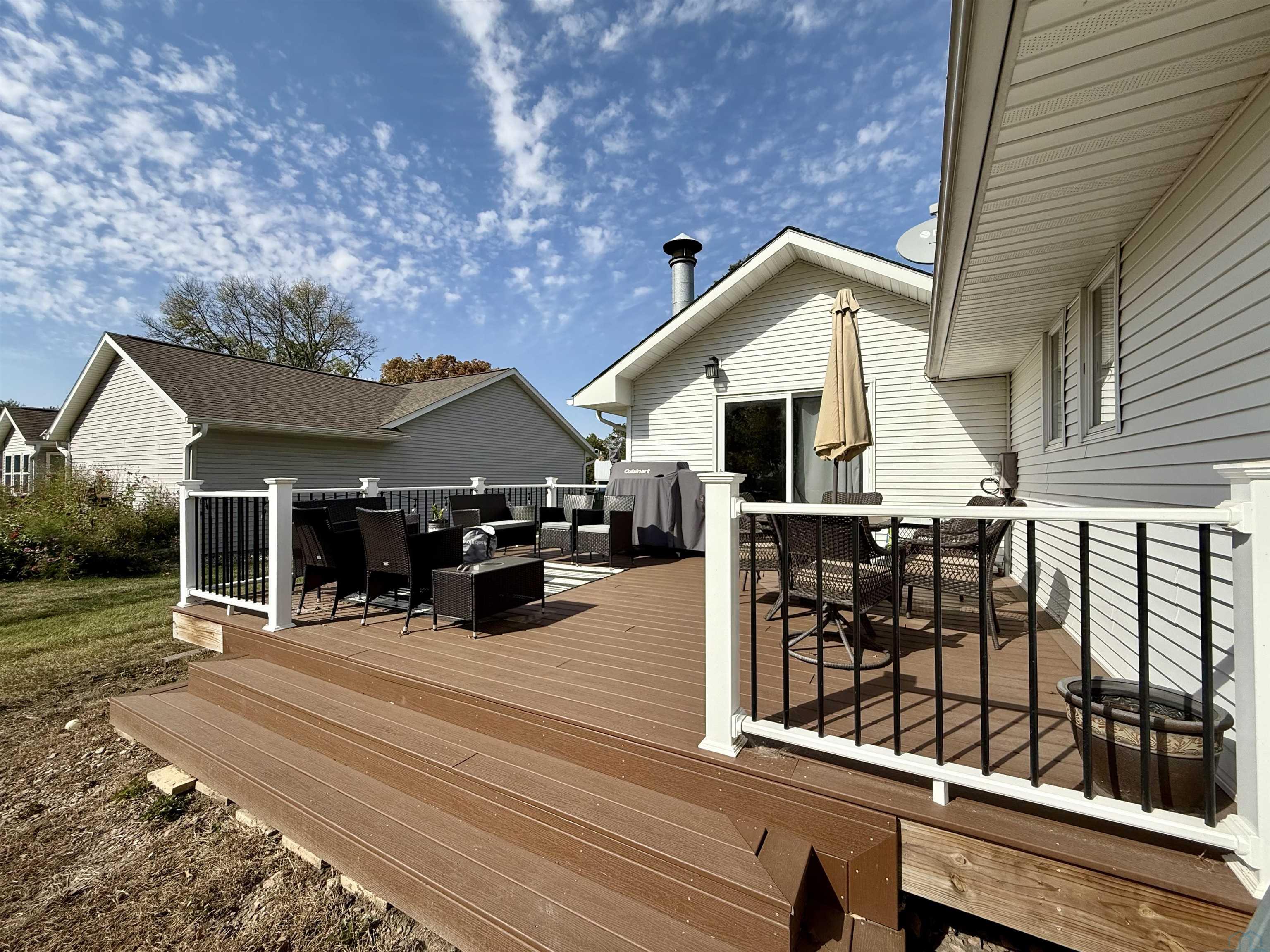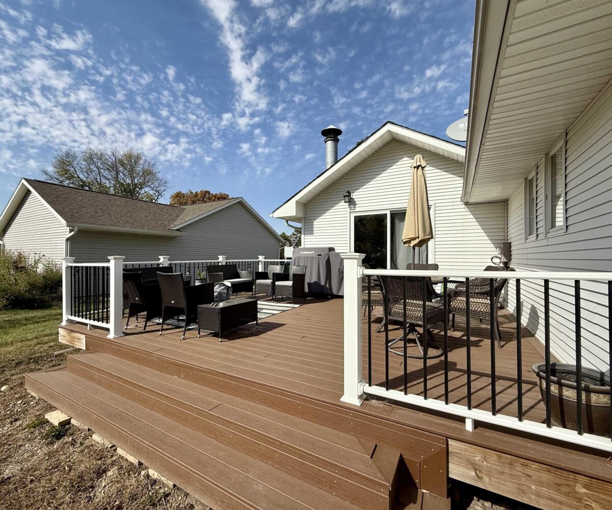 Step inside this beautifully maintained home featuring thoughtful updates, generous living spaces, and modern conveniences throughout.The heart of the home boasts quartz counters, custom cabinetry, stylish tile backsplash, recessed lighting, and newer stainless steel appliances (2019). Double ovens, a beverage fridge, and durable LVP flooring make this kitchen both functional and stunning. The main living room is filled with natural light from bay windows and features a cozy wood-burning fireplace with built-in shelving. A second living room offers another wood-burning fireplace and a walk-out sliding door, creating the perfect balance between comfort and indoor-outdoor living. Primary suite includes a walk-in closet and a private 3/4 bath (updated in 2019). Two additional main-floor bedrooms with new carpet (2019), one featuring a ceiling fan and the other with recessed lighting. A basement bedroom provides flexibility for guests, home office, or hobbies. Main-floor laundry with cabinets for storage. The full finished basement includes a kitchenette and full bathroom, making it an excellent space for entertaining, hosting guests, or creating an in-law suite. This home blends classic charm with modern finishes, offering multiple living spaces, updated features, and room to grow!