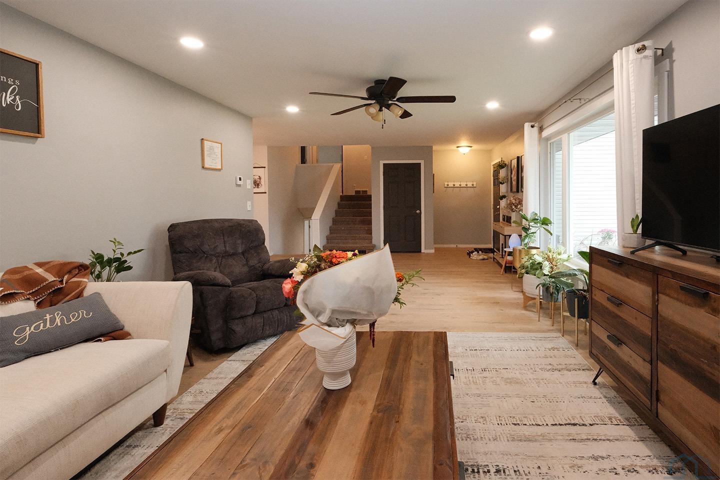 This property greets you from the street; situated on a spacious corner lot, conveniently located in the heart of Orange City, established lawn, trees and landscaping, and move in ready – so much to love! Meticulous care and attention to detail throughout, along with several value-added updates make this home a must see! Tremendous curb appeal, spacious backyard with cozy concrete patio, and 2 stall attached garage! The functional main floor greets you upon entry into the spacious main living area; large family room with ample natural light, dining room, functional kitchen with several updates including farmhouse sink, newer appliances, painted cabinets, and pantry with charming barn door! The main floor also features a cozy 4 seasons room, which offers additional living space, gas fireplace, vaulted ceilings, and patio access! Upstairs is home to 3 large bedrooms and an updated full bathroom with large vanity and ample linen storage! The partial basement is equipped with an additional spacious family room with electric fireplace and garden view windows, full/updated bathroom, and laundry +mechanical. Updates include professionally installed radon mitigation system, new LVP flooring throughout (2024), new HVAC (2025), partially re-shingled roof (2025), and water heater (2022), along with newer vinyl/Pella windows and newer appliances (fridge-2025).