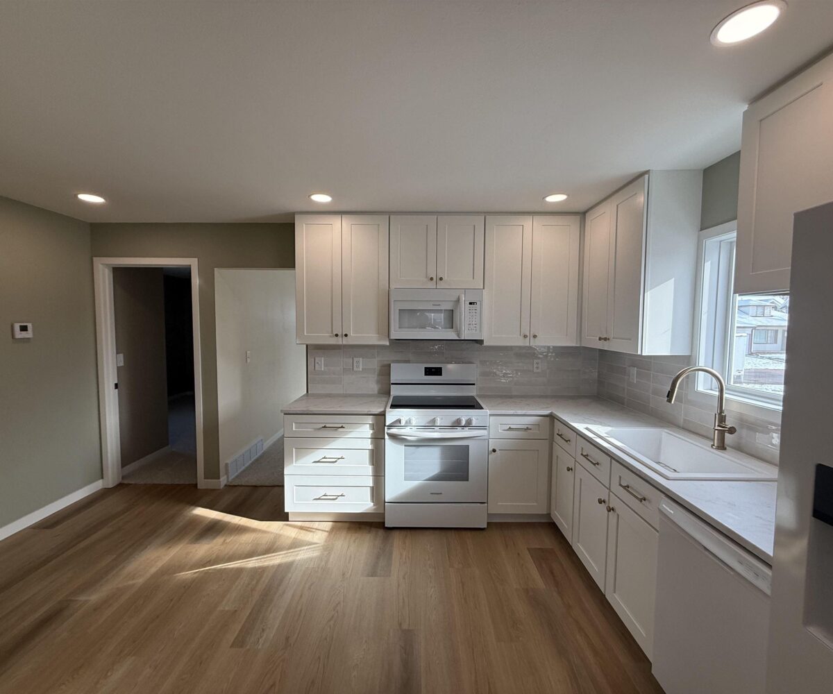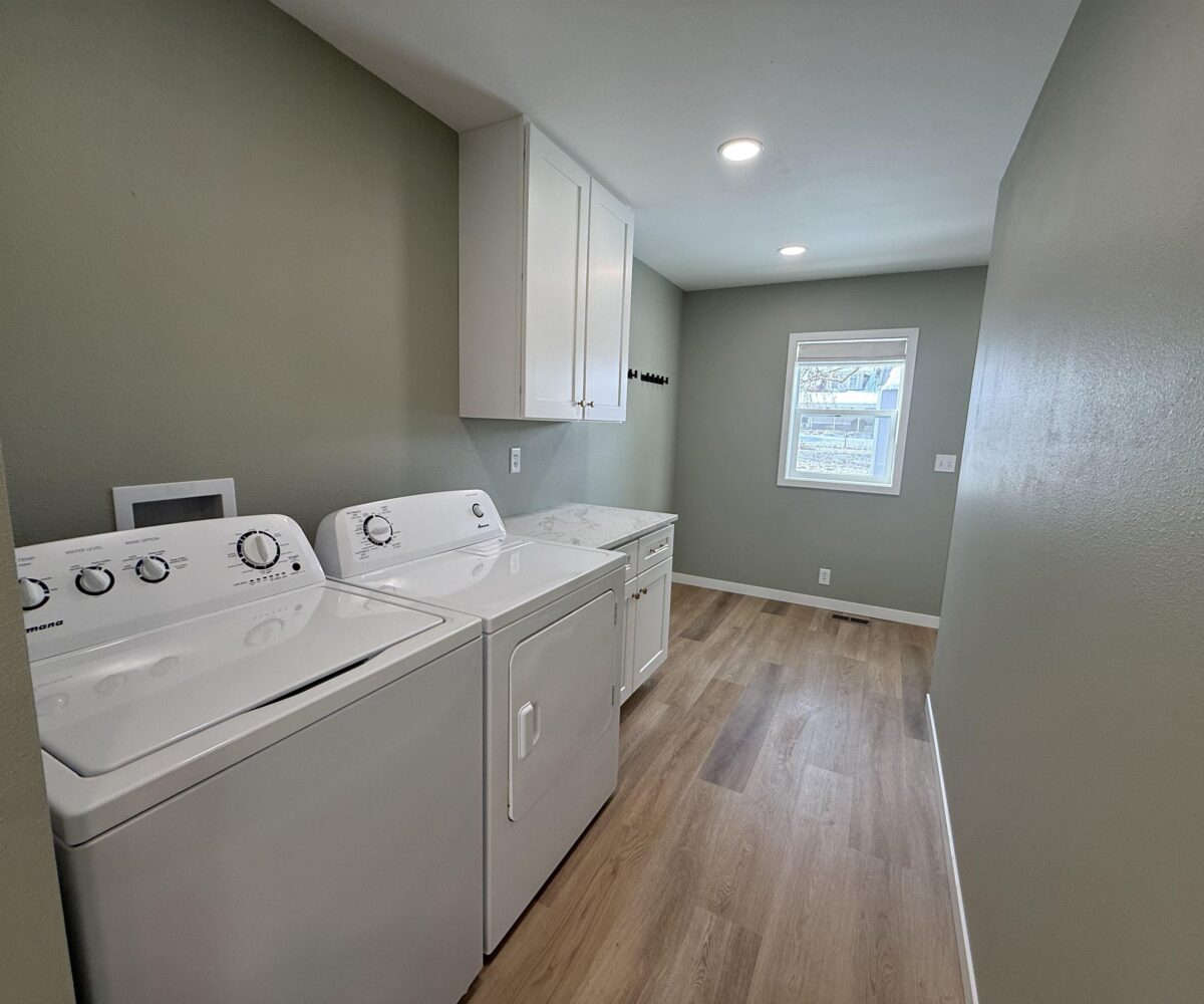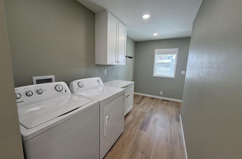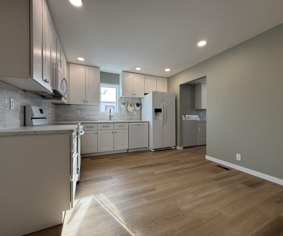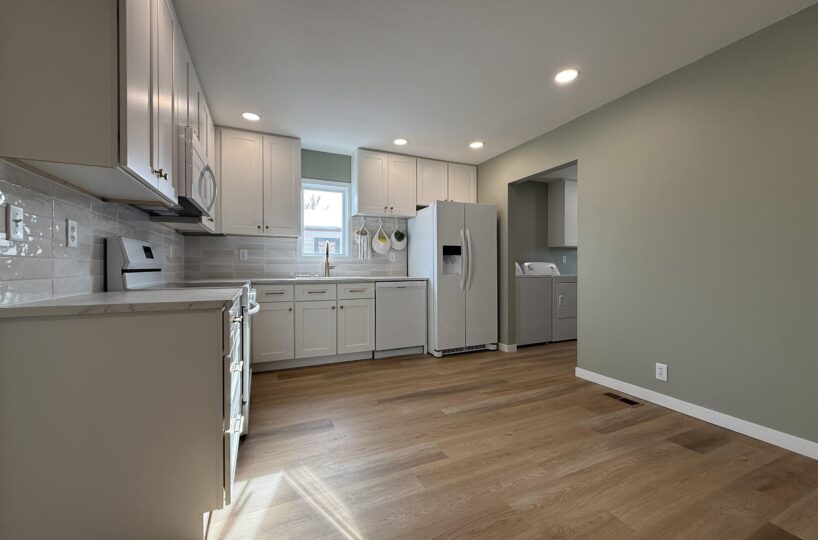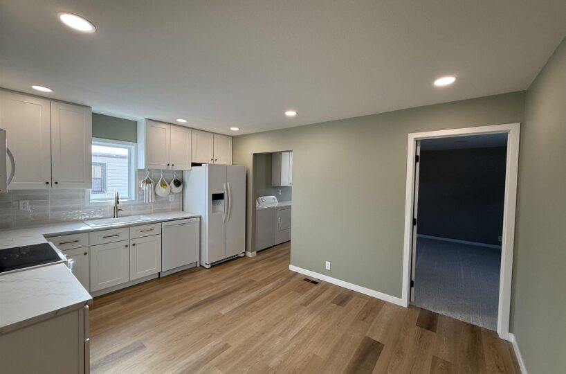 This 2-bedroom, 1 bath move-in ready property has 880 square feet of modern living space. It features a newly updated kitchen with brand-new cabinets and appliances, an updated full bathroom with a tub-shower combination, and new laminate and carpet flooring throughout the main floor. The laundry area is equipped with a new washer and dryer for added convenience. The home has been extensively renovated with an updated high-efficiency furnace and a new central air conditioning unit, along with new insulation, sheetrock, electrical, plumbing, windows and window treatments, and recessed ceiling lights. An unfinished basement provides plenty of additional storage space. Exterior features include a newly developed lawn and a spacious 12×30 shed built in 2022 that offers excellent storage or workshop space and has been freshly painted to complement the new maintenance-free board-and-batten siding on the house. This property provides a turnkey opportunity for buyers seeking a fully modernized home with quality upgrades.
