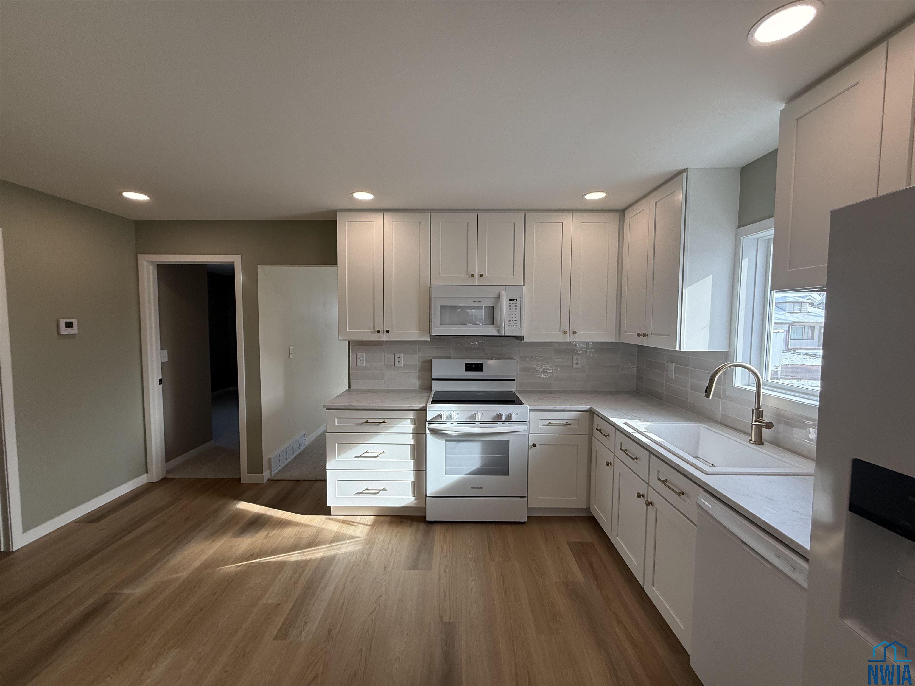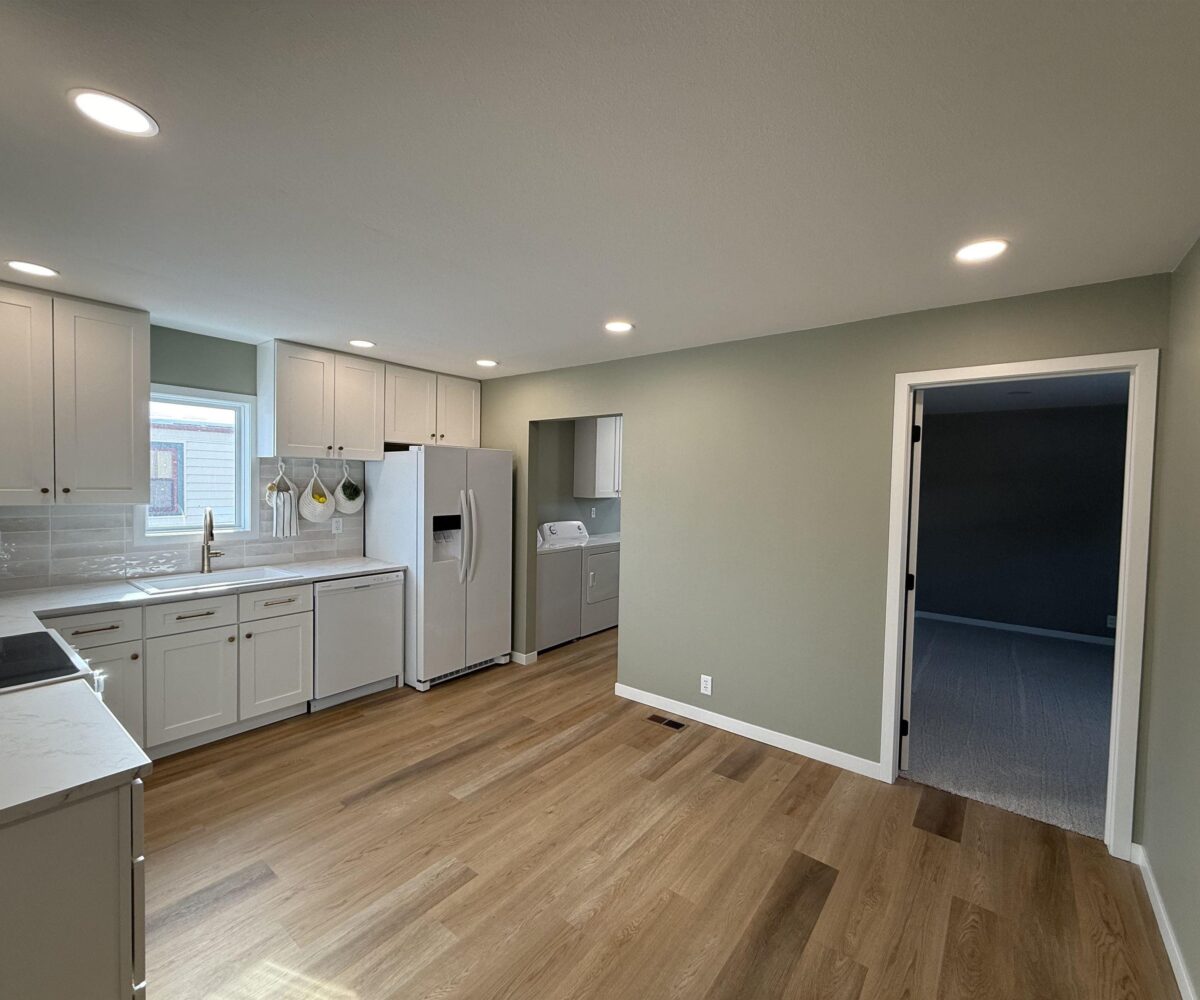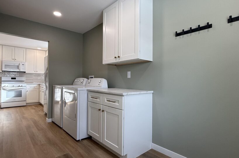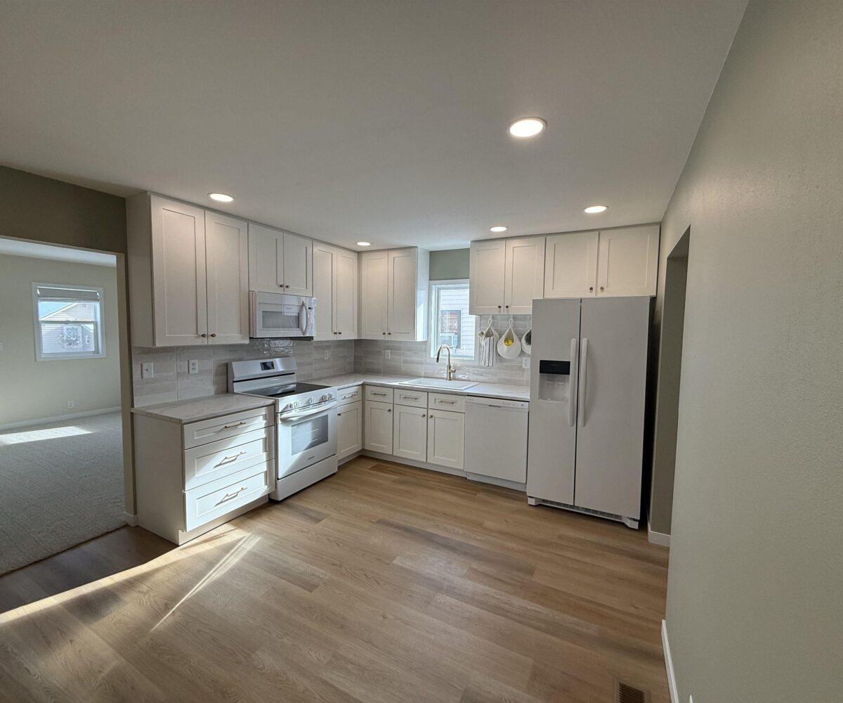 This 2-bedroom, 1 bath move-in ready property has 880 square feet of modern living space. It features a newly updated kitchen with brand-new cabinets and appliances, an updated full bathroom with a tub-shower combination, and new laminate and carpet flooring throughout the main floor. The laundry area is equipped with a new washer and dryer for added convenience. The home has been extensively renovated with an updated high-efficiency furnace and a new central air conditioning unit, along with new insulation, sheetrock, electrical, plumbing, windows and window treatments, and recessed ceiling lights. An unfinished basement provides plenty of additional storage space. Exterior features include a newly developed lawn and a spacious 12×30 shed built in 2022 that offers excellent storage or workshop space and has been freshly painted to complement the new maintenance-free board-and-batten siding on the house. This property provides a turnkey opportunity for buyers seeking a fully modernized home with quality upgrades.