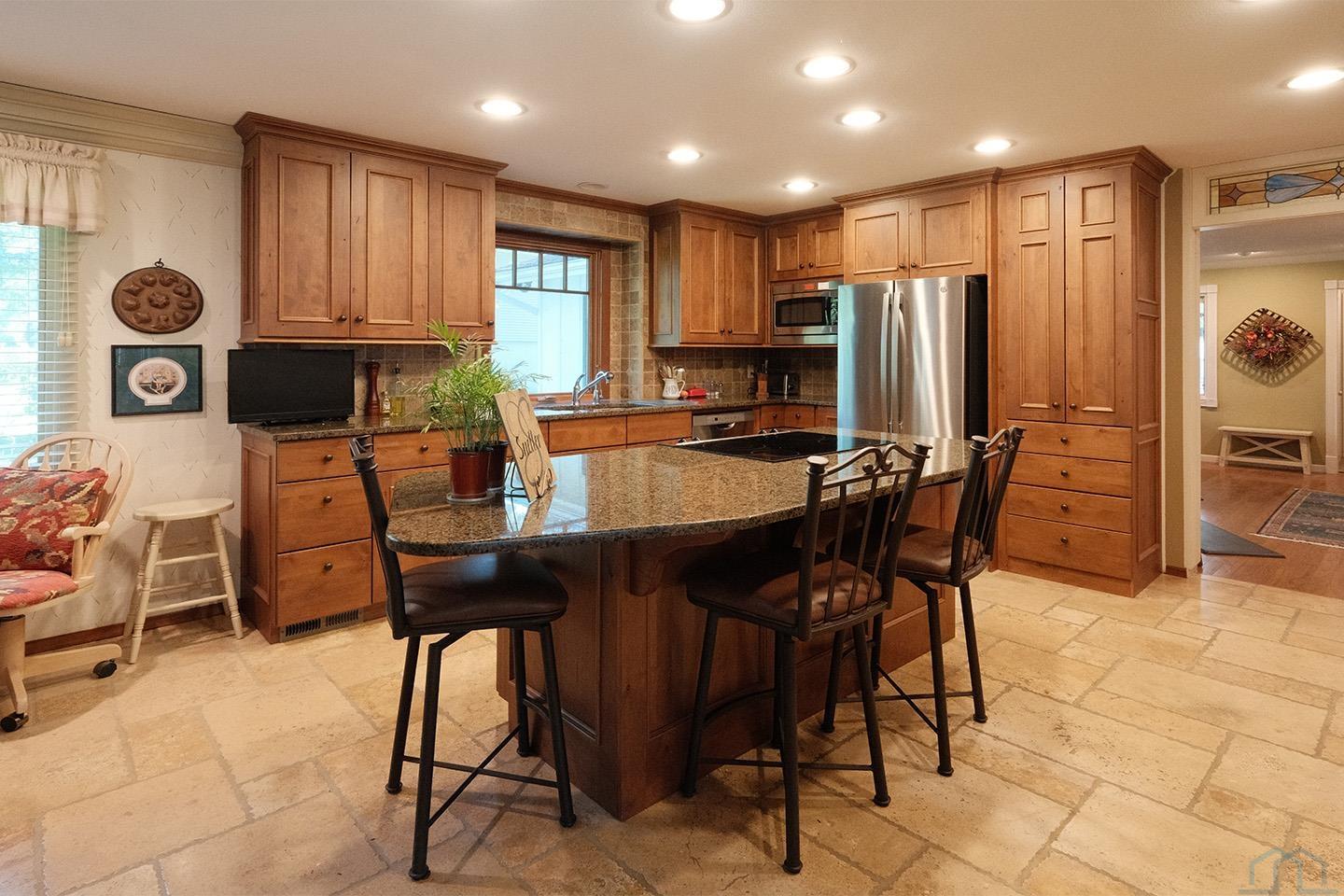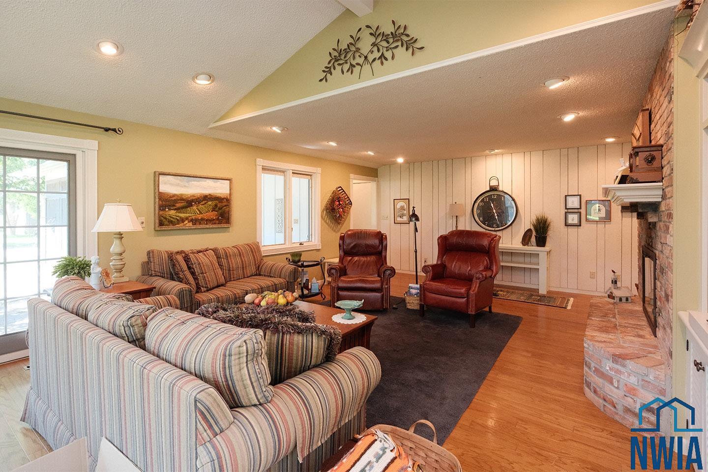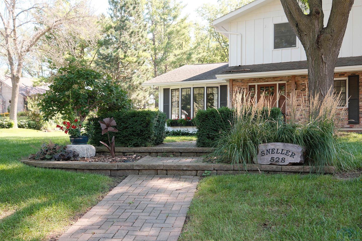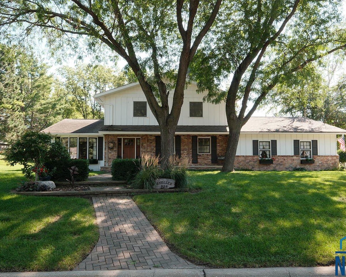 Packed with charm and every quality of home, this property has it all; undeniable curb appeal, tremendous location, tasteful updates and finishes, meticulous care, and functional living !This 2 story home is nestled in the heart of Sioux Center, with direct access to bike trails, schools and parks! Built in 1972, this home is situated on a spacious corner lot, featuring a serene streetscape with cedar/brick siding, inviting front porch, meticulously cared for lawn, trees and landscaping, along with 2 stall attached garage. This home greets you upon entry with functional and homey foyer! The main floor is thoughtfully designed with several details including beautiful travertine tile heated floors throughout and ample living space; large family room with wood burning fireplace, open concept kitchen with granite countertops and custom cherry cabinetry, wet bar with wine fridge, cozy den space, large formal dining, primary bedroom with full bath en-suite and walk-in closet! Upstairs offers additional living space with 4 bedrooms and full bath! The full basement is unfinished, but offers ample space for finished living spaces; family room, bathroom, laundry and storage, along with a workshop area and exterior access! You don’t want to miss the cozy screened in porch and paver patio – the perfect space to relax and unwind! Move in ready and all appliances included!