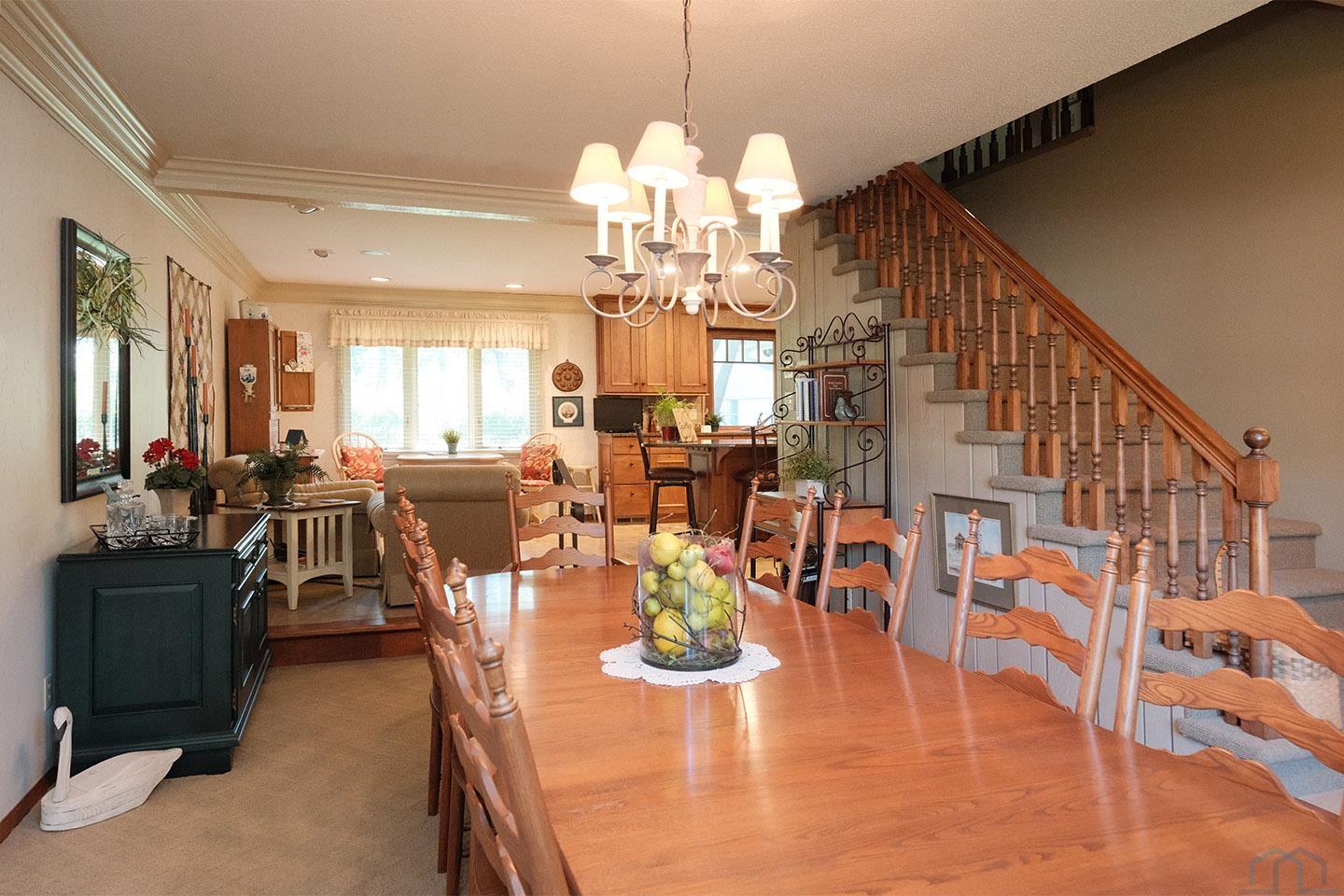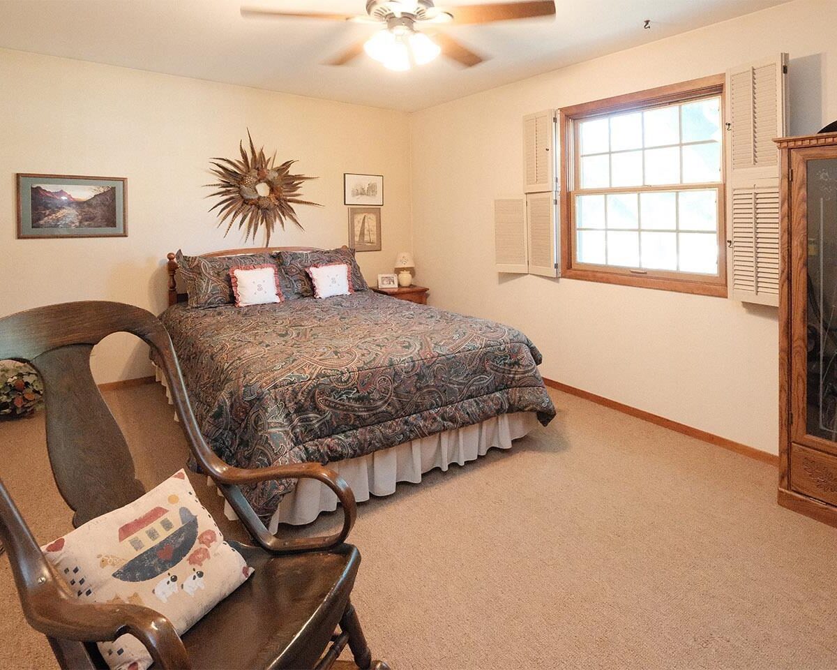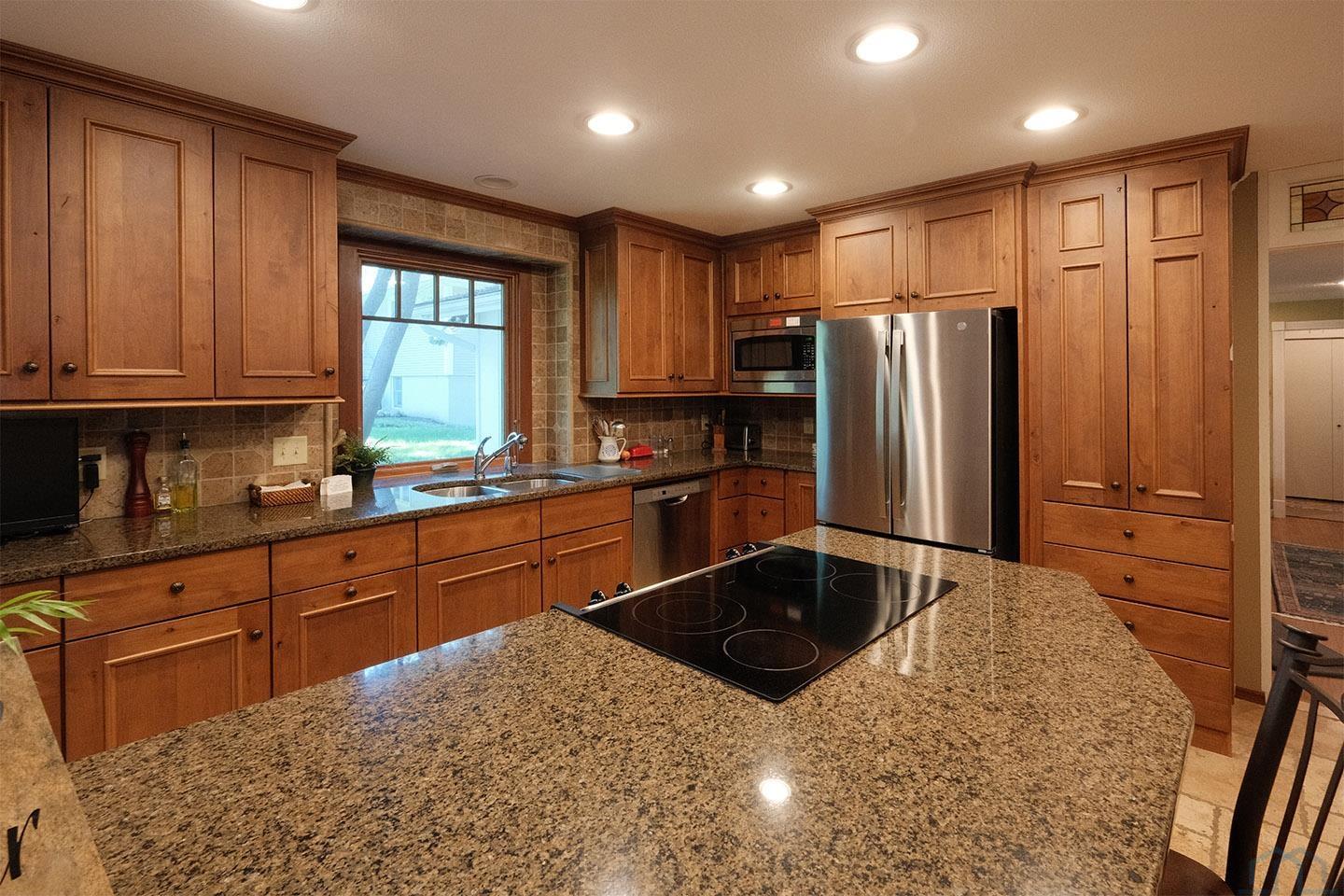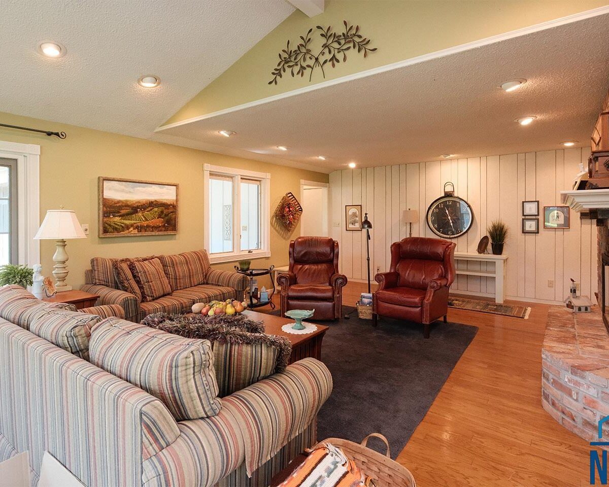 Packed with charm and every quality of home, this property has it all; undeniable curb appeal, tremendous location, tasteful updates and finishes, meticulous care, and functional living !This 2 story home is nestled in the heart of Sioux Center, with direct access to bike trails, schools and parks! Built in 1972, this home is situated on a spacious corner lot, featuring a serene streetscape with cedar/brick siding, inviting front porch, meticulously cared for lawn, trees and landscaping, along with 2 stall attached garage. This home greets you upon entry with functional and homey foyer! The main floor is thoughtfully designed with several details including beautiful travertine tile heated floors throughout and ample living space; large family room with wood burning fireplace, open concept kitchen with granite countertops and custom cherry cabinetry, wet bar with wine fridge, cozy den space, large formal dining, primary bedroom with full bath en-suite and walk-in closet! Upstairs offers additional living space with 4 bedrooms and full bath! The full basement is unfinished, but offers ample space for finished living spaces; family room, bathroom, laundry and storage, along with a workshop area and exterior access! You don’t want to miss the cozy screened in porch and paver patio – the perfect space to relax and unwind! Move in ready and all appliances included!