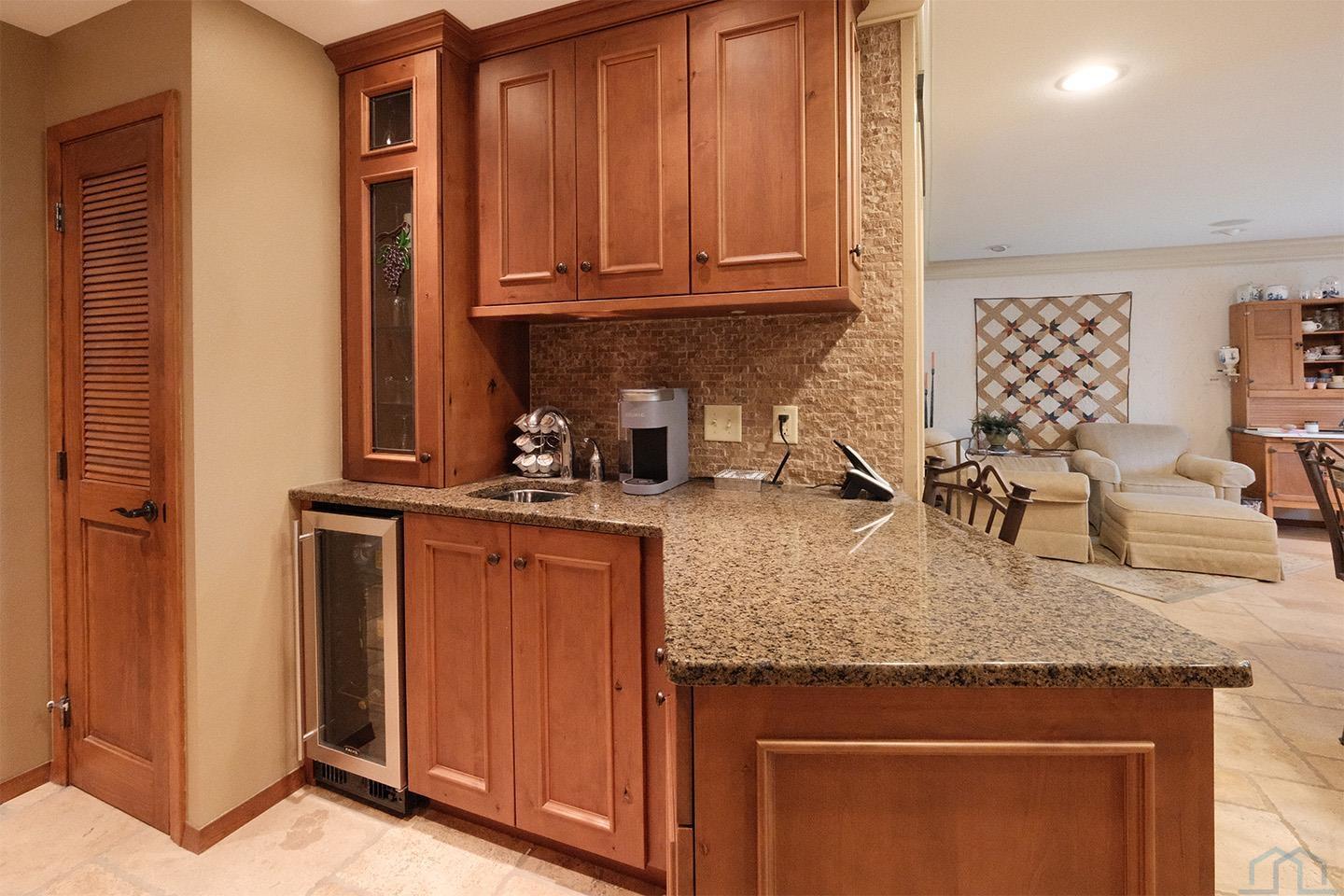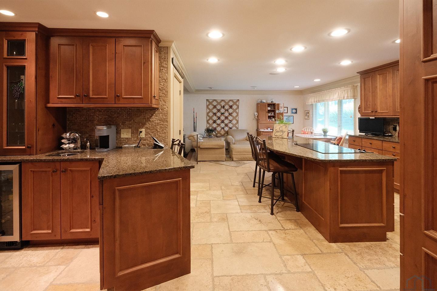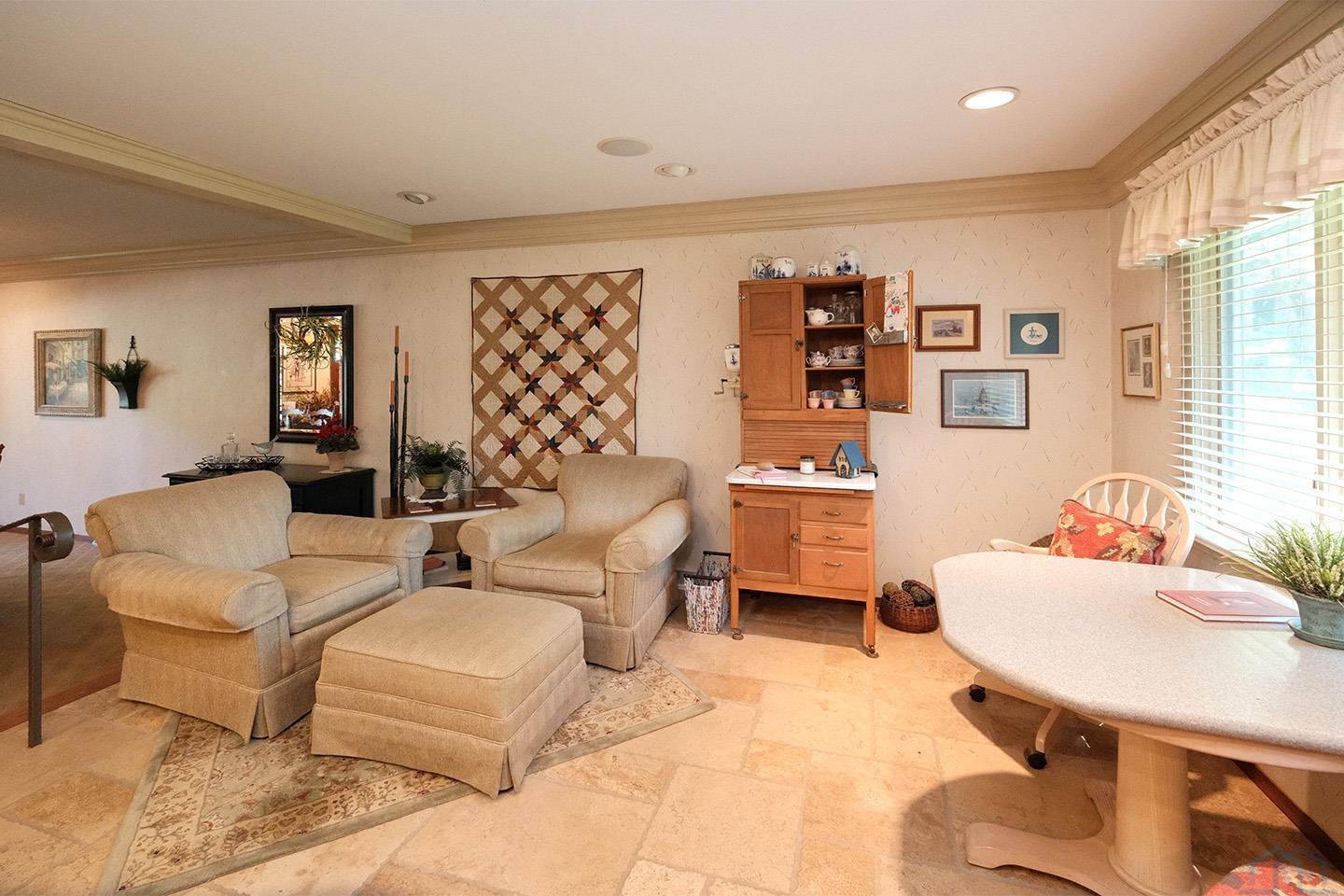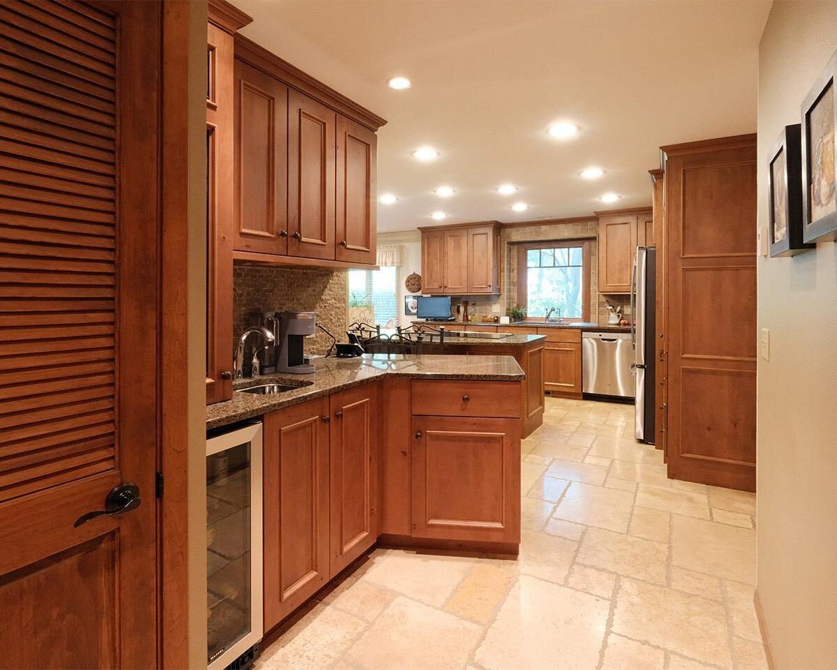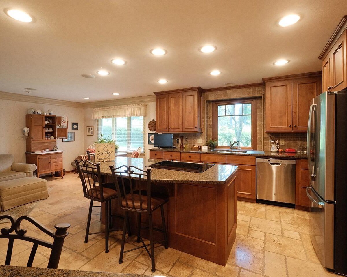 Packed with charm and every quality of home, this property has it all; undeniable curb appeal, tremendous location, tasteful updates and finishes, meticulous care, and functional living !This 2 story home is nestled in the heart of Sioux Center, with direct access to bike trails, schools and parks! Built in 1972, this home is situated on a spacious corner lot, featuring a serene streetscape with cedar/brick siding, inviting front porch, meticulously cared for lawn, trees and landscaping, along with 2 stall attached garage. This home greets you upon entry with functional and homey foyer! The main floor is thoughtfully designed with several details including beautiful travertine tile heated floors throughout and ample living space; large family room with wood burning fireplace, open concept kitchen with granite countertops and custom cherry cabinetry, wet bar with wine fridge, cozy den space, large formal dining, primary bedroom with full bath en-suite and walk-in closet! Upstairs offers additional living space with 4 bedrooms and full bath! The full basement is unfinished, but offers ample space for finished living spaces; family room, bathroom, laundry and storage, along with a workshop area and exterior access! You don’t want to miss the cozy screened in porch and paver patio – the perfect space to relax and unwind! Move in ready and all appliances included!
