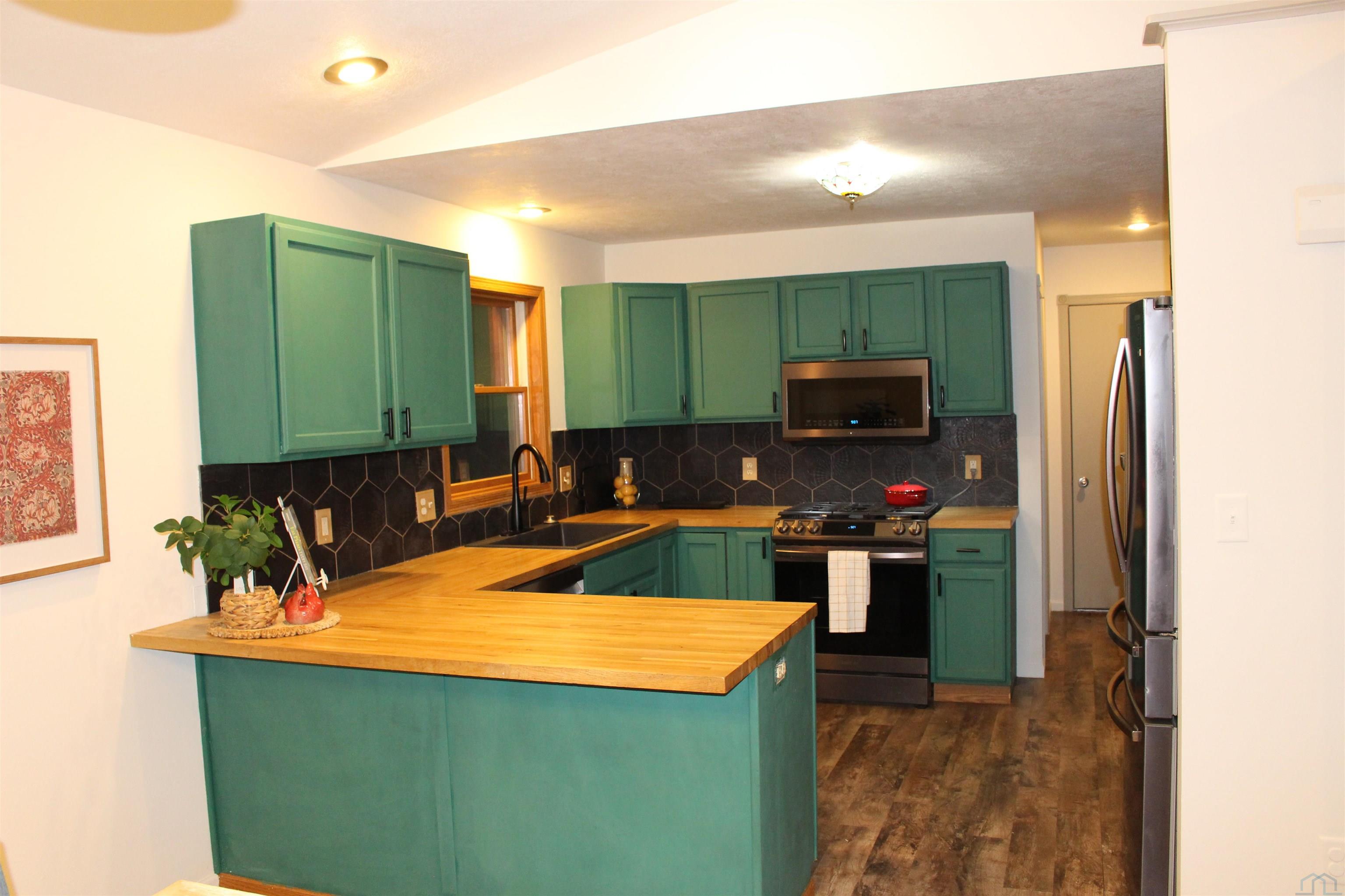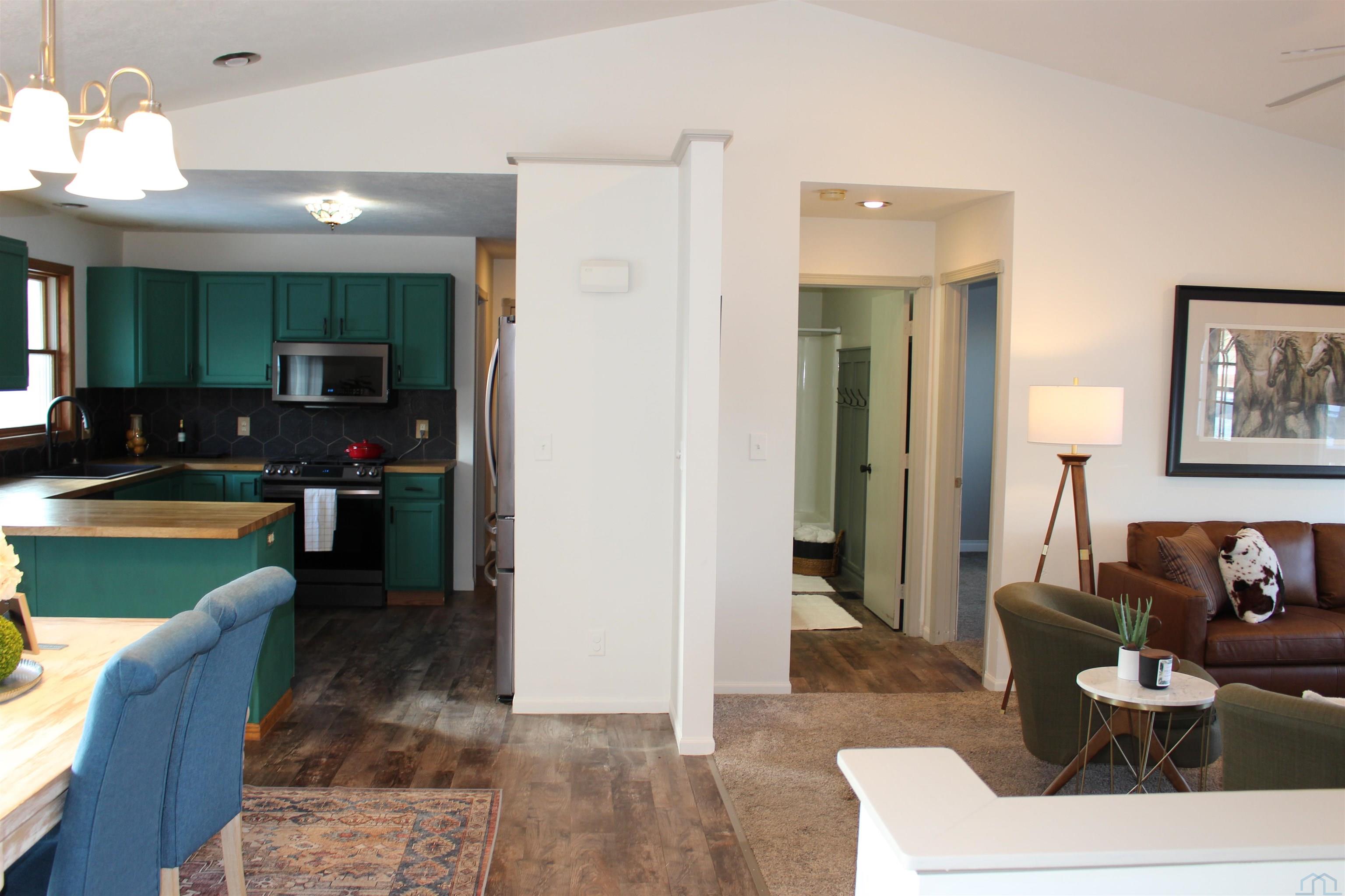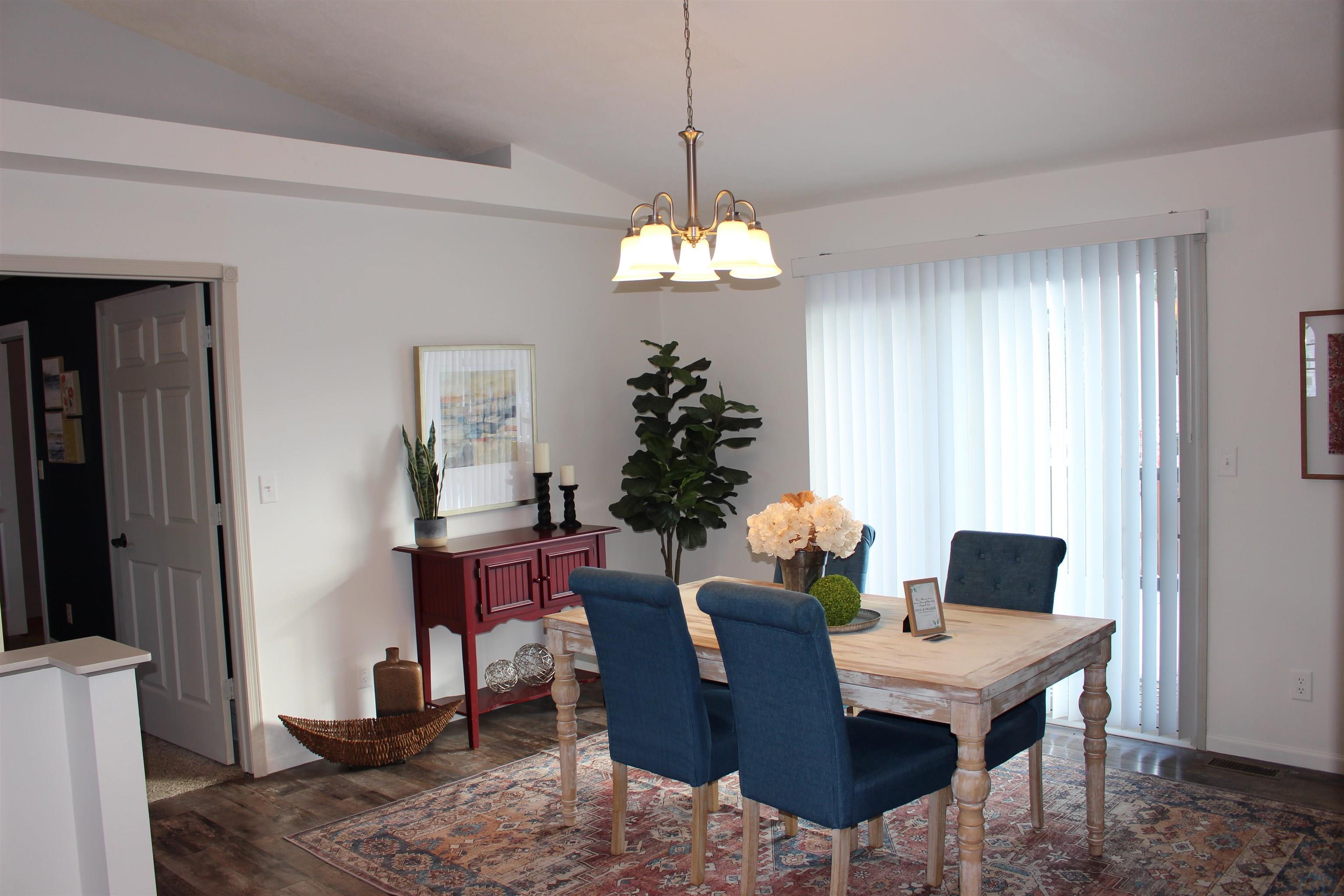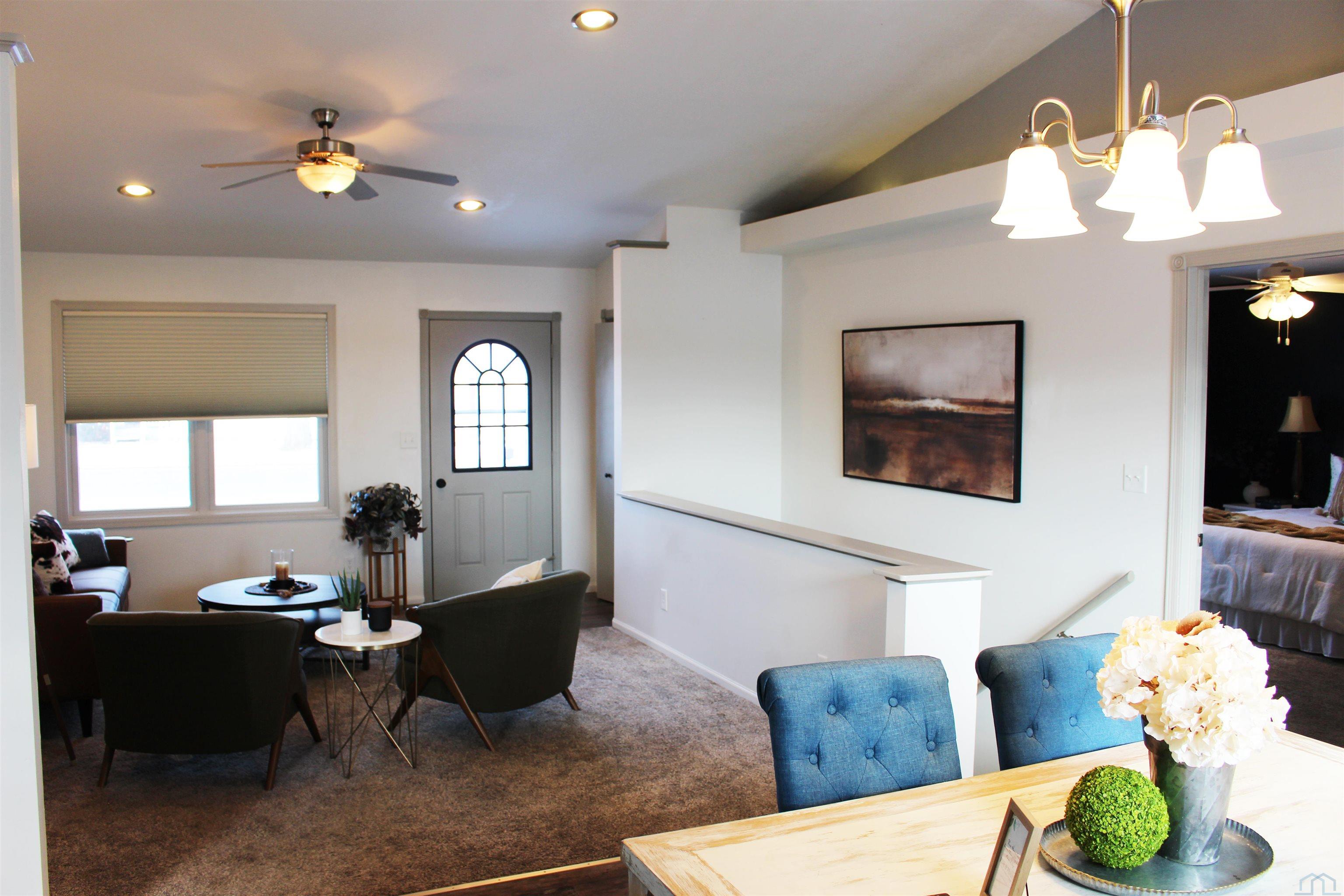 This is one of the few homes with zero step entrance to the main. Inside, you’ll find 4 bedrooms and 3 bathrooms and a updated LVP flooring throughout the kitchen and dining areas. The living room and dining room sport vaulted ceilings with recessed lighting to create an open, bright, and welcoming atmosphere. The primary bedroom offers privacy and a lot of room to relax. Measuring 14′ x 13′, with a 7′ x 7′ ensuite bathroom and a 7′ x 5′ walk-in closet. The finished lower level provides even more living space with 8′ ceilings. This lower level includes a large family room, two bedrooms, a full bathroom, and a versatile non-conforming room—perfect for an office or hobby space and complete with a stylish barn door. Car enthusiasts will love the oversized 26′ x 24′ heated garage, ideal for car repairs, storage, or projects. Located just two blocks from the city pool and park, and only three blocks from Forman Tire Company, this home offers both convenience and community charm.