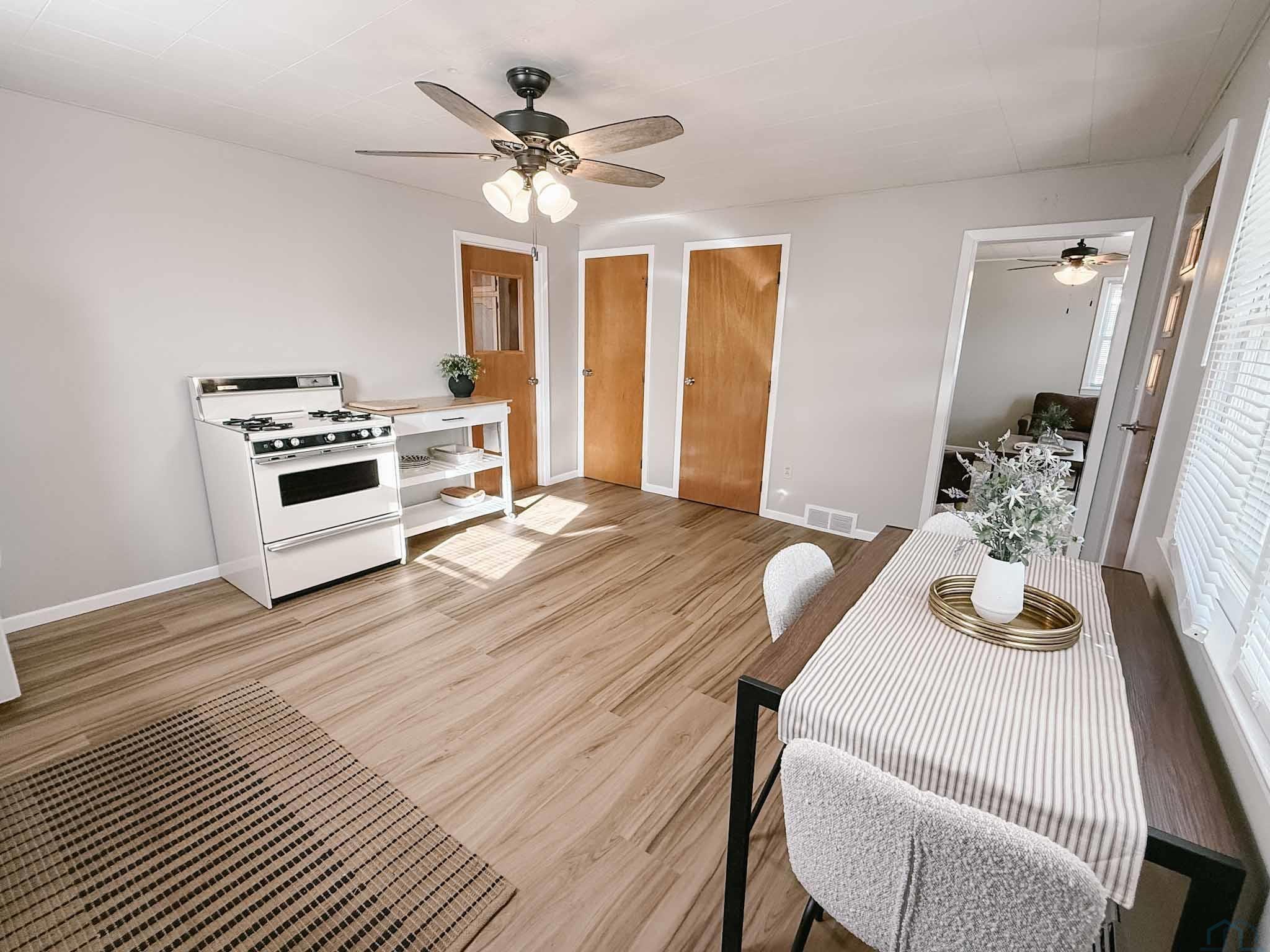 Tucked along the edge of Alton, 704 3rd Ave offers the perfect blend of charm, convenience, and opportunity. Built in 1900 and thoughtfully updated, this 2-bed, 1-bath home features 1,168 square feet of comfortable living with all essential amenities conveniently located on the main floor—ideal for any buyer. Start your mornings on the inviting east-facing covered front patio, then enjoy the practicality of a spacious laundry room with ample storage. A second-floor living space and bedroom add flexibility, while the unfinished basement provides a blank canvas to build equity and add value. Recent updates include new flooring, fresh interior paint, and a new furnace and A/C for peace of mind. Rounding out the property is a detached double garage with alley access, offering both convenience and extra storage. Easy in-and-out access and a quiet edge-of-town setting make this home a standout opportunity in Alton.