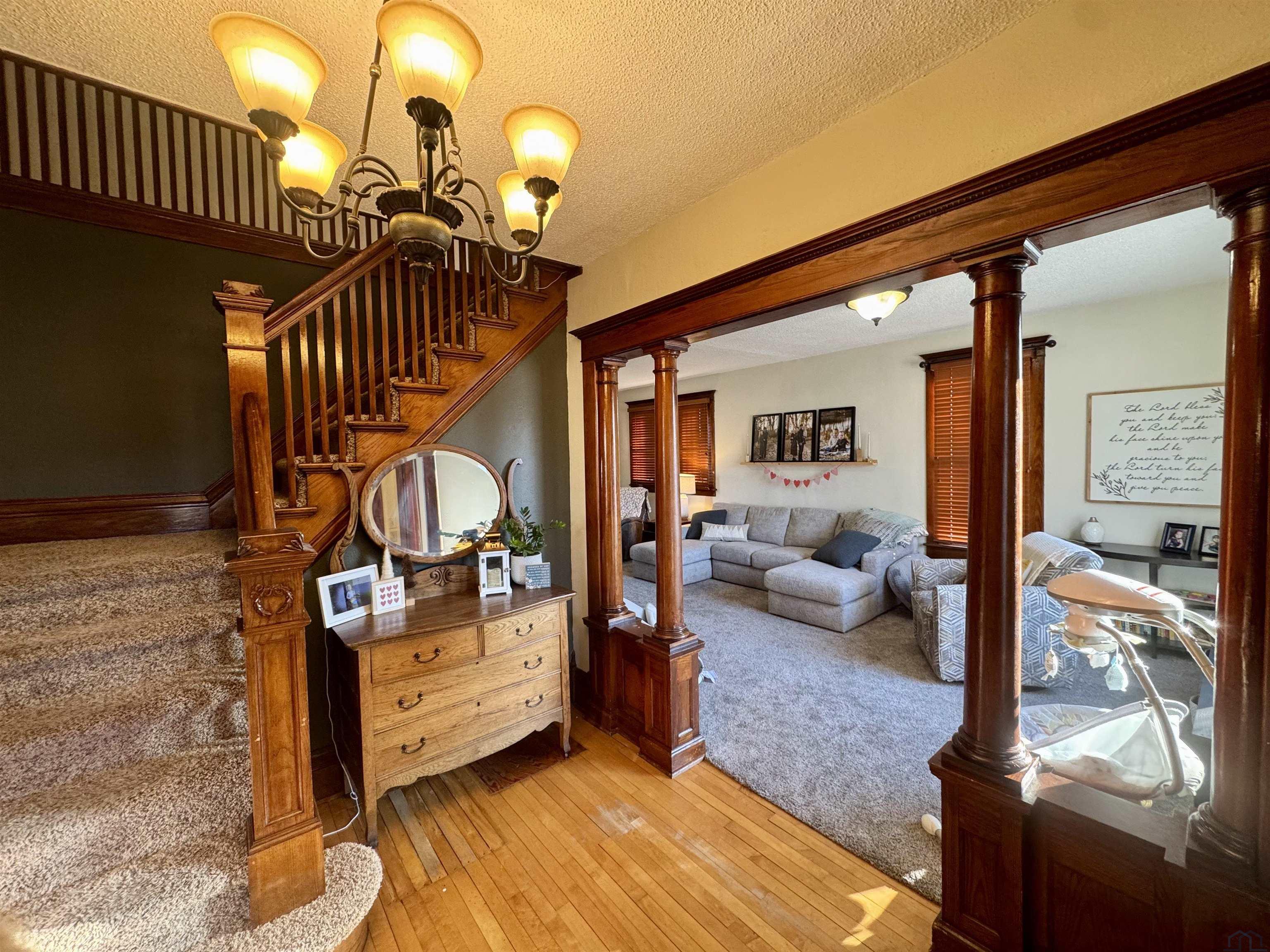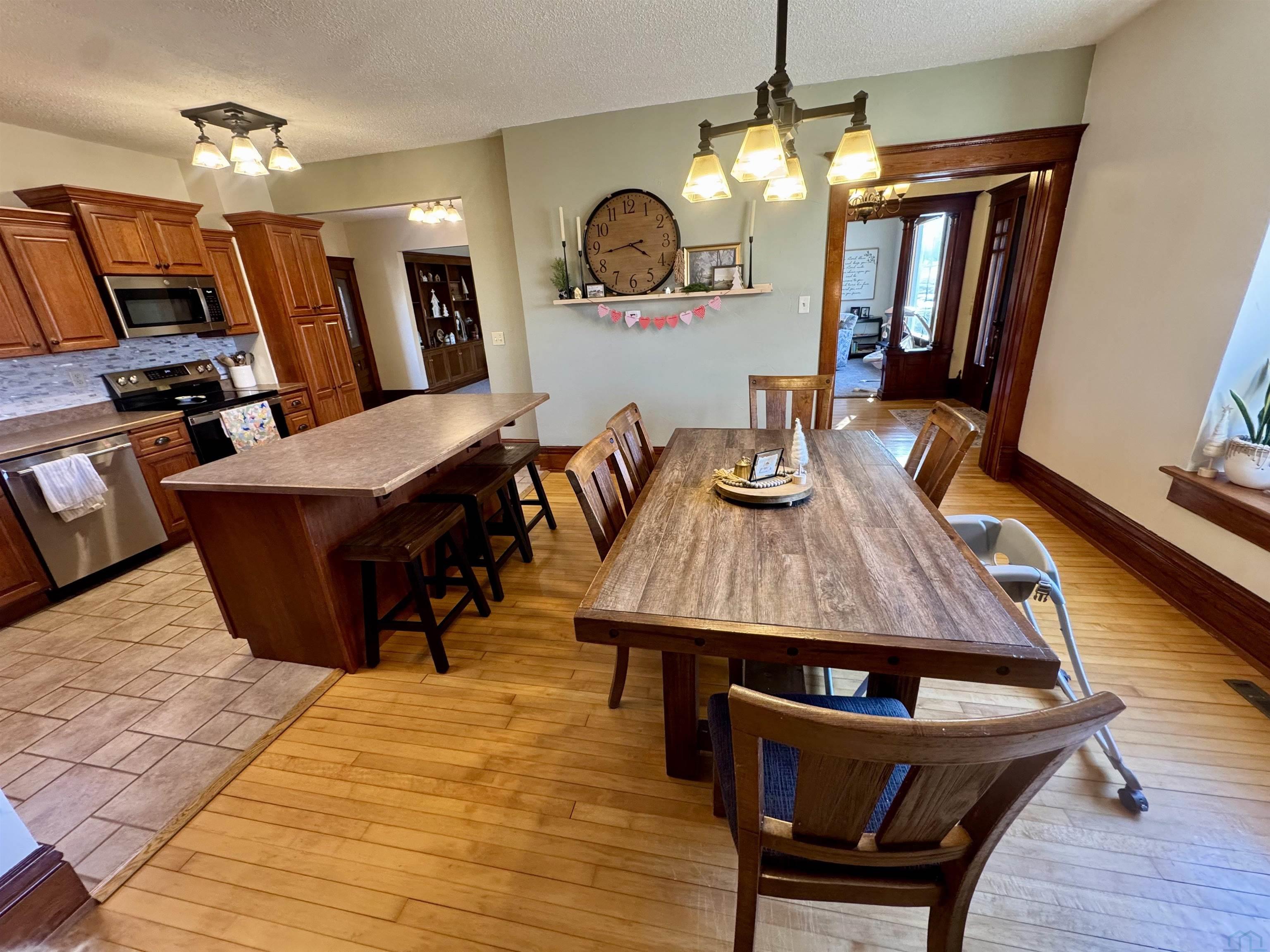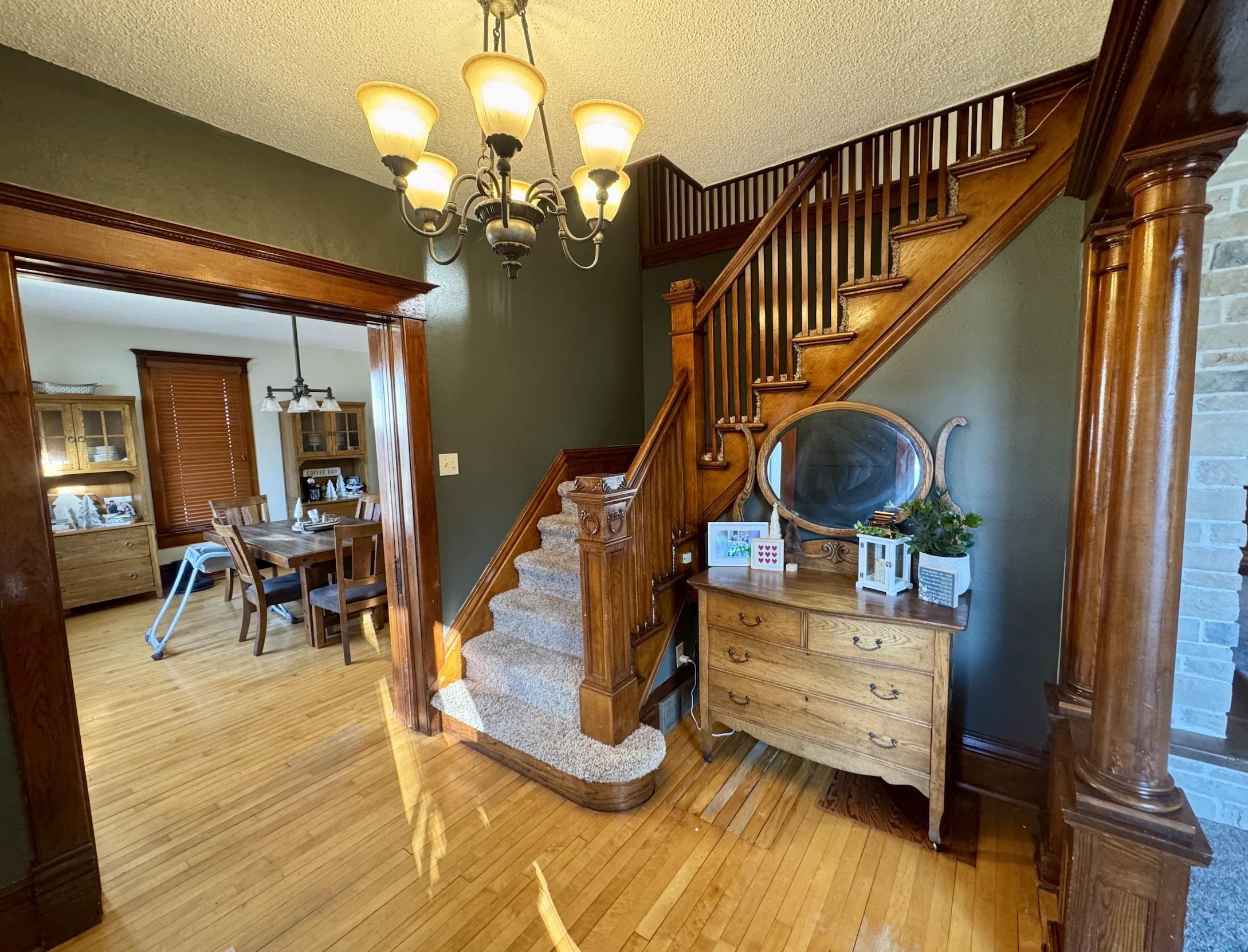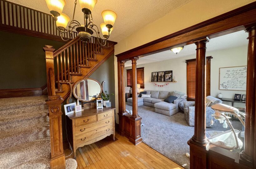 Step into timeless elegance with this dillegently cared-for 1900 Craftsman-style home in the heart of Alton. From the moment you arrive, you’ll notice the professionally updated landscaping that perfectly complements the home’s classic charm and inviting curb appeal. Inside, original hardwood floors, intricate woodwork, and beautiful built-ins showcase the character of its era, while thoughtful cosmetic updates and a newly opened floor plan blend historic style with modern living. This five-bedroom, two and a half-bath residence features a stunning updated kitchen, a new roof, and a finished basement that adds valuable living space. Set on a spacious quarter-acre lot, the property offers room to spread out with an expansive 17×25 back deck ideal for entertaining, a double detached heated garage, extra parking, alley access, and a garden shed. The whole-home humidifier enhances air quality and keeps the home feeling cozy in every season. Located just minutes from schools and city parks, this move-in-ready home delivers elegance, character, and comfort in every detail.