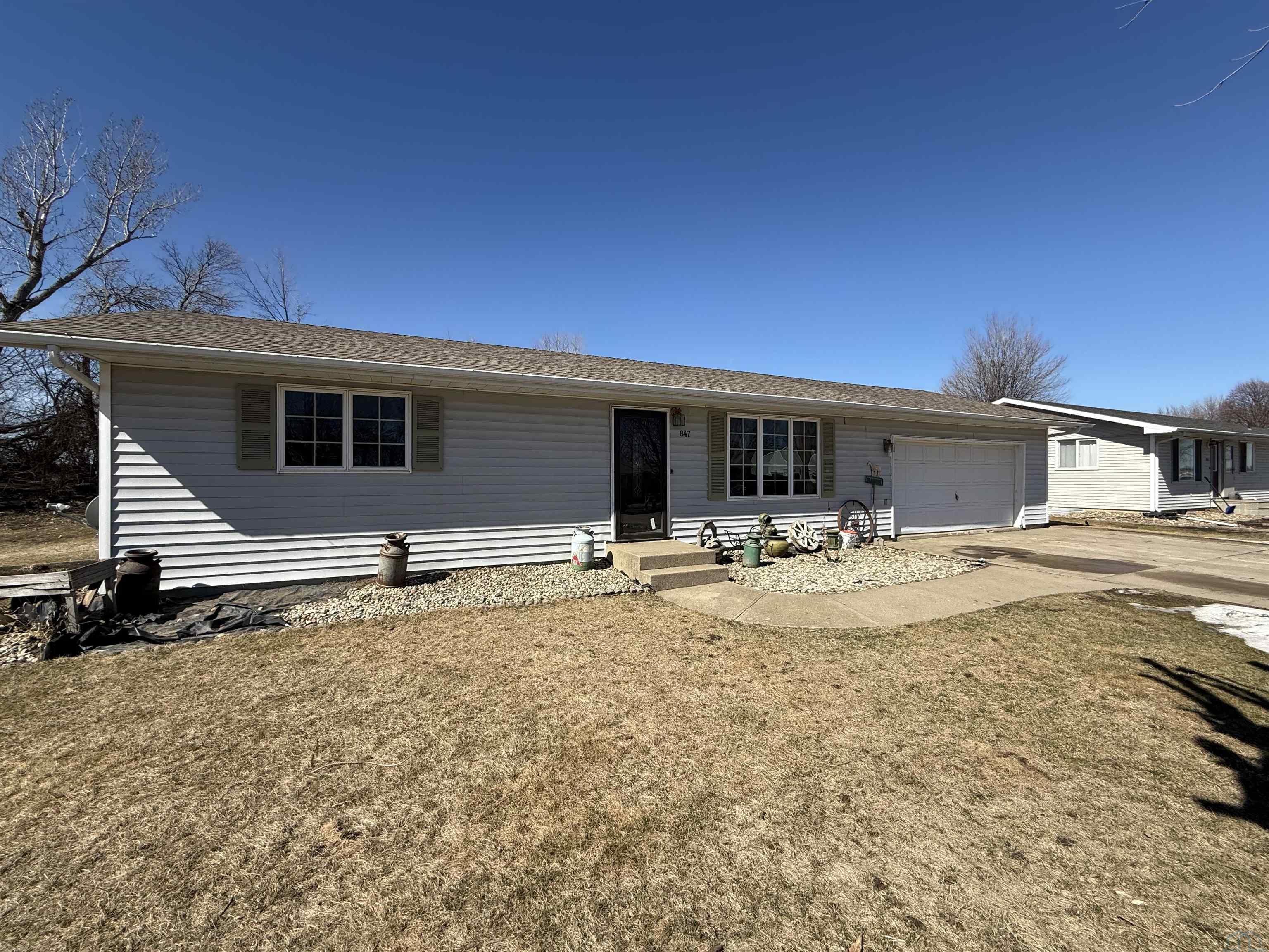 Welcome home to 847 8th Ave NW! This cozy ranch-style home is ready for its next owner. The main floor features an open-concept layout connecting the kitchen, dining, and living areas—perfect for everyday living and entertaining. You’ll also find two additional spacious bedrooms on the main level. The full bathroom offers a beautifully tiled surround and convenient main-floor laundry. Downstairs, the finished basement expands your living space with a large family room, an additional bedroom with an egress window, and a second full bathroom. Storage won’t be an issue here, with plenty of closets and extra space throughout the home. The attached garage is fully finished and includes a door leading to the backyard. Step outside to enjoy the patio—an ideal spot to relax at the end of the day while taking in the sunset.